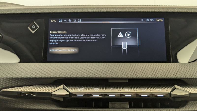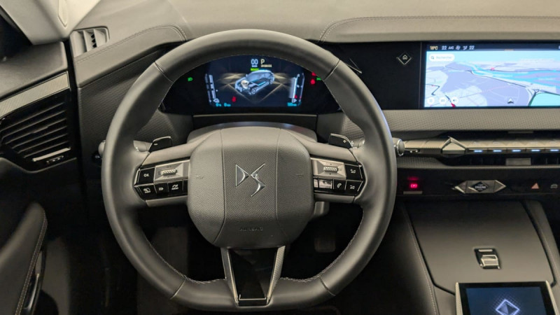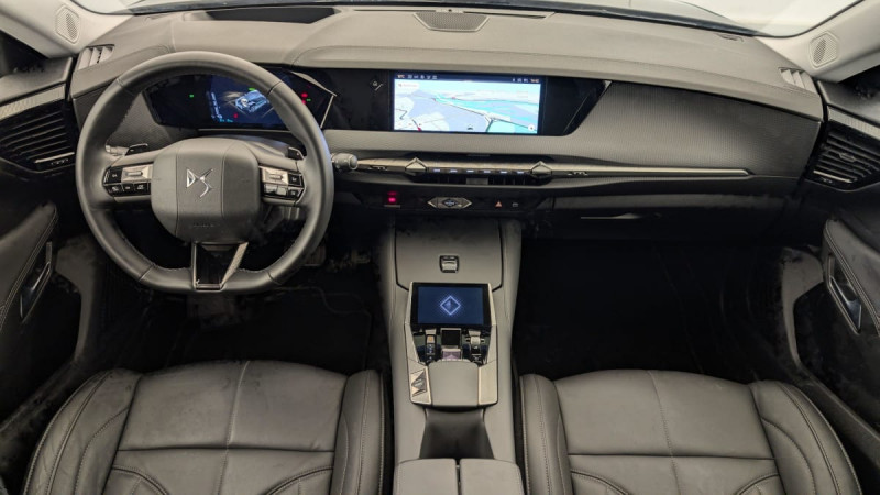 Kit de dépannage provisoire de pneumatiques / Frein de stationnement électrique automatique / Lève-vitres AV/AR électriques, séquentiels et antipincement / Rétroviseur intérieur électrochrome sans cadre / Fixations ISOFIX à la place passager AV et aux places latérales AR / DS MATRIX LED VISION / Détection de sous-gonflage / Eclairage de boîte à gants et de coffre à LED / Banquette AR 2/3 - 1/3 avec 3 appuie-tête / DS IRIS SYSTEM / Combiné numérique 7" / DS e-toggle (Sélecteur de vitesses) / Freinage d'urgence automatique piloté par caméra et radar / ABS avec répartiteur électronique de freinage (REF) et Aide au Freinage d'Urgence (AFU) + Aide au démarrage en pente / Pare-brise teinté acoustique / Eclairage de cave à pieds à LED / Eclairage d'ambiance à LED / Mirror Screen sans fil via Wifi Compatible Apple CarPlay et Android Auto / Essuie-vitre AV à déclenchement et cadencement automatiques + Buses de lavage / Accès et démarrage mains libres Proximity / Aide au stationnement AV et AR et Caméra de recul / Airbags frontaux (passager déconnectable), latéraux AV, rideaux aux places AV/AR et central entre les places AV / Antenne "aileron de requin" / Console centrale avec rangement fermé / Contrôle dynamique de stabilité (ESP) avec antipatinage des roues (ASR) + Contrôle de stabilité de l'attelage / Feux AR Full LED effet 3D avec traitement écailles / Radio numérique terrestre (DAB) Inclut le Bluetooth / Rétroviseurs extérieurs électriques, dégivrants, rabattables électriquement Avec éclairage d'accueil / Ecran tactile capacitif 10" HD / Clean Cabin avec Air Quality System / DS Drive Assist et Pack Détection Trafic AR : Adaptive Cruise Control Stop & Go Surveillance d'angles morts longue distance Alerte de Trafic AR Lane Positioning Assist afin de gérer la conduite de manière semi-autonome / DS EXTENDED HEAD UP DISPLAY Affichage tete haute étendu / Intérieur Cuir grainé Noir Basalte et Toile DS : Ciel de pavillon clair Décors de panneaux de porte Chrome guilloché Volant en cuir fleur Mistral Console centrale en Toile DS Mistral Planche de bord en toile DS Noir Basalte façon écaille Panneaux de portes en toile DS Noir Basalte façon écaille Sellerie en Cuir grainé Noir Basalte et Toile DS Parties centrales des sièges AV, partie centrale des sièges latéraux AR et partie AV des appuie-tête en cuir. Bourrelets latéraux des sièges AV, accoudoir central et siège central AR, et parties latérales et AR des appuis tête en Toile DS. / Pack Sièges mécaniques avec réglages lombaires conducteur et passager /