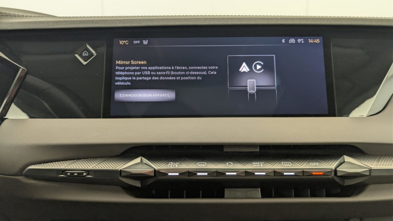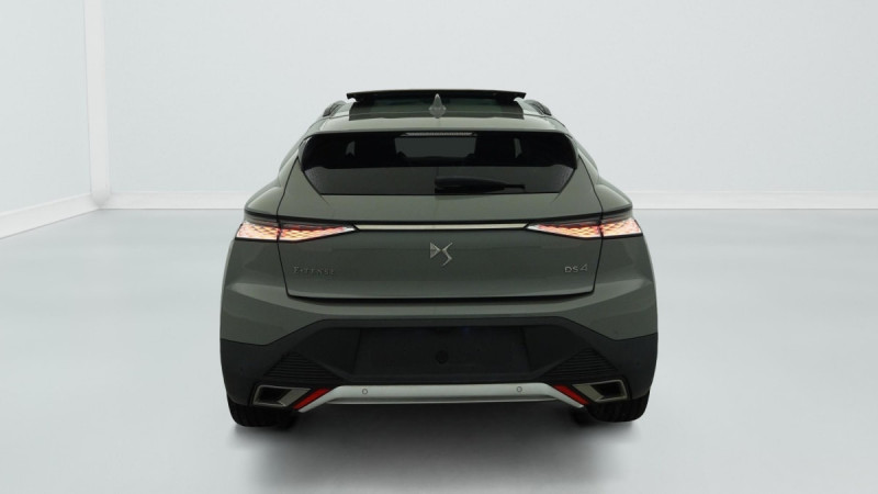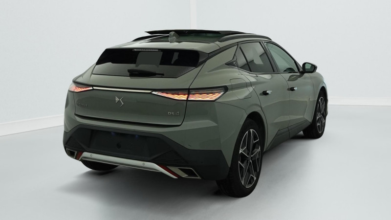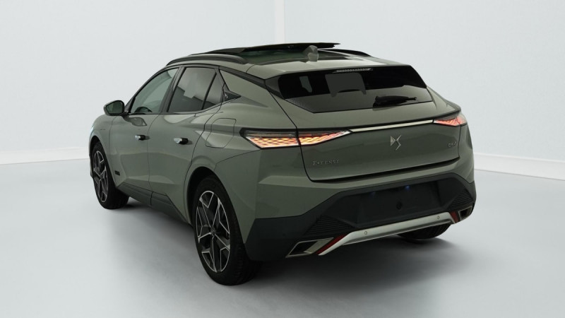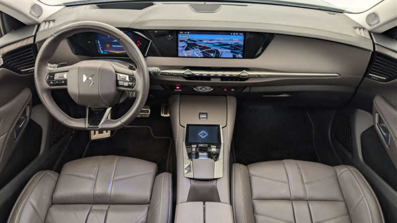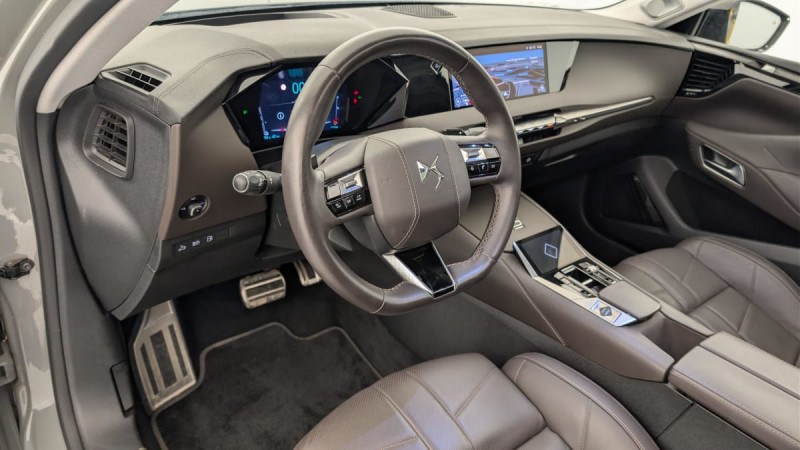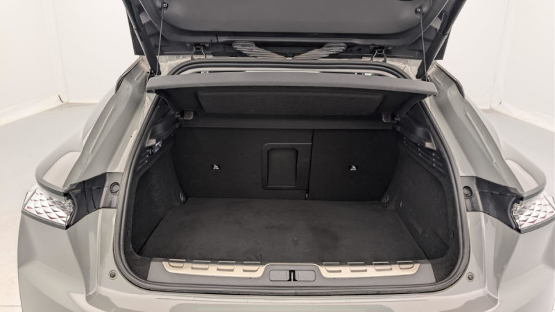 Frein de stationnement électrique automatique / Allumage automatique des feux de détresse en cas de forte décélération / Contrôle de traction intelligent / Pack Auto Confort : Climatisation automatique bi-zone Essuie-vitre AV à déclenchement et cadencement automatiques Allumage automatique des projecteurs / Eclairage d'accueil automatique / Lève-vitres AV/AR électriques, séquentiels et antipincement / Pack Sécurité Etendue : Alerte Active de Franchissement Involontaire de Ligne (AAFIL) Alerte Attention Conducteur par caméra Reconnaissance étendue des panneaux de circulation Freinage d'urgence automatique piloté par caméra et radar avec Pack Sécurité Etendue, DS DRIVE ASSIST et Pack Détection Trafic Arrière / Rétroviseur intérieur électrochrome sans cadre / Pédalier et le repose-pied aluminium / Climatisation avec aérateurs aux places AR / Fixations ISOFIX à la place passager AV et aux places latérales AR / Pare-brise teinté et acoustique / Verrouillage automatique des portes en roulant / DS ACTIVE SCAN SUSPENSION Système de suspension pilotée par caméra / Airbags frontaux aux places AV avec désactivation par clé de l'airbag passager / Contrôle dynamique de stabilité (ESP) avec antipatinage des roues (ASR) / ADML PROXIMITY Accès et démarrage Mains-Libres ave déverrouillage et déploiement automatique des poignées de portes affleurantes à l'approche du véhicule / DS MATRIX LED VISION / Détection de sous-gonflage / Commutation automatique des feux de route / Eclairage d'accompagnement / Fonction freinage régénératif / Airbags latéraux de type "thorax" aux places AV / Banquette AR 2/3 - 1/3 avec 3 appuie-tête / Chargeur embarqué de 7,4 kW / ABS avec répartiteur électronique de freinage (REF) et Aide au Freinage d'Urgence (AFU) / Kit de dépannage provisoire / Câble de recharge mode 2 standard 1,8 kW (8 A) / Câble de recharge mode 3 monophasé 7,4kW / Barres de toit Noires brillantes / Vitres AR surteintées avec Reflective Design / Eclairage PolyAmbient / Clean Cabin avec Air Quality System / DS EXTENDED HEAD UP DISPLAY / DS IRIS SYSTEM / DS SMART TOUCH / SOS / Airbag central entre les places AV / Feux AR 3D (traitement écailles) avec indicateur défilant à LED / Aérateurs latéraux AV déportés sur les portes / Combiné numérique 7" / Système audio Analogique à 6 HP avec Bluetooth / Antenne radio "Aileron de requin" / Freinage d'urgence automatique piloté par caméra et radar avec Pack Sécurité Etendue, DS DRIVE ASSIST et Pack Détection Trafic Arrière / DS e-toggle (Sélecteur de vitesses) / Système Infotainment écran 10" tactile avec Mirror Screen sans fil / Fonction de conduite préférée / Pack Détection Trafic AR : Surveillance d'angles morts longue distance Alerte de Trafic AR / Pack DS DRIVE ASSIST : Adaptive Cruise Control Stop & Go Lane Positioning Assist / Appuie-tête à réglages intégrés à 4 voies /