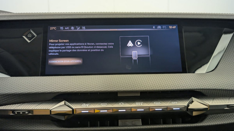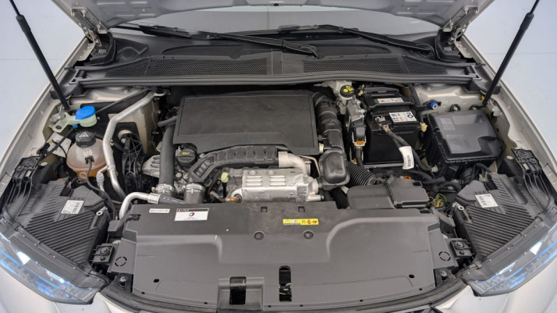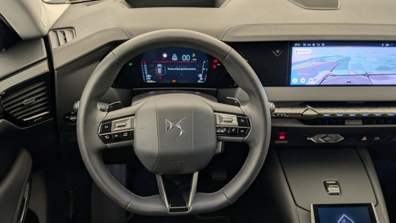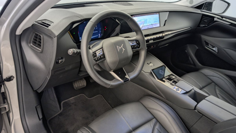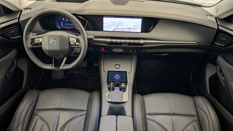 Kit de dépannage provisoire de pneumatiques / Frein de stationnement électrique automatique / Lève-vitres AV/AR électriques, séquentiels et antipincement / Rétroviseur intérieur électrochrome sans cadre / Alerte Attention Conducteur / Fixations ISOFIX à la place passager AV et aux places latérales AR / DS MATRIX LED VISION / Détection de sous-gonflage / Eclairage de boîte à gants, d'accoudoir central AV et de coffre à LED / Banquette AR 2/3 - 1/3 avec 3 appuie-tête / DS IRIS SYSTEM / Avertisseur de risque de collision / Combiné numérique 7" / DS e-toggle (Sélecteur de vitesses) / Freinage d'urgence automatique piloté par caméra et radar / ABS avec répartiteur électronique de freinage (REF) et Aide au Freinage d'Urgence (AFU) + Aide au démarrage en pente / Pare-brise teinté acoustique / Eclairage de cave à pieds à LED / Eclairage d'ambiance à LED / Mirror Screen sans fil via Wifi Compatible Apple CarPlay et Android Auto / Essuie-vitre AV à déclenchement et cadencement automatiques + Buses de lavage / Accès et démarrage mains libres Proximity / Aide au stationnement AV et AR et Caméra de recul / Accoudoir central AR avec trappe à ski et 2 porte-gobelets / Airbags frontaux (passager déconnectable), latéraux AV, rideaux aux places AV/AR et central entre les places AV / Feux AR Full LED effet 3D avec traitement écailles / Radio numérique terrestre (DAB) Inclut le Bluetooth / Rétroviseurs extérieurs électriques, dégivrants, rabattables électriquement Avec éclairage d'accueil / Ecran tactile capacitif 10" HD / DS Drive Assist et Pack Détection Trafic AR : Surveillance d'angles morts longue distance Alerte de Trafic AR / DS EXTENDED HEAD UP DISPLAY Affichage tete haute étendu / Intérieur Cuir grainé Noir Basalte et Toile DS : Ciel de pavillon clair Décors de panneaux de porte Chrome guilloché Volant en cuir fleur Mistral Console centrale en Toile DS Mistral Planche de bord en toile DS Noir Basalte façon écaille Panneaux de portes en toile DS Noir Basalte façon écaille Sellerie en Cuir grainé Noir Basalte et Toile DS / Pack Sièges mécaniques avec réglages lombaires conducteur et passager /
