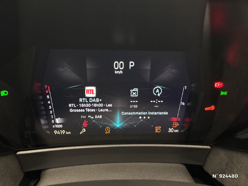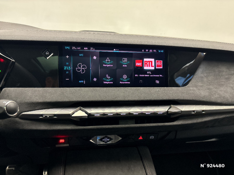 Banquette AR avec trappe à skis / Black Pack / Freinage d'urgence automatique piloté par caméra et radar / Eclairage de plaque de police à LED / DS E-TOGGLE / Surtapis AV/AR / Enjoliveurs supérieurs des vitres latérales Noires Brillantes / Pédalier en aluminium / Fixations ISOFIX à la place passager et aux places latérales AR / Frein de stationnement électrique automatique / Alerte Attention Conducteur / Teinte Caisse nacrée / Kit de dépannage provisoire de pneumatiques / Cabochons d'écrous de roue Noirs Brillants / Jonc de volet noir brillant / Lécheurs de vitres latérales et enjoliveur de custode noir brillant / Pare-soleil avec miroirs de courtoisie occultables éclairés à LED / Prises 12V 1 prise AV et 1 prise dans le coffre / Console centrale avec rangement fermé / Contrôle dynamique de stabilité (ESP) avec antipatinage des roues (ASR) + Contrôle de stabilité de l'attelage / DS AIR (Aérateurs centraux invisibles avec sabre chrome) / DS SMART TOUCH / Diffuseur AR noir brillant avec décors d'échappement chromé / Feux AR Full LED effet 3D avec traitement écailles / Accoudoir central AR avec trappe à ski et 2 porte-gobelets / Adaptive Cruise Control Stop&Go / Airbags frontaux (passager déconnectable), latéraux AV, rideaux aux places AV/AR et central entre les places AV / Antenne "aileron de requin" / Accès et démarrage mains libres Proximity / Aide au stationnement AV et AR avec Caméra de recul / DS EXTENDED HEAD UP DISPLAY / DS IRIS SYSTEM / Avertisseur de risque de collision / Combiné numérique 7" / Jantes alliage 19" MINNEAPOLIS / Intérieur Tissu Tressé Basalte avec Alcantara / Vérins d'ouverture et de maintien du capot moteur / Essuie-vitre AV à déclenchement et cadencement automatiques + Buses de lavage / Banquette AR 2/3 - 1/3 et 3 appuie-tête / Monogramme AR noir brillant / Monogramme AV noir mat / Monogramme DS chromé sur l'enjoliveur de custode latéral noir brillant / Monogramme extérieur sur le capot noir brillant / Poignées extérieures affleurantes chromées / Ecran tactile capacitif 10" HD / Eclairage de cave à pieds à LED / Eclairage d'ambiance à LED / Mirror Screen sans fil via Wifi / ABS avec répartiteur électronique de freinage (REF) et Aide au Freinage d'Urgence (AFU) + Aide au démarrage en pente / Pare-brise teinté acoustique / Capot actif / Seuil de coffre aluminium / Seuil de portes AV / Prises USB 1 prise USB-C sous l'accoudoir central AV, 1 prise USB-C dans la console et 2 prises USB-C pour les passagers AR / DS Wings Noir Brillant / Prédisposition pour roue de secours galette / Radio numérique terrestre (DAB) Inclut le Bluetooth / Rétroviseurs extérieurs électriques, dégivrants, rabattables électriquement Avec éclairage d'accueil / Rétroviseur intérieur électrochrome sans cadre / SOS & Assistance / Lève-vitres AV et AR électriques, séquentiels et antipincement / Freinage multi-collision / DS MATRIX LED VISION / Détection de sous-gonflage