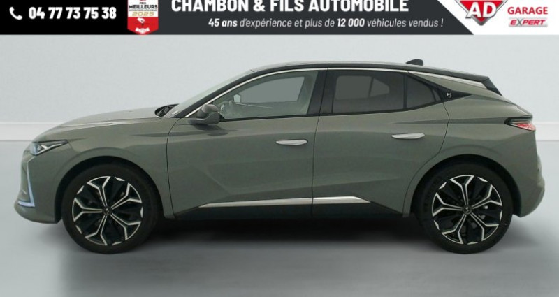 Référence : 358510 Cylindrée : 1199 cm3 DS4 PureTech 130 EAT8 Rivoli, essence, gris laqué, 21/03/2024, Kit de dépannage provisoire de pneumatiques, Frein de stationnement électrique automatique, Volant réglable en hauteur et profondeur, Climatisation automatique bi-zone, Vitres AR et lunette AR surteintées, Condamnation automatique des portes et du coffre en roulant, Lève-vitres AV/AR électriques, séquentiels et antipincement, Lunette AR chauffante, Rétroviseur intérieur électrochrome sans cadre, Fixations ISOFIX à la place passager AV et aux places latérales AR, Alerte de franchissement involontaire de ligne, Reconnaissance des panneaux de vitesse et préconisation, Palettes au volant, DS MATRIX LED VISION, Détection de sous-gonflage, Eclairage de boîte à gants, d'accoudoir central AV et de coffre à LED, Banquette AR 2/3 - 1/3 avec 3 appuie-tête, SOS, Toit Noir Perla Nera : option incluse (valeur : 300 Eur TTC), DS IRIS SYSTEM, Combiné numérique 7, Jantes alliage 19 SEVILLA, DS e-toggle (Sélecteur de vitesses), Freinage d'urgence automatique piloté par caméra et radar, ABS avec répartiteur électronique de freinage (REF) et Aide au Freinage d'Urgence (AFU) + Aide au démarrage en pente, Pare-brise teinté acoustique, Eclairage de cave à pieds à LED, Eclairage d'ambiance à LED, Mirror Screen sans fil via Wifi Compatible Apple CarPlay et Android Auto, Essuie-vitre AV à déclenchement et cadencement automatiques + Buses de lavage, Accès et démarrage mains libres Proximity, Aide au stationnement AV et AR et Caméra de recul, Accoudoir central AR, Accoudoir central AV, Airbags frontaux (passager déconnectable), latéraux AV, rideaux aux places AV/AR et central entre les places AV, Allumage automatique des feux, Commutation automatique des feux, Contrôle dynamique de stabilité (ESP) avec antipatinage des roues (ASR) + Contrôle de stabilité de l'attelage, Feux AR Full LED effet 3D avec traitement écailles, Pare-soleil avec miroirs de courtoisie occultables éclairés à LED, Radio numérique terrestre (DAB) Inclut le Bluetooth, Rétroviseurs extérieurs électriques, dégivrants, rabattables électriquement Avec éclairage d'accueil, Ecran tactile capacitif 10 HD, Teinte Caisse métallisée : option incluse (valeur : 900 Eur TTC), Clean Cabin avec Air Quality System, DS Drive Assist et Pack Détection Trafic AR : Adaptive Cruise Control Stop & Go Surveillance d'angles morts longue distance Alerte de Trafic AR Lane Positioning Assist afin de gérer la conduite de manière semi-autonome, DS EXTENDED HEAD UP DISPLAY Affichage tete haute étendu, Intérieur Cuir grainé Noir Basalte et Toile DS : Ciel de pavillon clair Décors de panneaux de porte Chrome guilloché Volant en cuir fleur Mistral Console centrale en Toile DS Mistral Planche de bord en toile DS Noir Basalte façon écaille Panneaux de portes en toile DS Noir Basalte façon écaille Sellerie en Cuir grainé Noir Basalte et Toile DS Parties centrales des sièges AV, partie centrale des sièges latéraux AR et partie AV des appuie-tête en cuir. Bourrelets latéraux des sièges AV, accoudoir central et siège central AR, et parties latérales et AR des appuis tête en Toile DS., Pack Sièges mécaniques avec réglages lombaires conducteur et passager OPTIONS/EQUIPEMENTS : - Jantes alliage, Taille Jantes 19 Vendeur à contacter : CHAMBON & FILS AUTOMOBILE Téléphone à contacter : 04 77 73 23 51