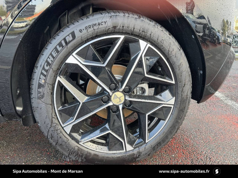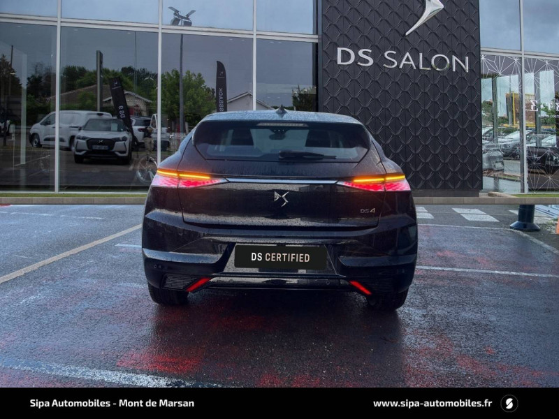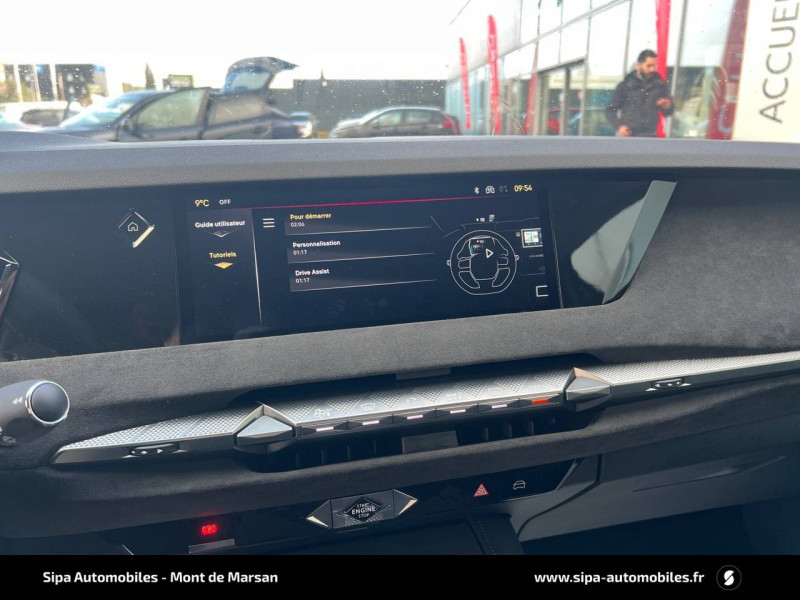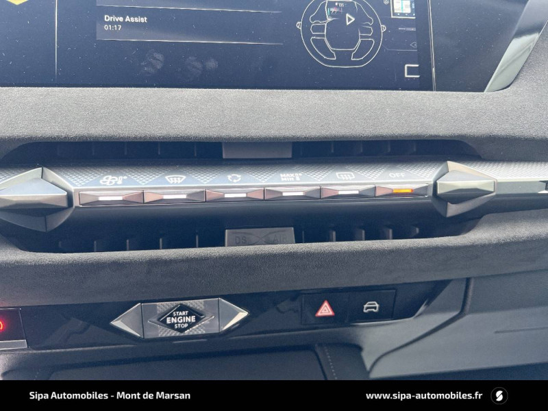 ABS avec répartiteur électronique de freinage (REF) et Aide au Freinage d'Urgence (AFU) Avec aide au démarrage en pente / Accès et Démarrage mains libres Proximity Déverrouillage et déploiement automatique des poignées de portes affleurantes à l'approche du véhicule / Accoudoir central AR avec trappe à ski et 2 porte-gobelets / Accoudoir central AV Avec grand rangement réfrigéré et éclairé / Adaptive Cruise Control Stop & Go / Aide au stationnement AV et AR et Caméra de recul / Airbags frontaux (passager déconnectable), latéraux AV, rideaux aux places AV/AR et central entre les places AV / Alerte attention conducteur / Alerte de franchissement involontaire de ligne Désactivable via l'écran tactile / Anneaux d'arrimage dans le coffre (x4) / Antenne "aileron de requin" Antenne noir brillant / Avertisseur de risque de collision / Badge de capot DS / Banquette AR 2/3 - 1/3 avec 3 appuie-tête / Banquette AR avec trappe à skis / Cabochons d'écrous de roue noir brillant / Capot actif / Centre de roue Doré / Chargeur sans fil pour smartphone Norme QI, compatibilité smartphone à vérifier / Chiffre "4" doré / Clean Cabin avec Air Quality System / Climatisation automatique bizone 3 modes de diffusion Soft / Normal / Fast. Mode Monozone. Fonction Quick Launch via bouton dédié : froid ou chaud rapide selon la température extérieure. Aérateurs aux places AR / Combiné numérique 7" / Console centrale avec rangement fermé Avec dépose-téléphone et 2 porte-gobelets / Contrôle dynamique de stabilité (ESP) avec antipatinage des roues (ASR) + Contrôle de stabilité de l'attelage / Détection de sous-gonflage / Diffuseur AR noir brillant / Double filet décoratif doré / DS AIR (Aérateurs centraux invisibles avec sabre chrome) / DS e-toggle (Sélecteur de vitesses) / DS Wings noir brillant / Eclairage d'ambiance à LED Personnalisable avec 8 couleurs sur les panneaux de portes AV, la planche de bord et le repose paume / Eclairage de boîte à gants, d'accoudoir central AV et de coffre à LED / Eclairage de cave à pieds à LED / Ecran tactile capacitif 10" HD / Enjoliveurs de bas de porte noirs avec insert chromé / Enjoliveurs supérieurs des vitres latérales chromés / Essuie-vitre AR / Essuie-vitre AV à déclenchement et cadencement automatiques + Buses de lavage / Feux AR Full LED effet 3D avec traitement écailles / Fixations ISOFIX aux places latérales AR Inclut un point d'ancrage TOP TETHER / Freinage d'urgence automatique piloté par caméra et radar / Freinage multi-collision / Frein de stationnement électrique automatique / Grille de calandre noir brillant avec pampilles chromées / Intérieur Alcantara Noir / Jonc de volet chromé / Kit de dépannage provisoire de pneumatiques / Lécheurs de vitres latérales et enjoliveur de custode noir brillant / Lève-vitres AV et AR électriques, séquentiels et antipincement / Mirror Screen sans fil via Wifi Compatible Apple CarPlay et Android Auto / Monogramme DS chromé sur l'enjoliveur de custode latéral / Monogrammes AV/AR chromés / Pack Connect PLUS pour 3 ans / Pack sièges électriques Le réglage lombaires pneumatique. Le siège conducteur électrique à 10 voies avec mémoire de position, nez de coussin réglable mécaniquement et fonction accueil. Le siège passager électrique à 6 voies / Pare-brise teinté acoustique / Pare-soleil avec miroirs de courtoisie occultables éclairés à LED / Plafonnier I-Dome tactile Liseuses iDome à commandes tactiles à l'AR / Poignées extérieures affleurantes chromées / Prédisposition pour roue de secours galette / Prises 12 V 1 prise AV et 1 prise dans le coffre / Prises USB 1 prise USB-C sous l'accoudoir central AV, 1 prise USB-C dans la console et 2 prises USB-C pour les passagers AR / Rétroviseur intérieur électrochrome sans cadre / Rétroviseurs extérieurs électriques, dégivrants, rabattables électriquement Avec éclairage d'accueil / Sécurité Enfants Sécurité mécanique / Sièges AV avec mousse haute densité / SOS & Assistance / Teinte Caisse nacrée Noir Perla Nera / Vérins d'ouverture et de maintien du capot moteur / Vitres latérales AV feuilletées acoustiques
