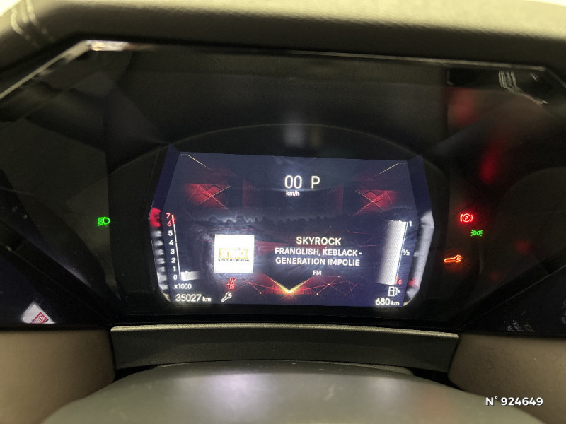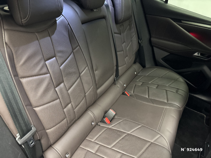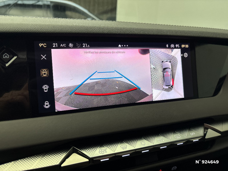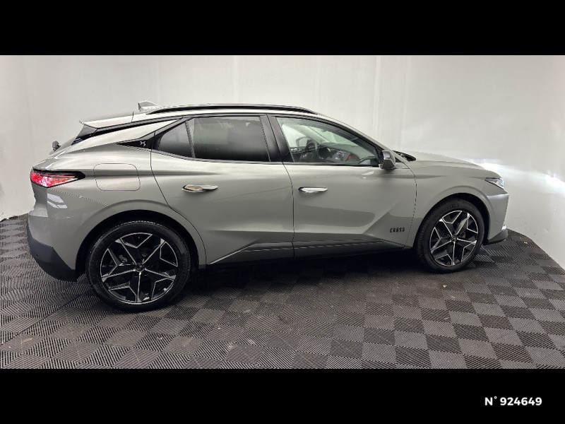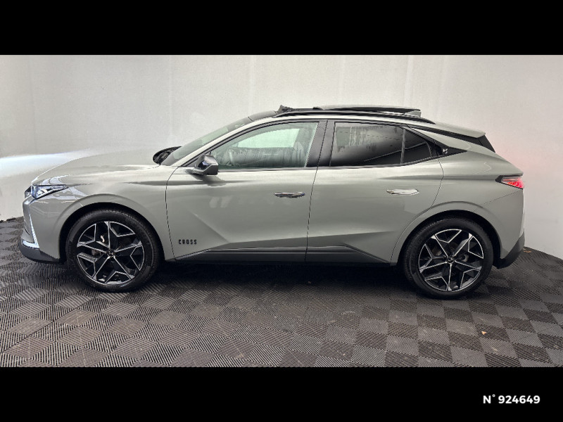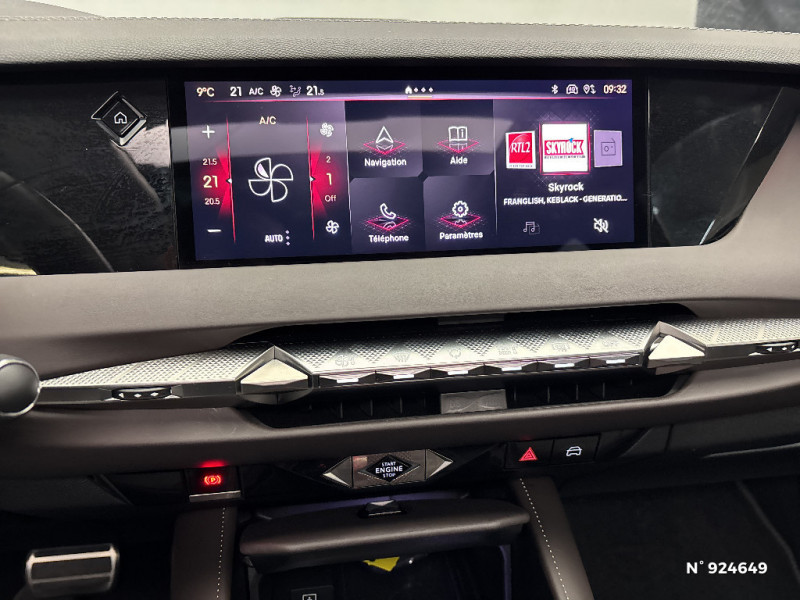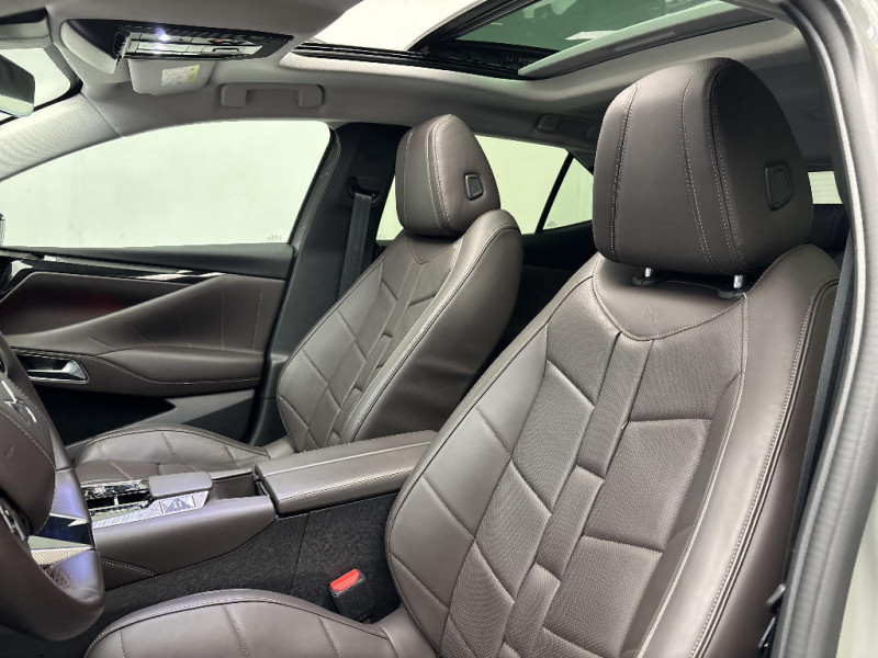 Monogramme extérieur sur le capot chromé / Poignées extérieures affleurantes chromées / Ecran tactile capacitif 10" HD / Capot actif / Monogrammes AV/AR chromé / Prédisposition pour roue de secours galette / Radio numérique terrestre (DAB) Inclut le Bluetooth / Rétroviseurs extérieurs électriques, dégivrants, rabattables électriquement Avec éclairage d'accueil / Rétroviseurs extérieurs électrochromes Avec indexation à la marche AR et projection de logo au sol / Sabot AV/AR finition Gris Aluminium / Essuie-vitre AV à déclenchement et cadencement automatiques + Buses de lavage / Prises USB 1 prise USB-C sous l'accoudoir central AV, 1 prise USB-C dans la console et 2 prises USB-C pour les passagers AR / Pare-soleil avec miroirs de courtoisie occultables éclairés à LED / Prises 12V 1 prise AV et 1 prise dans le coffre / Console centrale avec rangement fermé / Contrôle dynamique de stabilité (ESP) avec antipatinage des roues (ASR) + Contrôle de stabilité de l'attelage / DS AIR (Aérateurs centraux invisibles avec sabre chrome) / DS SMART TOUCH / Feux AR Full LED effet 3D avec traitement écailles / DS Drive Assist et Pack Détection Trafic AR / Jonc de volet chromé / Lettrage CROSS noir mat sur les portes AV / Lécheurs de vitres latérales et enjoliveur de custode noir brillant / Intérieur Cuir Nappa Brun Criollo confection Bracelet / Banquette AR 2/3 - 1/3 et 3 appuie-tête / Barres de toit noir brillant / Alarme périmétrique, volumétrique et fonction anti-soulèvement, avec Supercondamnation / Lève-vitres AV et AR électriques, séquentiels et antipincement / DS ACTIVE SCAN SUSPENSION / Freinage multi-collision / Rétroviseur intérieur électrochrome sans cadre / DS MATRIX LED VISION / Détection de sous-gonflage / Avertisseur de risque de collision / Surveillance d'angles morts longue distance / Combiné numérique 7" / DS EXTENDED HEAD UP DISPLAY / Eclairage de plaque de police à LED / Kit de dépannage provisoire de pneumatiques / Frein de stationnement électrique automatique / Surtapis AV/AR / Enjoliveurs supérieurs des vitres latérales Noires Brillantes / Freinage d'urgence automatique piloté par caméra et radar / Pédalier en aluminium / SOS & Assistance / Accoudoir central AR avec trappe à ski et 2 porte-gobelets / Airbags frontaux (passager déconnectable), latéraux AV, rideaux aux places AV/AR et central entre les places AV / Antenne "aileron de requin" / Banquette AR avec trappe à skis / DS E-TOGGLE / Teinte Caisse nacrée / Clean Cabin avec Air Quality System / Cabochons d'écrous de roue Noirs Brillants / Accès et démarrage mains libres Proximity / Aide au stationnement AV et AR avec Caméra de recul / Chargeur sans fil pour smartphone / Alerte Attention Conducteur / Fixations ISOFIX à la place passager et aux places latérales AR / Grille de calandre Noir Brillant / Pack Sièges Electrique avec sièges AV chauffants, massants et ventilés / DS Wings Chromé / DS IRIS SYSTEM / Vérins d'ouverture et de maintien du capot moteur / ABS avec répartiteur électronique de freinage (REF) et Aide au Freinage d'Urgence (AFU) + Aide au démarrage en pente / Pare-brise teinté acoustique / Aide au stationnement AV/AR et 360 Vision / Hayon motorisé avec accès bras chargés / Vitres latérales feuilletées acoustiques / Eclairage de cave à pieds à LED / Eclairage d'ambiance à LED / Mirror Screen sans fil via Wifi / Monogramme DS chromé sur l'enjoliveur de custode latéral noir brillant / Seuil de coffre aluminium / Seuil de portes AV / Toit ouvrant électrique Entrebaillant, ouvrant, occulteur manuel