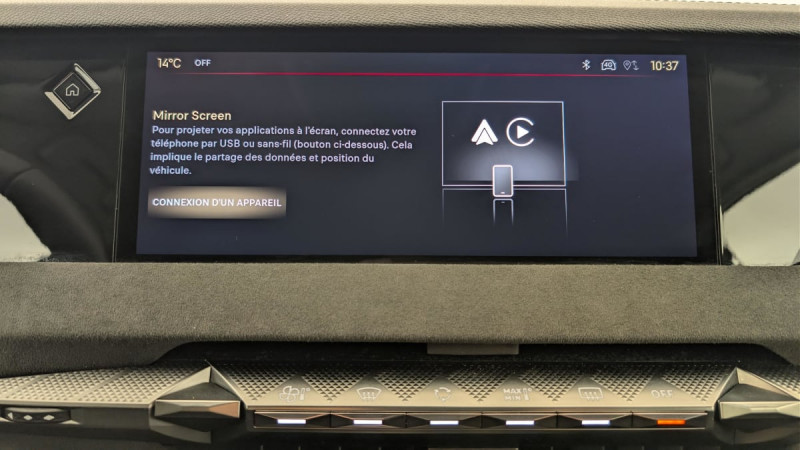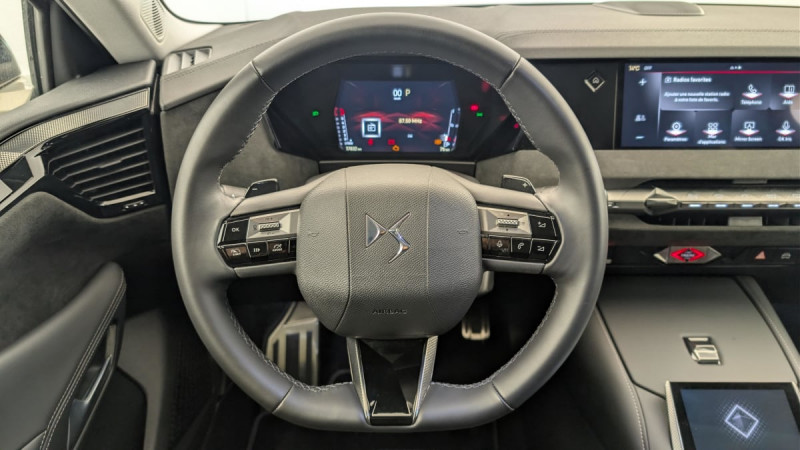 Kit de dépannage provisoire de pneumatiques / Pédalier en aluminium / Frein de stationnement électrique automatique / Freinage multi-collision / Rétroviseur intérieur électrochrome sans cadre / Détection de sous-gonflage / Banquette AR 2/3 - 1/3 avec 3 appuie-tête / Banquette AR avec trappe à skis / Avertisseur de risque de collision / Combiné numérique 7" / DS e-toggle (Sélecteur de vitesses) / Enjoliveurs supérieurs des vitres latérales chromés / Freinage d'urgence automatique piloté par caméra et radar / Pare-brise teinté acoustique / Eclairage de cave à pieds à LED / Mirror Screen sans fil via Wifi Compatible Apple CarPlay et Android Auto / Essuie-vitre AV à déclenchement et cadencement automatiques + Buses de lavage / Aide au stationnement AV et AR et Caméra de recul / Accoudoir central AR avec trappe à ski et 2 porte-gobelets / Airbags frontaux (passager déconnectable), latéraux AV, rideaux aux places AV/AR et central entre les places AV / Contrôle dynamique de stabilité (ESP) avec antipatinage des roues (ASR) + Contrôle de stabilité de l'attelage / DS SMART TOUCH / Feux AR Full LED effet 3D avec traitement écailles / Jonc de volet chromé / Lécheurs de vitres latérales et enjoliveur de custode noir brillant / Pare-soleil avec miroirs de courtoisie occultables éclairés à LED / Prédisposition pour roue de secours galette / Rétroviseurs extérieurs électriques, dégivrants, rabattables électriquement avec éclairage d'accueil / Poignées extérieures affleurantes chromées / Ecran tactile capacitif 10" HD / Clean Cabin avec Air Quality System / DS EXTENDED HEAD UP DISPLAY Affichage tete haute étendu / ABS avec répartiteur électronique de freinage (REF) et Aide au Freinage d'Urgence (AFU) Avec aide au démarrage en pente / Alerte attention conducteur / Alerte de franchissement involontaire de ligne Désactivable via l'écran tactile / DS MATRIX LED VISION Intègre les technologies Matrix Beam et l'éclairage dynamique en courbe. Grâce aux cinq modes préétablis (ville, campagne, autoroute, météo difficile et brouillard), roulez en pleins phares sans éblouir les autres automobilistes / Essuie-vitre AR / Fixations ISOFIX aux places latérales AR Inclut un point d'ancrage TOP TETHER / Régulateur de vitesse adaptatif et Pack Détection trafic AR Avec l'Adaptive Cruise Control Stop & Go. Le Pack Détection Trafic AR comprend l'Alerte de Trafic AR ainsi que la Surveillance d'Angle Mort Longue Distance : Adaptive Cruise Control Stop & Go Surveillance d'angles morts longue distance Alerte de Trafic AR / Sécurité Enfants Sécurité mécanique / SOS / Accès et Démarrage mains libres Proximity Déverrouillage et déploiement automatique des poignées de portes affleurantes à l'approche du véhicule / Accoudoir central AV Avec grand rangement réfrigéré et éclairé / Climatisation automatique bizone 3 modes de diffusion Soft / Normal / Fast. Mode Monozone. Fonction Quick Launch via bouton dédié : froid ou chaud rapide selon la température extérieure. Aérateurs aux places AR / Lève-vitres AV et AR électriques, séquentiels et antipincement / Pack sièges électriques Le réglage lombaires pneumatique. Le siège conducteur électrique à 10 voies avec mémoire de position, nez de coussin réglable mécaniquement et fonction accueil. Le siège passager électrique à 6 voies : Réglage lombaire pneumatique Siège conducteur électrique à 10 voies avec mémoire de position, nez de coussin réglable mécaniquement et fonction accueil Siège passager électrique à 6 voies / Plafonnier I-Dome tactile Liseuses iDome à commandes tactiles à l'AR / Sièges AV avec mousse haute densité / Vitres latérales AV et AR feuilletées et acoustiques / Monogramme DS chromé sur l'enjoliveur de custode latéral / Eclairage d'ambiance à LED Personnalisable avec 8 couleurs sur les panneaux de portes AV, la planche de bord et le repose paume / Antenne "aileron de requin" Antenne noir brillant / DS IRIS SYSTEM Navigation connectée, intégrant un assistant personnel et reconnaissance vocale / Intérieur Alcantara Noir : Planche de bord en Alcantara Ciel de pavillon clair Sellerie en Tissu Tressé Basalte avec Alcantara et toile DS Décors de panneaux de porte Chrome guilloché Volant cuir Fleur Mistral Console en toile DS Noir Basalte Panneaux de porte en Alcantara et Toile DS Noir Basalte /