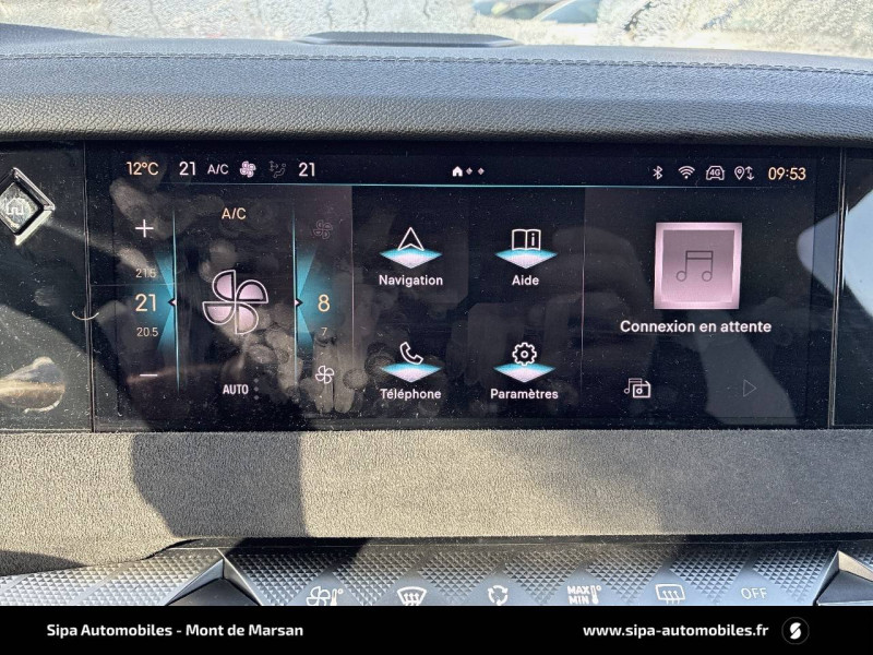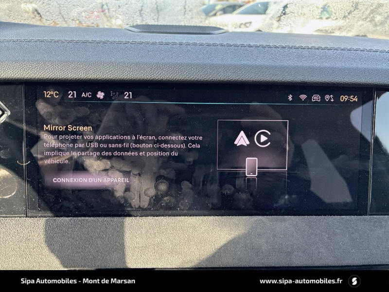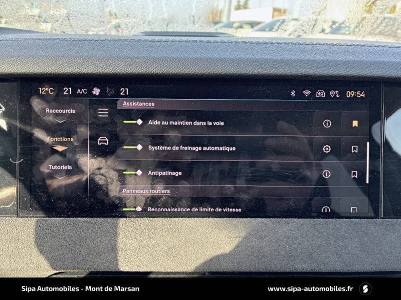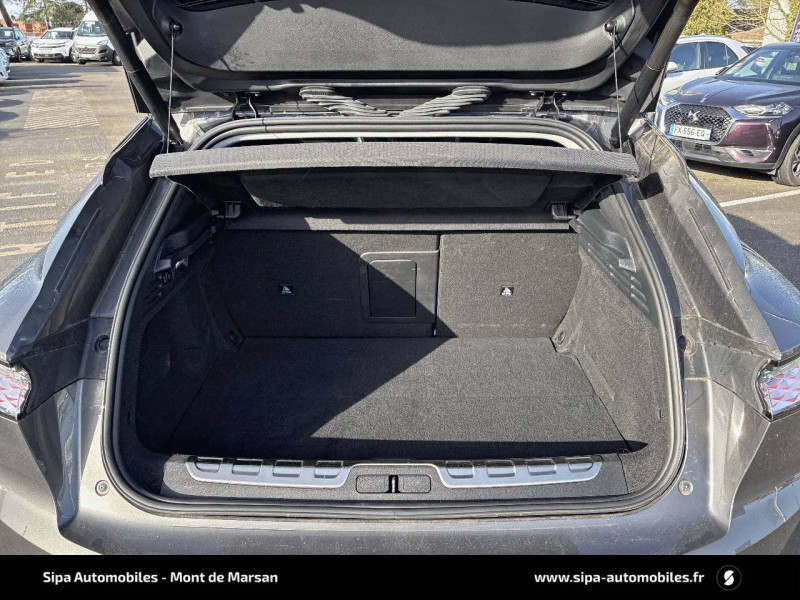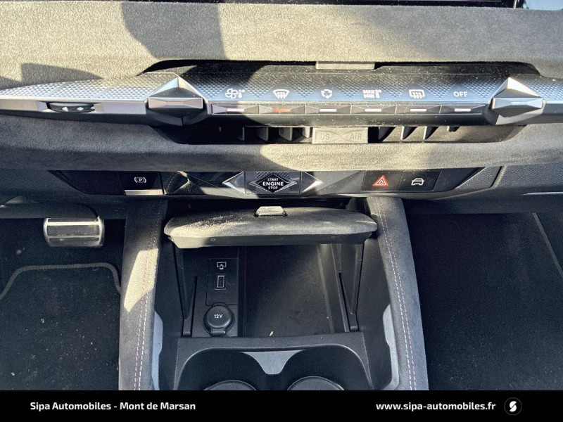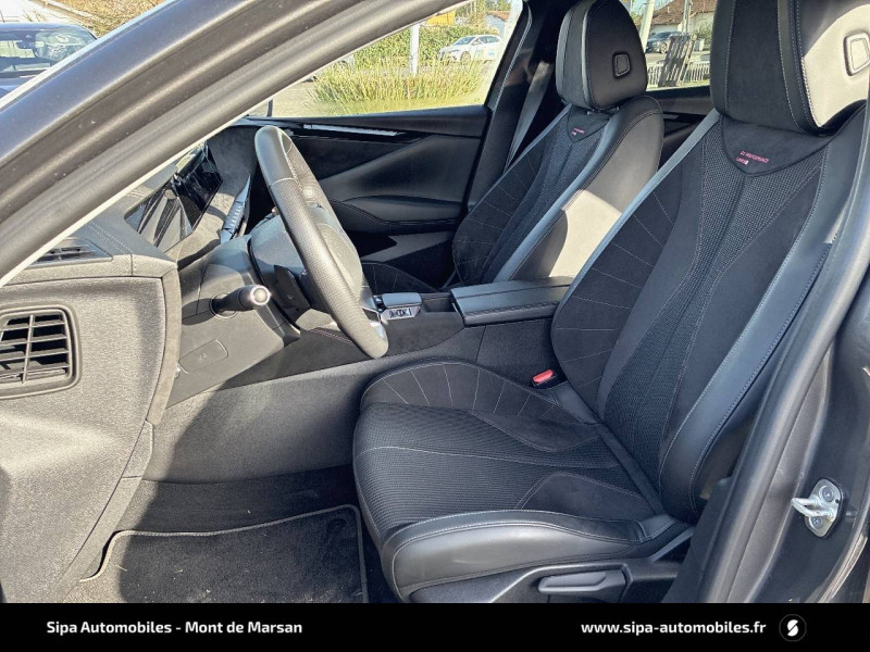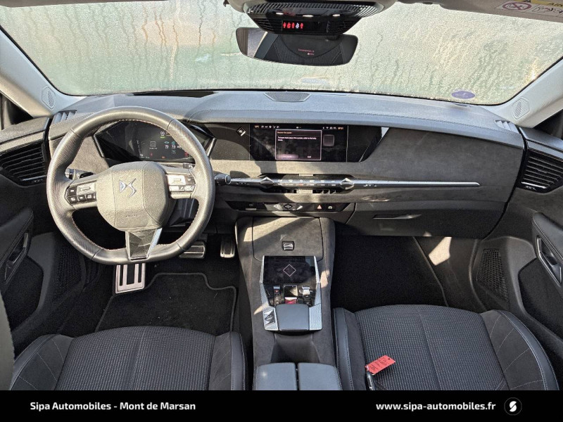 ABS avec répartiteur électronique de freinage (REF) et Aide au Freinage d'Urgence (AFU) + Aide au démarrage en pente / Accoudoir central AR avec trappe à ski et 2 porte-gobelets / Aide au stationnement AV/AR avec Caméra de recul / Airbags frontaux (passager déconnectable), latéraux AV, rideaux aux places AV/AR et central entre les places AV / Alerte Attention Conducteur / Antenne "aileron de requin" / Avertisseur de risque de collision / Banquette AR 2/3 - 1/3 avec 3 appuie-tête / Banquette AR avec trappe à skis / Black Pack / Câble de recharge mode 2 standard 1,8 kW (10 A) / Cabochons d'écrous de roue noir brillant / Capot actif / Chargeur embarqué monophasé de 7,4 kW / Combiné numérique 7" / Console centrale avec rangement fermé / Contrôle dynamique de stabilité (ESP) avec antipatinage des roues (ASR) + Contrôle de stabilité de l'attelage / Détection de sous-gonflage / Diffuseur AR noir brillant avec décors d'échappement chromé / DS AIR (Aérateurs centraux invisibles avec sabre chrome) / DS e-toggle (Sélecteur de vitesses) / DS Wings noir brillant / Eclairage d'ambiance à LED / Eclairage de boîte à gants, d'accoudoir central AV et de coffre à LED / Eclairage de cave à pieds à LED / Ecran tactile capacitif 10" HD / Enjoliveurs supérieurs des vitres latérales noir brillant / Essuie-vitre AV à déclenchement et cadencement automatiques + Buses de lavage / Feux AR Full LED effet 3D avec traitement écailles / Fixations ISOFIX à la place passager AV et aux places latérales AR / Freinage d'urgence automatique piloté par caméra et radar / Freinage multi-collision / Frein de stationnement électrique automatique / Intérieur Tissu Tressé Basalte avec Alcantara / Jantes alliage 19" MINNEAPOLIS / Jonc de volet noir brillant / Kit de dépannage provisoire de pneumatiques / Lécheurs de vitres latérales et enjoliveur de custode noir brillant / Lève-vitres AV/AR électriques, séquentiels et antipincement / Mirror Screen sans fil via Wifi Compatible Apple CarPlay et Android Auto / Monogramme AR noir brillant / Monogramme AV noir mat / Monogramme DS chromé sur l'enjoliveur de custode latéral noir brillant / Monogramme extérieur sur le capot noir brillant / Pare-brise teinté acoustique / Pare-soleil avec miroirs de courtoisie occultables éclairés à LED / Poignées extérieures affleurantes chromées / Préconditionnement thermique de l'habitacle programmable par smartphone Via MyDS App / Prises 12 V 1 prise AV et 1 prise dans le coffre / Prises USB 1 prise USB-C sous l'accoudoir central AV, 1 prise USB-C dans la console et 2 prises USB-C pour les passagers AR / Radio numérique terrestre (DAB) Inclut le Bluetooth / Rétroviseur intérieur électrochrome sans cadre / Rétroviseurs extérieurs électriques, dégivrants, rabattables électriquement Avec éclairage d'accueil / SOS & Assistance Service inclus pendant 10 ans / Teinte Caisse nacrée / Vérins d'ouverture et de maintien du capot moteur