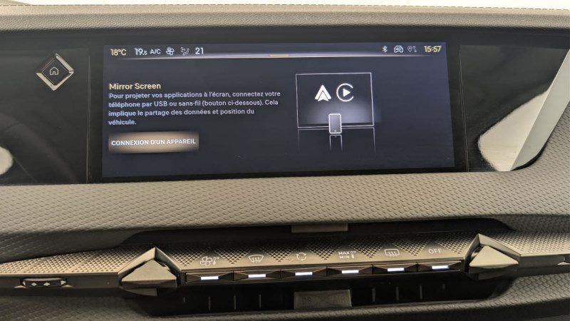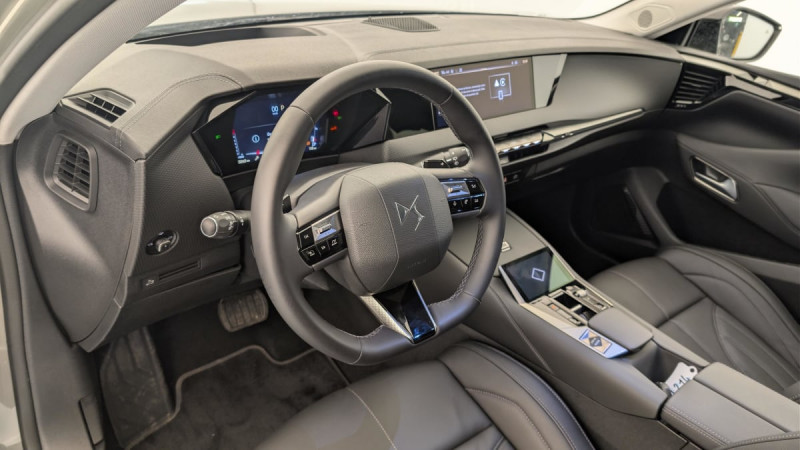 Véhicule sans roue de secours ni kit de dépannage / Frein de stationnement électrique automatique / Lève-vitres AV/AR électriques, séquentiels et antipincement / Freinage multi-collision / Rétroviseur intérieur électrochrome sans cadre / Alerte Attention Conducteur / Fixations ISOFIX à la place passager AV et aux places latérales AR / Vérins d'ouverture et de maintien du capot moteur / DS MATRIX LED VISION / Détection de sous-gonflage / Eclairage de boîte à gants, d'accoudoir central AV et de coffre à LED / Banquette AR 2/3 - 1/3 avec 3 appuie-tête / SOS / DS IRIS SYSTEM / Avertisseur de risque de collision / Combiné numérique 7" / DS e-toggle (Sélecteur de vitesses) / ABS avec répartiteur électronique de freinage (REF) et Aide au Freinage d'Urgence (AFU) + Aide au démarrage en pente / Pare-brise teinté acoustique / Grille de calandre noir brillant avec pampilles chromées / Eclairage de cave à pieds à LED / Eclairage d'ambiance à LED / Mirror Screen sans fil via Wifi Compatible Apple CarPlay et Android Auto / Essuie-vitre AV à déclenchement et cadencement automatiques / Accès et démarrage mains libres Proximity / Accoudoir central AR avec trappe à ski et 2 porte-gobelets / Airbags frontaux (passager déconnectable), latéraux AV, rideaux aux places AV/AR et central entre les places AV / Antenne "aileron de requin" / Console centrale avec rangement fermé / Contrôle dynamique de stabilité (ESP) avec antipatinage des roues (ASR) + Contrôle de stabilité de l'attelage / Feux AR Full LED effet 3D avec traitement écailles / Jonc de volet chromé / Pare-soleil avec miroirs de courtoisie occultables éclairés à LED / Prises 12 V 1 prise AV et 1 prise dans le coffre / Prises USB 1 prise USB-C sous l'accoudoir central AV, 1 prise USB-C dans la console et 2 prises USB-C pour les passagers AR / Prédisposition pour roue de secours galette / Radio numérique terrestre (DAB) Inclut le Bluetooth / Rétroviseurs extérieurs électriques, dégivrants, rabattables électriquement Avec éclairage d'accueil / Poignées extérieures affleurantes chromées / Ecran tactile capacitif 10" HD / Clean Cabin avec Air Quality System / DS Drive Assist et Pack Détection Trafic AR : Adaptive Cruise Control Stop & Go Surveillance d'angles morts longue distance Alerte de Trafic AR Lane Positioning Assist afin de gérer la conduite de manière semi-autonome / DS EXTENDED HEAD UP DISPLAY Affichage tete haute étendu / Intérieur Cuir grainé Noir Basalte et Toile DS : Ciel de pavillon clair Décors de panneaux de porte Chrome guilloché Volant en cuir fleur Mistral Console centrale en Toile DS Mistral Planche de bord en toile DS Noir Basalte façon écaille Panneaux de portes en toile DS Noir Basalte façon écaille Sellerie en Cuir grainé Noir Basalte et Toile DS Parties centrales des sièges AV, partie centrale des sièges latéraux AR et partie AV des appuie-tête en cuir. Bourrelets latéraux des sièges AV, accoudoir central et siège central AR, et parties latérales et AR des appuis tête en Toile DS. / Pack Sièges mécaniques avec réglages lombaires conducteur et passager /