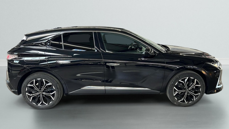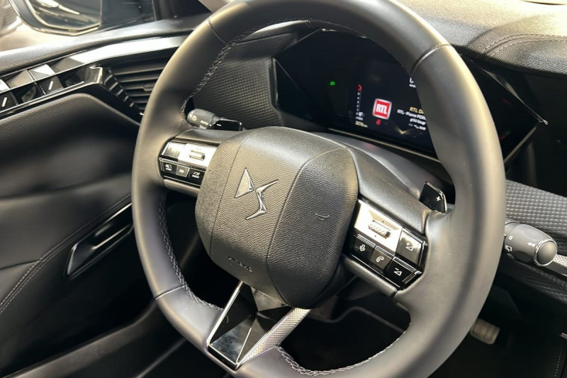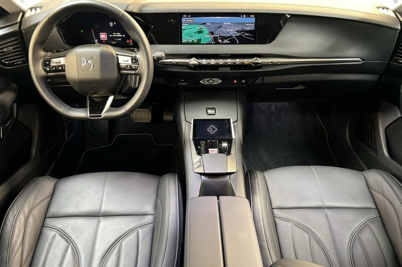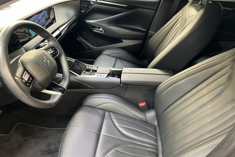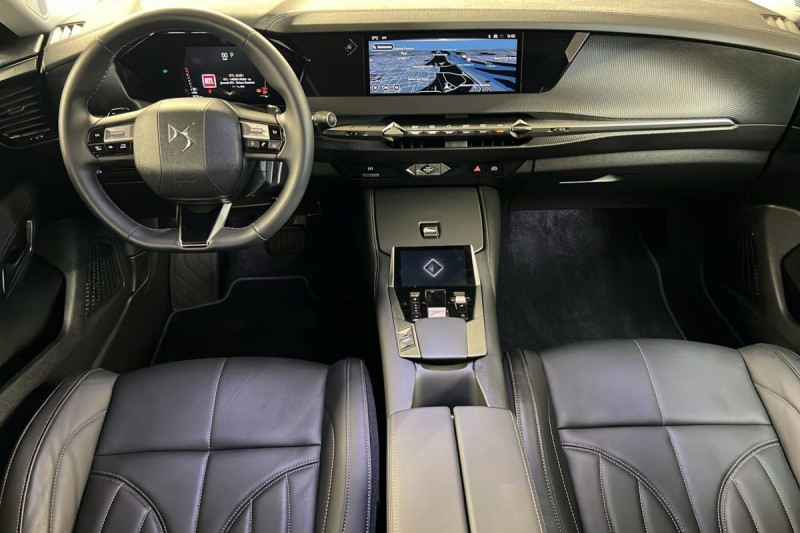 Véhicule sans roue de secours ni kit de dépannage / Frein de stationnement électrique automatique / Lève-vitres AV/AR électriques, séquentiels et antipincement / Freinage multi-collision / Rétroviseur intérieur électrochrome sans cadre / Alerte Attention Conducteur / Fixations ISOFIX à la place passager AV et aux places latérales AR / Vérins d'ouverture et de maintien du capot moteur / DS MATRIX LED VISION / Détection de sous-gonflage / Eclairage de boîte à gants, d'accoudoir central AV et de coffre à LED / Banquette AR 2/3 - 1/3 avec 3 appuie-tête / Teinte Caisse nacrée Noir Perla Nera / SOS / DS IRIS SYSTEM / Avertisseur de risque de collision / Combiné numérique 7" / DS e-toggle (Sélecteur de vitesses) / ABS avec répartiteur électronique de freinage (REF) et Aide au Freinage d'Urgence (AFU) + Aide au démarrage en pente / Pare-brise teinté acoustique / Grille de calandre noir brillant avec pampilles chromées / Eclairage de cave à pieds à LED / Eclairage d'ambiance à LED / Mirror Screen sans fil via Wifi Compatible Apple CarPlay et Android Auto / Essuie-vitre AV à déclenchement et cadencement automatiques / Accès et démarrage mains libres Proximity / Accoudoir central AR avec trappe à ski et 2 porte-gobelets / Airbags frontaux (passager déconnectable), latéraux AV, rideaux aux places AV/AR et central entre les places AV / Antenne "aileron de requin" / Console centrale avec rangement fermé / Contrôle dynamique de stabilité (ESP) avec antipatinage des roues (ASR) + Contrôle de stabilité de l'attelage / Feux AR Full LED effet 3D avec traitement écailles / Jonc de volet chromé / Pare-soleil avec miroirs de courtoisie occultables éclairés à LED / Prises 12 V 1 prise AV et 1 prise dans le coffre / Prises USB 1 prise USB-C sous l'accoudoir central AV, 1 prise USB-C dans la console et 2 prises USB-C pour les passagers AR / Prédisposition pour roue de secours galette / Radio numérique terrestre (DAB) Inclut le Bluetooth / Rétroviseurs extérieurs électriques, dégivrants, rabattables électriquement Avec éclairage d'accueil / Poignées extérieures affleurantes chromées / Ecran tactile capacitif 10" HD / Clean Cabin avec Air Quality System / DS Drive Assist et Pack Détection Trafic AR : Adaptive Cruise Control Stop & Go Surveillance d'angles morts longue distance Alerte de Trafic AR Lane Positioning Assist afin de gérer la conduite de manière semi-autonome / DS EXTENDED HEAD UP DISPLAY Affichage tete haute étendu / Intérieur Cuir grainé Noir Basalte et Toile DS : Ciel de pavillon clair Décors de panneaux de porte Chrome guilloché Volant en cuir fleur Mistral Console centrale en Toile DS Mistral Planche de bord en toile DS Noir Basalte façon écaille Panneaux de portes en toile DS Noir Basalte façon écaille Sellerie en Cuir grainé Noir Basalte et Toile DS Parties centrales des sièges AV, partie centrale des sièges latéraux AR et partie AV des appuie-tête en cuir. Bourrelets latéraux des sièges AV, accoudoir central et siège central AR, et parties latérales et AR des appuis tête en Toile DS. / Pack Sièges mécaniques avec réglages lombaires conducteur et passager /