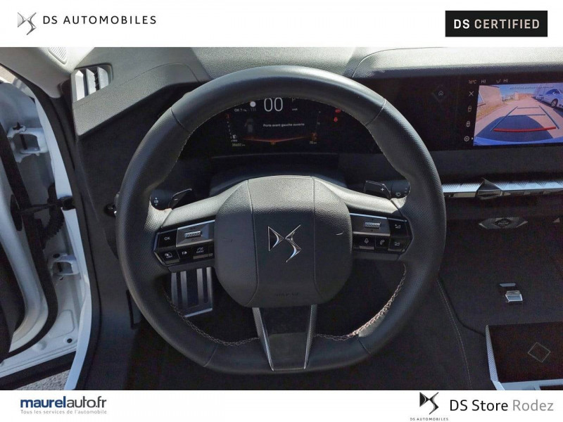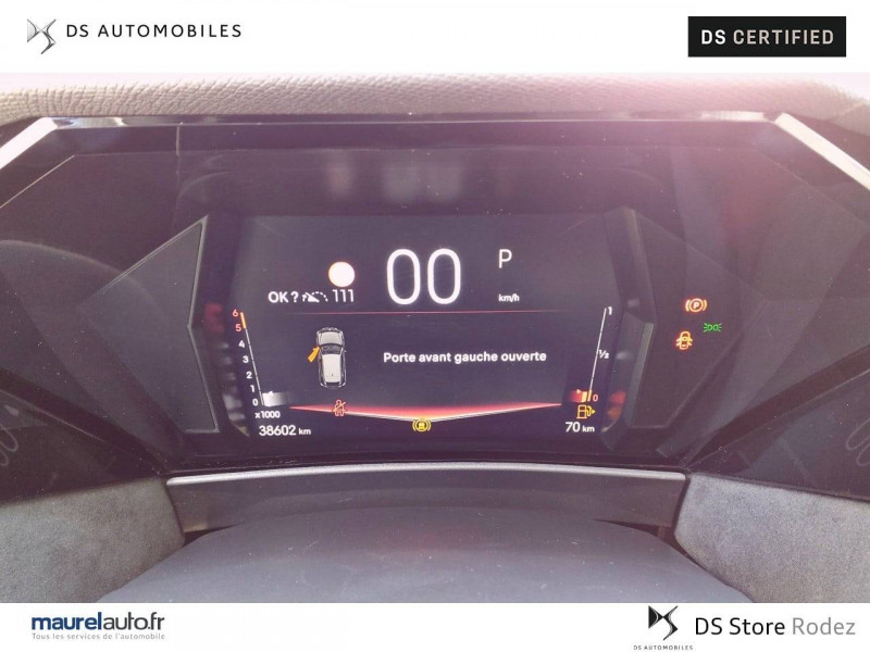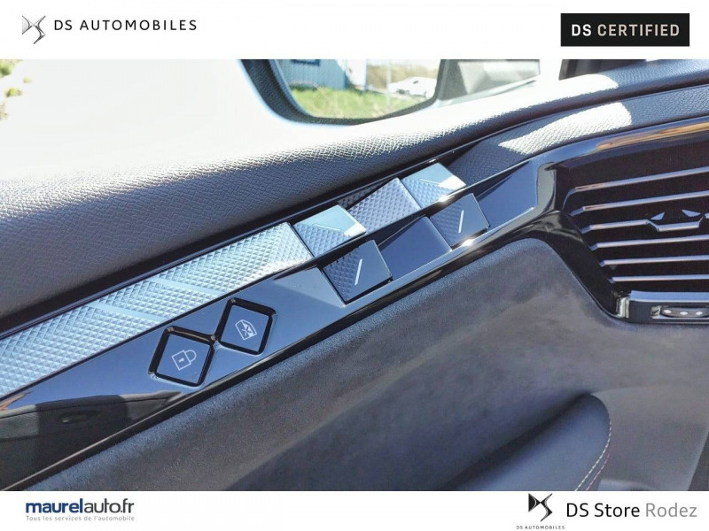 ABS avec répartiteur électronique de freinage (REF) et Aide au Freinage d'Urgence (AFU) / Accoudoir central AV réfrigéré avec avec passe-fil / Aérateurs latéraux AV déportés sur les portes / Aide au stationnement AV/AR avec Caméra de recul / Airbag central entre les places AV / Airbags frontaux aux places AV avec désactivation par clé de l'airbag passager / Airbags latéraux de type "thorax" aux places AV / Allumage automatique des feux de détresse en cas de forte décélération / Antenne radio "Aileron de requin" / Appuie-tête à réglages intégrés à 4 voies / Avertisseur bi-ton / Avertisseur de risque de collision / Banquette AR 2/3 - 1/3 avec 3 appuie-tête / Banquette AR avec trappe à skis / Bas de portières avec insert Chromé / Cabochons d'écrous de roue noir brillant / Centre de roue PERFORMANCE LINE / Clignotants impulsionnels 3 coups / Climatisation avec aérateurs aux places AR / Combiné numérique 7" / Console centrale avec 2 porte-gobelets / Console centrale avec compartiment rangement fermé / Contrôle de traction intelligent / Contrôle dynamique de stabilité (ESP) avec antipatinage des roues (ASR) / Coques de rétroviseurs extérieurs Noir Perla Nera / Crochet d'arrimage dans le coffre au dessus du plancher de coffre x4 / Détection de sous-gonflage / DS AIR (Aérateurs invisibles) / DS E-Toggle (Sélecteur de vitesses) / Eclairage d'accompagnement / Eclairage d'accueil automatique / Eclairage PolyAmbient / Feux AR 3D (traitement écailles) Avec indicateur de changement de direction défilant / Filet de rangement au dos des sièges AV / Filtre habitacle à haute efficacité (anti-particules fines) / Fixations ISOFIX à la place passager AV et aux places latérales AR / Fonction de conduite préférée / Freinage multi-collision / Frein de stationnement électrique automatique / Guide utilisateur numérique / Indicateur de rapports engagés / Intérieur Alcantara Noir / Jantes alliage 19" MINNEAPOLIS / Jonc sur volet entre feux Noir Brillant / Kit de dépannage provisoire / Lécheurs de vitres Noir Brillant / Lève-vitres AV/AR électriques, séquentiels et antipincement / Monogramme PERFORMANCE line sur le capot / Ouverture et fermeture des vitres à distance / Pack Sécurité / Pack style PERFORMANCE LINE / Panneaux de portes en alcantara / Pare-brise teinté et acoustique / Pare-choc AR avec finition Noire Brillante / Pare-choc AV couleur carrosserie / Pare Soleil en tissu avec éclairage à LED / Pédalier et le repose-pied aluminium / Pieds de rétroviseurs extérieurs couleur carrosserie / Planche de bord Alcantara Noir / Poignées de portes affleurantes / Prise 12 V dans le coffre / Prises USB x2 aux places AR / Prise USB Data à l'AV / Rangements sous le plancher de coffre / Rétroviseur intérieur électrochrome sans cadre / Sangle de coffre / Services Pack Navigation Plus 3 ANS INCLUS à l'achat du véhicule: info trafic en temps réel, Reconnaissance vocale en langage naturel, Localisation des stations-services et prix des carburants, Localisation et disponibilité en temps réel des bornes de recharge pour véhicules électrifiés, Mises à jour des cartographies en ligne, Recherche en ligne des adresses et des Points d'Intérêt, Tarifs et disponibilité en temps réel des parkings, Prévisions météorologiques, Zones de Danger / Seuil de coffre chromé / Sièges AV avec réglage lombaires / Surtapis AV/AR / Système audio Analogique à 6 HP avec Bluetooth / Système Infotainment écran 10" tactile avec Mirror Screen sans fil / Témoin et alerte sonore de non-bouclage des ceintures de sécurité AV/AR / Vérins d'ouverture et de maintien du capot moteur / Verrouillage automatique des portes en roulant
