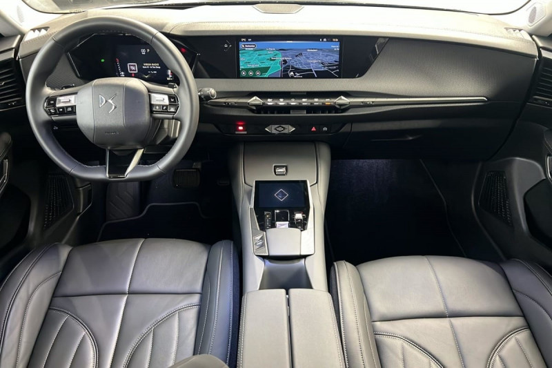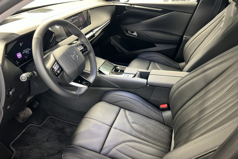 Véhicule sans roue de secours ni kit de dépannage / Frein de stationnement électrique automatique / Lève-vitres AV/AR électriques, séquentiels et antipincement / Freinage multi-collision / Rétroviseur intérieur électrochrome sans cadre / Alerte Attention Conducteur / Fixations ISOFIX à la place passager AV et aux places latérales AR / Vérins d'ouverture et de maintien du capot moteur / DS MATRIX LED VISION / Détection de sous-gonflage / Eclairage de boîte à gants, d'accoudoir central AV et de coffre à LED / Banquette AR 2/3 - 1/3 avec 3 appuie-tête / Teinte Caisse nacrée Noir Perla Nera / SOS / DS IRIS SYSTEM / Avertisseur de risque de collision / Combiné numérique 7" / DS e-toggle (Sélecteur de vitesses) / ABS avec répartiteur électronique de freinage (REF) et Aide au Freinage d'Urgence (AFU) + Aide au démarrage en pente / Pare-brise teinté acoustique / Grille de calandre noir brillant avec pampilles chromées / Eclairage de cave à pieds à LED / Eclairage d'ambiance à LED / Mirror Screen sans fil via Wifi Compatible Apple CarPlay et Android Auto / Essuie-vitre AV à déclenchement et cadencement automatiques / Accès et démarrage mains libres Proximity / Accoudoir central AR avec trappe à ski et 2 porte-gobelets / Airbags frontaux (passager déconnectable), latéraux AV, rideaux aux places AV/AR et central entre les places AV / Antenne "aileron de requin" / Console centrale avec rangement fermé / Contrôle dynamique de stabilité (ESP) avec antipatinage des roues (ASR) + Contrôle de stabilité de l'attelage / Feux AR Full LED effet 3D avec traitement écailles / Jonc de volet chromé / Pare-soleil avec miroirs de courtoisie occultables éclairés à LED / Prises 12 V 1 prise AV et 1 prise dans le coffre / Prises USB 1 prise USB-C sous l'accoudoir central AV, 1 prise USB-C dans la console et 2 prises USB-C pour les passagers AR / Prédisposition pour roue de secours galette / Radio numérique terrestre (DAB) Inclut le Bluetooth / Rétroviseurs extérieurs électriques, dégivrants, rabattables électriquement Avec éclairage d'accueil / Poignées extérieures affleurantes chromées / Ecran tactile capacitif 10" HD / Clean Cabin avec Air Quality System / DS Drive Assist et Pack Détection Trafic AR : Adaptive Cruise Control Stop & Go Surveillance d'angles morts longue distance Alerte de Trafic AR Lane Positioning Assist afin de gérer la conduite de manière semi-autonome / DS EXTENDED HEAD UP DISPLAY Affichage tete haute étendu / Intérieur Cuir grainé Noir Basalte et Toile DS : Ciel de pavillon clair Décors de panneaux de porte Chrome guilloché Volant en cuir fleur Mistral Console centrale en Toile DS Mistral Planche de bord en toile DS Noir Basalte façon écaille Panneaux de portes en toile DS Noir Basalte façon écaille Sellerie en Cuir grainé Noir Basalte et Toile DS Parties centrales des sièges AV, partie centrale des sièges latéraux AR et partie AV des appuie-tête en cuir. Bourrelets latéraux des sièges AV, accoudoir central et siège central AR, et parties latérales et AR des appuis tête en Toile DS. / Pack Sièges mécaniques avec réglages lombaires conducteur et passager /