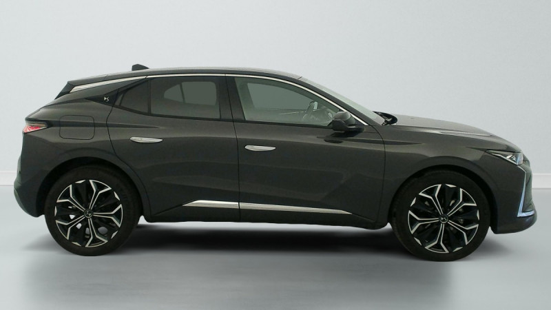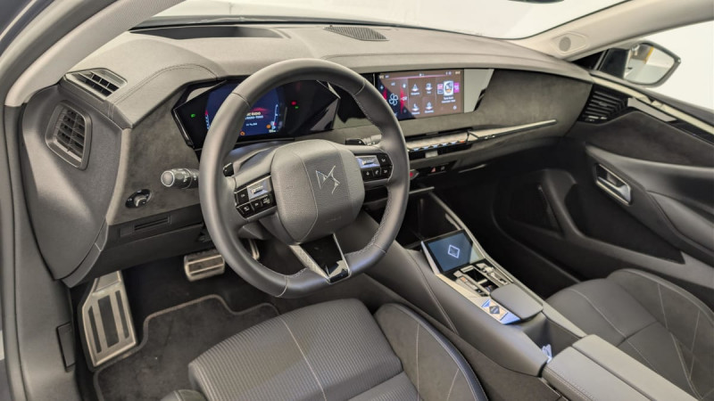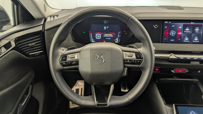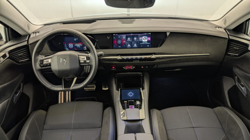 Kit de dépannage provisoire de pneumatiques / Pédalier en aluminium / Frein de stationnement électrique automatique / Freinage multi-collision / Rétroviseur intérieur électrochrome sans cadre / Surtapis AV/AR / Vérins d'ouverture et de maintien du capot moteur / Détection de sous-gonflage / Eclairage de boîte à gants, d'accoudoir central AV et de coffre à LED / Banquette AR 2/3 - 1/3 avec 3 appuie-tête / DS Wings noir brillant / Banquette AR avec trappe à skis / Avertisseur de risque de collision / Combiné numérique 7" / Cabochons d'écrous de roue noir brillant / Diffuseur AR noir brillant / DS e-toggle (Sélecteur de vitesses) / Enjoliveurs supérieurs des vitres latérales chromés / Freinage d'urgence automatique piloté par caméra et radar / Pare-brise teinté acoustique / Grille de calandre noir brillant avec pampilles chromées / Eclairage de cave à pieds à LED / Mirror Screen sans fil via Wifi Compatible Apple CarPlay et Android Auto / Préconditionnement thermique de l'habitacle programmable par smartphone Via MyDS App / Essuie-vitre AV à déclenchement et cadencement automatiques + Buses de lavage / Aide au stationnement AV et AR et Caméra de recul / Accoudoir central AR avec trappe à ski et 2 porte-gobelets / Airbags frontaux (passager déconnectable), latéraux AV, rideaux aux places AV/AR et central entre les places AV / Contrôle dynamique de stabilité (ESP) avec antipatinage des roues (ASR) + Contrôle de stabilité de l'attelage / DS AIR (Aérateurs centraux invisibles avec sabre chrome) / DS SMART TOUCH / Feux AR Full LED effet 3D avec traitement écailles / Jonc de volet chromé / Lécheurs de vitres latérales et enjoliveur de custode noir brillant / Pare-soleil avec miroirs de courtoisie occultables éclairés à LED / Prises 12 V 1 prise AV et 1 prise dans le coffre / Prises USB 1 prise USB-C sous l'accoudoir central AV, 1 prise USB-C dans la console et 2 prises USB-C pour les passagers AR / Prédisposition pour roue de secours galette / Rétroviseurs extérieurs électriques, dégivrants, rabattables électriquement Avec éclairage d'accueil / Seuil de portes AV / Capot actif / Monogrammes AV/AR chromés / Poignées extérieures affleurantes chromées / Ecran tactile capacitif 10" HD / Clean Cabin avec Air Quality System / DS EXTENDED HEAD UP DISPLAY Affichage tete haute étendu / ABS avec répartiteur électronique de freinage (REF) et Aide au Freinage d'Urgence (AFU) Avec aide au démarrage en pente / Alerte attention conducteur / Alerte de franchissement involontaire de ligne Désactivable via l'écran tactile / Anneaux d'arrimage dans le coffre (x4) / DS MATRIX LED VISION Intègre les technologies Matrix Beam et l'éclairage dynamique en courbe. Grâce aux cinq modes préétablis (ville, campagne, autoroute, météo difficile et brouillard), roulez en pleins phares sans éblouir les autres automobilistes / Essuie-vitre AR / Fixations ISOFIX aux places latérales AR Inclut un point d'ancrage TOP TETHER / Régulateur de vitesse adaptatif et Pack Détection trafic AR Avec l'Adaptive Cruise Control Stop & Go. Le Pack Détection Trafic AR comprend l'Alerte de Trafic AR ainsi que la Surveillance d'Angle Mort Longue Distance : Adaptive Cruise Control Stop & Go Surveillance d'angles morts longue distance Alerte de Trafic AR / Sécurité Enfants Sécurité mécanique / SOS & Assistance / Accès et Démarrage mains libres Proximity Déverrouillage et déploiement automatique des poignées de portes affleurantes à l'approche du véhicule / Accoudoir central AV Avec grand rangement réfrigéré et éclairé / Climatisation automatique bizone 3 modes de diffusion Soft / Normal / Fast. Mode Monozone. Fonction Quick Launch via bouton dédié : froid ou chaud rapide selon la température extérieure. Aérateurs aux places AR / Console centrale avec rangement fermé Avec dépose-téléphone et 2 porte-gobelets / Lève-vitres AV et AR électriques, séquentiels et antipincement / Pack sièges électriques Le réglage lombaires pneumatique. Le siège conducteur électrique à 10 voies avec mémoire de position, nez de coussin réglable mécaniquement et fonction accueil. Le siège passager électrique à 6 voies : Réglage lombaire pneumatique Siège conducteur électrique à 10 voies avec mémoire de position, nez de coussin réglable mécaniquement et fonction accueil Siège passager électrique à 6 voies / Plafonnier I-Dome tactile Liseuses iDome à commandes tactiles à l'AR / Sièges AV avec mousse haute densité / Vitres latérales AV et AR feuilletées et acoustiques / Enjoliveurs de bas de porte noirs avec insert chromé / Monogramme DS chromé sur l'enjoliveur de custode latéral / Monogramme extérieur ÉTOILE sur le capot / Eclairage d'ambiance à LED Personnalisable avec 8 couleurs sur les panneaux de portes AV, la planche de bord et le repose paume / Antenne "aileron de requin" Antenne noir brillant / DS IRIS SYSTEM Navigation connectée, intégrant un assistant personnel et reconnaissance vocale, avec ChatGPT. Information trafic en temps réel, prix des carburants, parkings et Zones de Danger. 3 ans de services connectés inclus / Intérieur Alcantara Noir : Planche de bord en Alcantara Ciel de pavillon clair Sellerie en Tissu Tressé Basalte avec Alcantara et toile DS Décors de panneaux de porte Chrome guilloché Volant cuir Fleur Mistral Console en toile DS Noir Basalte Panneaux de porte en Alcantara et Toile DS Noir Basalte / Centre de roues Noir /