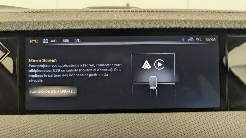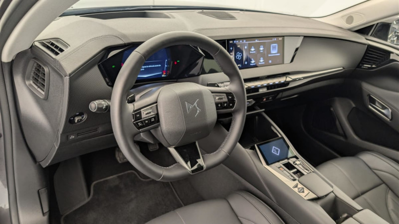 Véhicule sans roue de secours ni kit de dépannage / Frein de stationnement électrique automatique / Lève-vitres AV/AR électriques, séquentiels et antipincement / Freinage multi-collision / Rétroviseur intérieur électrochrome sans cadre / Alerte Attention Conducteur / Fixations ISOFIX à la place passager AV et aux places latérales AR / Vérins d'ouverture et de maintien du capot moteur / DS MATRIX LED VISION / Détection de sous-gonflage / Eclairage de boîte à gants, d'accoudoir central AV et de coffre à LED / Banquette AR 2/3 - 1/3 avec 3 appuie-tête / SOS / DS IRIS SYSTEM / Avertisseur de risque de collision / Combiné numérique 7" / DS e-toggle (Sélecteur de vitesses) / ABS avec répartiteur électronique de freinage (REF) et Aide au Freinage d'Urgence (AFU) + Aide au démarrage en pente / Pare-brise teinté acoustique / Grille de calandre noir brillant avec pampilles chromées / Eclairage de cave à pieds à LED / Eclairage d'ambiance à LED / Mirror Screen sans fil via Wifi Compatible Apple CarPlay et Android Auto / Essuie-vitre AV à déclenchement et cadencement automatiques / Accès et démarrage mains libres Proximity / Accoudoir central AR avec trappe à ski et 2 porte-gobelets / Airbags frontaux (passager déconnectable), latéraux AV, rideaux aux places AV/AR et central entre les places AV / Antenne "aileron de requin" / Console centrale avec rangement fermé / Contrôle dynamique de stabilité (ESP) avec antipatinage des roues (ASR) + Contrôle de stabilité de l'attelage / Feux AR Full LED effet 3D avec traitement écailles / Jonc de volet chromé / Pare-soleil avec miroirs de courtoisie occultables éclairés à LED / Prises 12 V 1 prise AV et 1 prise dans le coffre / Prises USB 1 prise USB-C sous l'accoudoir central AV, 1 prise USB-C dans la console et 2 prises USB-C pour les passagers AR / Prédisposition pour roue de secours galette / Radio numérique terrestre (DAB) Inclut le Bluetooth / Rétroviseurs extérieurs électriques, dégivrants, rabattables électriquement Avec éclairage d'accueil / Poignées extérieures affleurantes chromées / Ecran tactile capacitif 10" HD / Clean Cabin avec Air Quality System / DS Drive Assist et Pack Détection Trafic AR : Adaptive Cruise Control Stop & Go Surveillance d'angles morts longue distance Alerte de Trafic AR Lane Positioning Assist afin de gérer la conduite de manière semi-autonome / DS EXTENDED HEAD UP DISPLAY Affichage tete haute étendu / Intérieur Cuir grainé Noir Basalte et Toile DS : Ciel de pavillon clair Décors de panneaux de porte Chrome guilloché Volant en cuir fleur Mistral Console centrale en Toile DS Mistral Planche de bord en toile DS Noir Basalte façon écaille Panneaux de portes en toile DS Noir Basalte façon écaille Sellerie en Cuir grainé Noir Basalte et Toile DS Parties centrales des sièges AV, partie centrale des sièges latéraux AR et partie AV des appuie-tête en cuir. Bourrelets latéraux des sièges AV, accoudoir central et siège central AR, et parties latérales et AR des appuis tête en Toile DS. / Pack Sièges mécaniques avec réglages lombaires conducteur et passager /