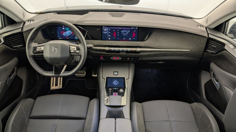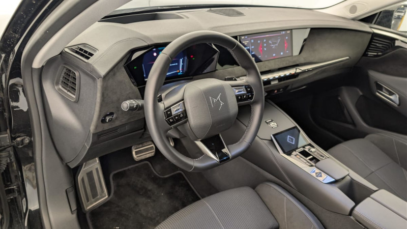 Kit de dépannage provisoire de pneumatiques / Pédalier en aluminium / Frein de stationnement électrique automatique / Rétroviseur intérieur électrochrome sans cadre / Détection de sous-gonflage / Eclairage de boîte à gants, d'accoudoir central AV et de coffre à LED / Banquette AR 2/3 - 1/3 avec 3 appuie-tête / Avertisseur de risque de collision / Combiné numérique 7" / DS E-Toggle (Sélecteur de vitesses) / Freinage d'urgence automatique piloté par caméra et radar / Pare-brise teinté acoustique / Eclairage de cave à pieds à LED / Mirror Screen sans fil via Wifi Compatible Apple CarPlay et Android Auto / Essuie-vitre AV à déclenchement et cadencement automatiques + Buses de lavage / Aide au stationnement AV et AR et Caméra de recul / Airbags frontaux (passager déconnectable), latéraux AV, rideaux aux places AV/AR et central entre les places AV / Contrôle dynamique de stabilité (ESP) avec antipatinage des roues (ASR) + Contrôle de stabilité de l'attelage / Feux AR Full LED effet 3D avec traitement écailles / Pare-soleil avec miroirs de courtoisie occultables éclairés à LED / Rétroviseurs extérieurs électriques, dégivrants, rabattables électriquement Avec éclairage d'accueil / Ecran tactile capacitif 10" HD / Clean Cabin avec "Air Quality System" / DS EXTENDED HEAD UP DISPLAY Affichage tete haute étendu / ABS avec répartiteur électronique de freinage (REF) et Aide au Freinage d'Urgence (AFU) Avec aide au démarrage en pente / Alerte attention conducteur / Alerte de franchissement involontaire de ligne Désactivable via l'écran tactile / DS MATRIX LED VISION Intègre les technologies Matrix Beam et l'éclairage dynamique en courbe. Grâce aux cinq modes préétablis (ville, campagne, autoroute, météo difficile et brouillard), roulez en pleins phares sans éblouir les autres automobilistes / Essuie-vitre AR / Fixations ISOFIX aux places latérales AR Inclut un point d'ancrage TOP TETHER / Régulateur de vitesse adaptatif et Pack Détection : Adaptive Cruise Control Stop & Go Surveillance d'angles morts longue distance Alerte de Trafic AR / SOS / Accès et Démarrage mains libres Proximity Déverrouillage et déploiement automatique des poignées de portes affleurantes à l'approche du véhicule / Accoudoir central AV Avec grand rangement & éclairé / Climatisation automatique bizone 3 modes de diffusion Soft / Normal / Fast. Mode Monozone. Fonction Quick Launch via bouton dédié : froid ou chaud rapide selon la température extérieure. Aérateurs aux places AR / Console centrale avec rangement fermé Avec dépose-téléphone et 2 porte-gobelets / Lève-vitres AV/AR électriques, séquentiels et antipincement / Pack sièges électriques : Réglage lombaire pneumatique Siège conducteur électrique à 10 voies avec mémoire de position, nez de coussin réglable mécaniquement et fonction accueil Siège passager électrique à 6 voies / Vitres latérales AV/AR feuilletées et acoustiques / Eclairage d'ambiance à LED Personnalisable avec 8 couleurs sur les panneaux de portes AV, la planche de bord et le repose paume / Antenne "aileron de requin" Antenne noir brillant / Intérieur Alcantara Noir : Planche de bord en Alcantara Ciel de pavillon clair Décors de panneaux de porte Chrome guilloché Volant cuir Fleur Mistral Console en toile DS Noir Basalte Panneaux de porte en Alcantara et Toile DS Noir Basalte Sellerie en Tissu Tressé Basalte avec Alcantara et toile DS / DS IRIS SYSTEM Navigation connectée, intégrant un assistant personnel et reconnaissance vocale, avec ChatGPT. Information trafic en temps réel, prix des carburants, parkings et Zones de Danger. 3 ans de services connectés inclus /