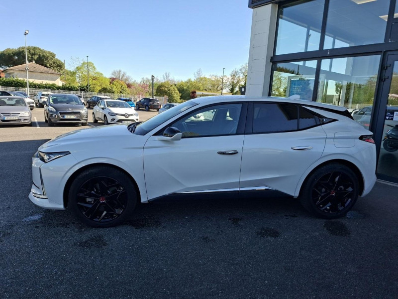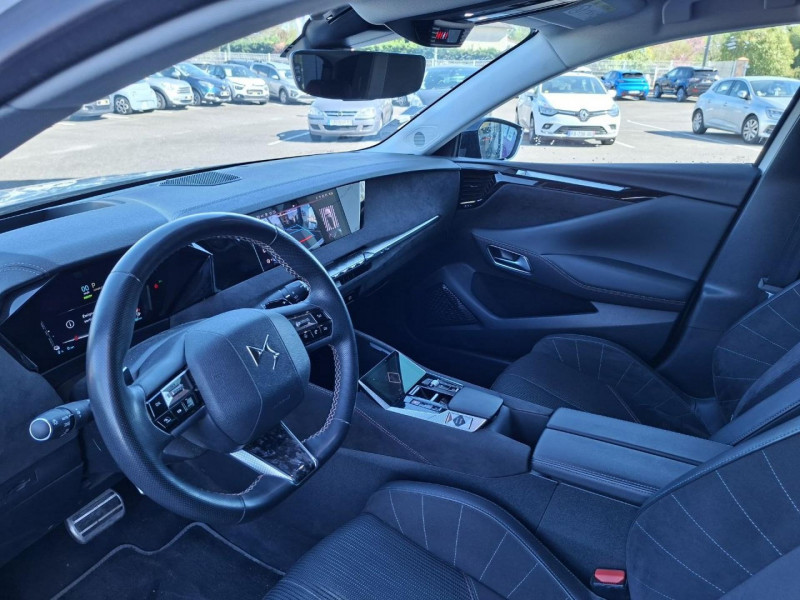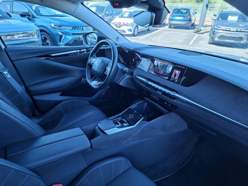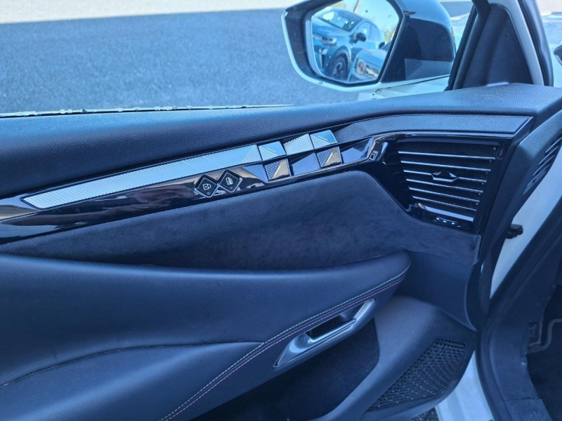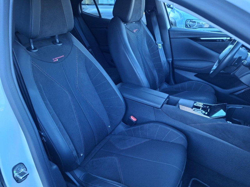 1 prise 12 volts dans le coffre / 2 porte-gobelets dans la console centrale / ABS avec répartiteur électronique de freinage (REF) et aide au freinage d'urgence (AFU) / Accoudoir central avant avec compartiment réfrigéré / Aérateurs aux places arrières / Aérateurs latéraux avant déportés sur les portes / Airbag central entre les sièges avant / Airbags frontaux aux places avant, avec désactivation par clé de l'airbag passager / Airbags latéraux de type «thorax» aux places avant / Antenne de toit « aileron de requin » / Avertisseur ''2 tons'' / Avertisseur de risque de collision / Bas de portières avec insert Chromé / Câble de recharge mode 2 standard 1,8kW (8A) / Câble de recharge mode 3 monophasée 7,4kW / Cabochons de roue noir brillant / Calandre surmontée de l'emblème E-TENSE / Centre de roue PERFORMANCE LINE / Chargeur embarqué 7,4kW / Clignotants impulsionnels 3 coups / Compteur numérique 7?? / Contrôle de Traction Intelligent / Contrôle dynamique de stabilité (ESP) avec antipatinage des roues (ASR) / Coques de rétroviseurs extérieurs Noir Perla Nera / Crochets d'arrimage dans le coffre (x4) / Détection de sous-gonflage des pneumatiques / DS Active scan suspension / DS E-TOGGLE / Eclairage d'accompagnement "Follow me Home" / Eclairage d'accueil automatique / Eclairage Polyambient / Espace de rangement sous le plancher de coffre / Feux arrière 3D (traitement écailles) / Filets de rangement au dos des sièges avant / Filtre habitacle à haute efficacité (anti-particules fines) / Fixations Isofix pour siège passager avant et places latérales arrière / Frein de stationnement électrique automatique / Frein multi-collision / Freinage d'urgence automatique piloté par caméra et radar avec Pack Sécurité / Guide utilisateur numérique / Indicateur de rapport engagé / Intérieur Alcantara Noir / Jonc sur volet noir brillant / Kit de dépannage / Lécheurs de vitres noir brillant / Lève-vitres électriques avant et arrière, séquentiels et antipincement / Ouverture et fermeture à distance des vitres / Pack Sécurité / Pack style PERFORMANCE LINE / Panneaux de porte en Alcantara / Pare Soleil rembourrés en tissu avec éclairage à LED / Pare-chocs arrière en noir brillant / Pare-chocs avant couleur carrosserie / Pédalier et repose-pied en aluminium / Pieds de rétroviseurs extérieurs couleur carrosserie / Planche de bord en Alcantara Noir / Poignées de portes affleurantes Chromées / Préchauffage du véhicule depuis un smartphone ou bien depuis l'écran tactile 10" / Prise 12 volts à l'avant / Prise USB Data à l'avant / Prises USB x2 à l'arrière (dont une Data) / Rangement fermé sur console centrale / Rétroviseur intérieur électrochrome sans contour / Sacoche de rangement de câble de recharge mode 3 monophasé 7,4kW avec paire de gant / Sangle de coffre / Seuil de coffre chromé / Signature E-TENSE sur le coffre / SOS & ASSISTANCE / Système Audio Analogique à 6HP avec Bluetooth / Système Infotainment écran 10'' tactile aec Mirror Screen sans fil / Témoin et alerte sonore de non-bouclage des ceintures de sécurité avant et arrière / Trappe de recharge étanche côté gauche / Vérins d'ouverture et de maintien du capot moteur