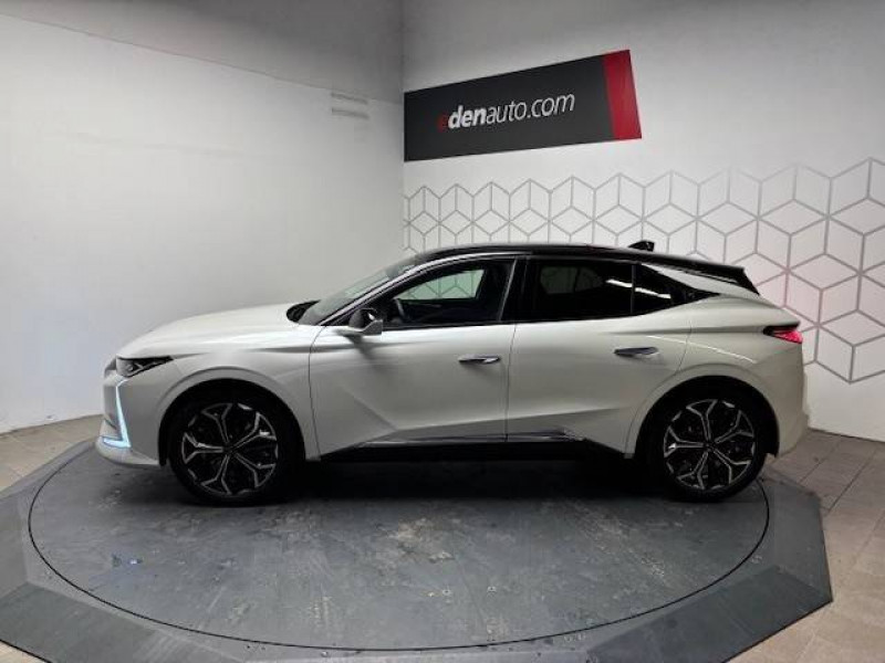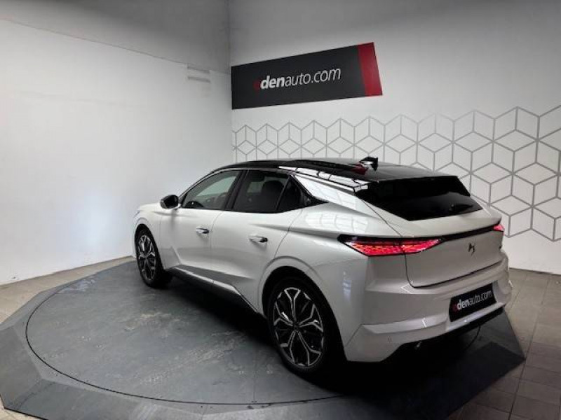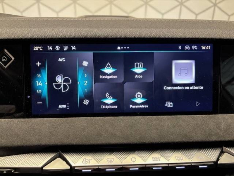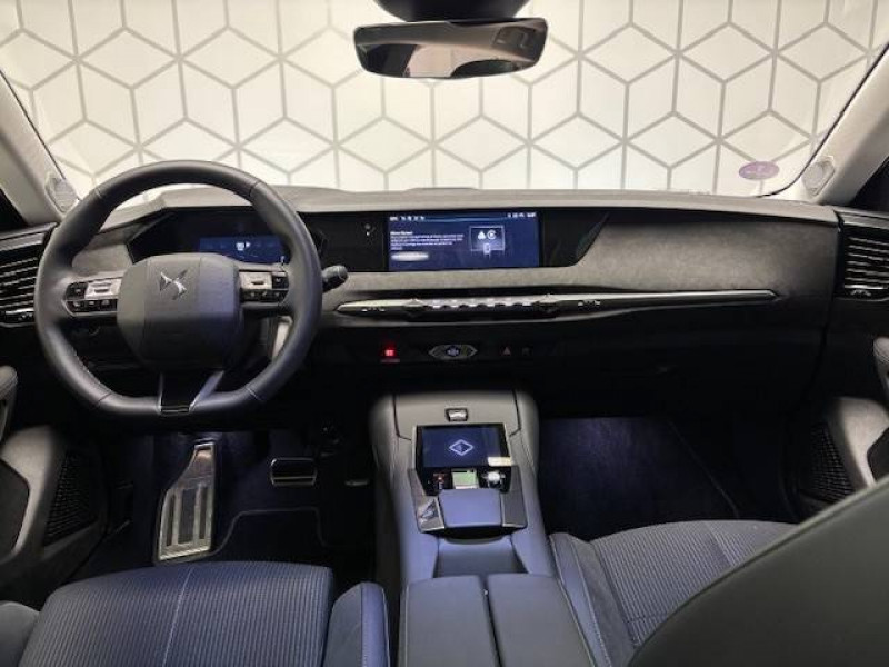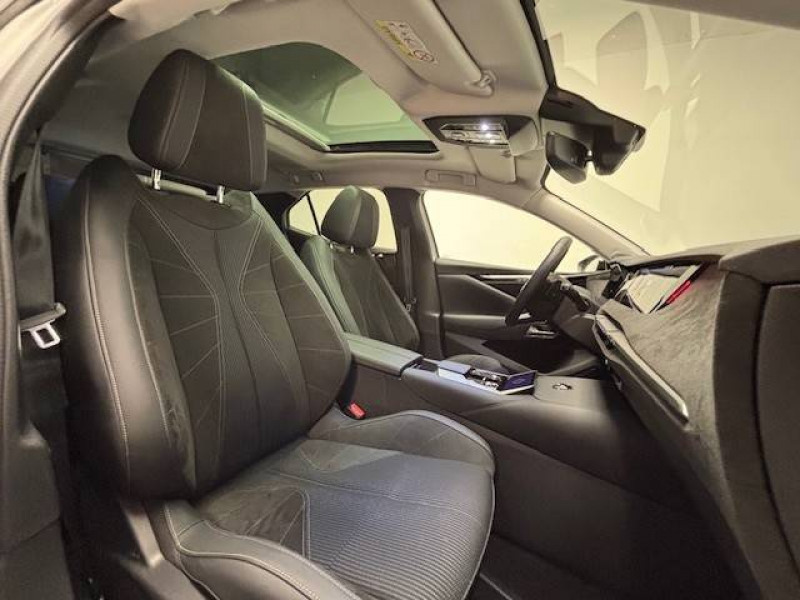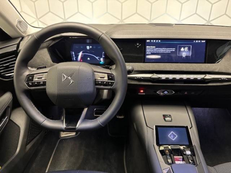 ABS avec répartiteur électronique de freinage (REF) et Aide au Freinage d'Urgence (AFU) Avec aide au démarrage en pente / Accès et Démarrage mains libres Proximity Déverrouillage et déploiement automatique des poignées de portes affleurantes à l'approche du véhicule / Accoudoir central AR avec trappe à ski et 2 porte-gobelets / Accoudoir central AV Avec grand rangement réfrigéré et éclairé / Aide au stationnement AV et AR et Caméra de recul / Airbags frontaux (passager déconnectable), latéraux AV, rideaux aux places AV/AR et central entre les places AV / Alerte attention conducteur / Alerte de franchissement involontaire de ligne Désactivable via l'écran tactile / Anneaux d'arrimage dans le coffre (x4) / Antenne "aileron de requin" Antenne noir brillant / Avertisseur de risque de collision / Banquette AR 2/3 - 1/3 avec 3 appuie-tête / Banquette AR avec trappe à skis / Cabochons d'écrous de roue noir brillant / Capot actif / Centre de roues Noir / Clean Cabin avec Air Quality System / Climatisation automatique bizone 3 modes de diffusion Soft / Normal / Fast. Mode Monozone. Fonction Quick Launch via bouton dédié : froid ou chaud rapide selon la température extérieure. Aérateurs aux places AR / Combiné numérique 7" / Console centrale avec rangement fermé Avec dépose-téléphone et 2 porte-gobelets / Contrôle dynamique de stabilité (ESP) avec antipatinage des roues (ASR) + Contrôle de stabilité de l'attelage / Détection de sous-gonflage / Diffuseur AR noir brillant / DS AIR (Aérateurs centraux invisibles avec sabre chrome) / DS e-toggle (Sélecteur de vitesses) / DS EXTENDED HEAD UP DISPLAY Affichage tete haute étendu / DS IRIS SYSTEM Navigation connectée, intégrant un assistant personnel et reconnaissance vocale, avec ChatGPT. Information trafic en temps réel, prix des carburants, parkings et Zones de Danger. 3 ans de services connectés inclus / DS MATRIX LED VISION Intègre les technologies Matrix Beam et l'éclairage dynamique en courbe. Grâce aux cinq modes préétablis (ville, campagne, autoroute, météo difficile et brouillard), roulez en pleins phares sans éblouir les autres automobilistes / DS SMART TOUCH / DS Wings noir brillant / Eclairage d'ambiance à LED Personnalisable avec 8 couleurs sur les panneaux de portes AV, la planche de bord et le repose paume / Eclairage de boîte à gants, d'accoudoir central AV et de coffre à LED / Eclairage de cave à pieds à LED / Ecran tactile capacitif 10" HD / Enjoliveurs de bas de porte noirs avec insert chromé / Enjoliveurs supérieurs des vitres latérales chromés / Essuie-vitre AR / Essuie-vitre AV à déclenchement et cadencement automatiques + Buses de lavage / Feux AR Full LED effet 3D avec traitement écailles / Fixations ISOFIX aux places latérales AR Inclut un point d'ancrage TOP TETHER / Freinage d'urgence automatique piloté par caméra et radar / Freinage multi-collision / Frein de stationnement électrique automatique / Grille de calandre noir brillant avec pampilles chromées / Intérieur Alcantara Noir / Jonc de volet chromé / Kit de dépannage provisoire de pneumatiques / Lécheurs de vitres latérales et enjoliveur de custode noir brillant / Lève-vitres AV et AR électriques, séquentiels et antipincement / Mirror Screen sans fil via Wifi Compatible Apple CarPlay et Android Auto / Monogramme DS chromé sur l'enjoliveur de custode latéral / Monogramme extérieur ÉTOILE sur le capot / Monogrammes AV/AR chromés / Pack sièges électriques Le réglage lombaires pneumatique. Le siège conducteur électrique à 10 voies avec mémoire de position, nez de coussin réglable mécaniquement et fonction accueil. Le siège passager électrique à 6 voies / Pare-brise teinté acoustique / Pare-soleil avec miroirs de courtoisie occultables éclairés à LED / Pédalier en aluminium / Plafonnier I-Dome tactile Liseuses iDome à commandes tactiles à l'AR / Poignées extérieures affleurantes chromées / Préconditionnement thermique de l'habitacle programmable par smartphone Via MyDS App / Prédisposition pour roue de secours galette / Prises 12 V 1 prise AV et 1 prise dans le coffre / Prises USB 1 prise USB-C sous l'accoudoir central AV, 1 prise USB-C dans la console et 2 prises USB-C pour les passagers AR / Régulateur de vitesse adaptatif et Pack Détection trafic AR Avec l'Adaptive Cruise Control Stop & Go. Le Pack Détection Trafic AR comprend l'Alerte de Trafic AR ainsi que la Surveillance d'Angle Mort Longue Distance / Rétroviseur intérieur électrochrome sans cadre / Rétroviseurs extérieurs électriques, dégivrants, rabattables électriquement Avec éclairage d'accueil / Sécurité Enfants Sécurité mécanique / Seuil de portes AV / Sièges AV avec mousse haute densité / SOS & Assistance / Surtapis AV/AR / Teinte Caisse nacrée Noir Perla Nera / Vérins d'ouverture et de maintien du capot moteur / Vitres latérales AV et AR feuilletées et acoustiques