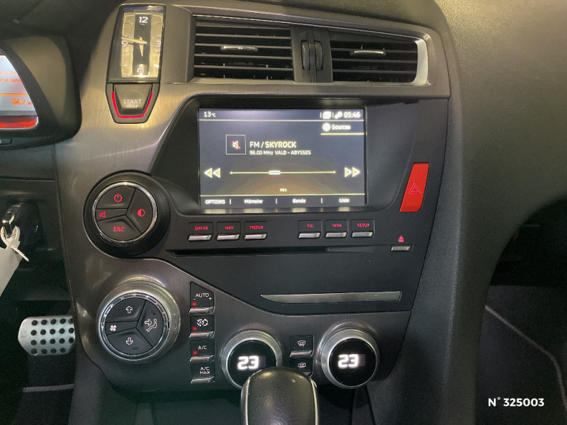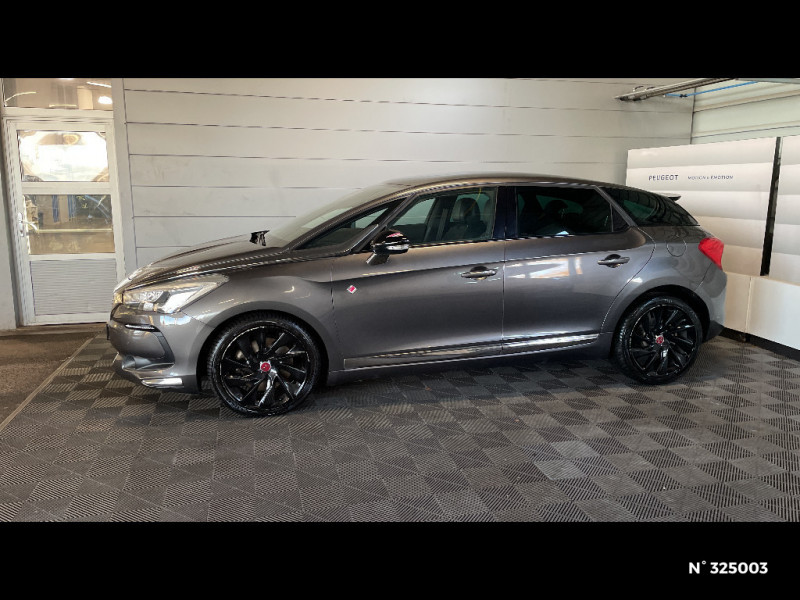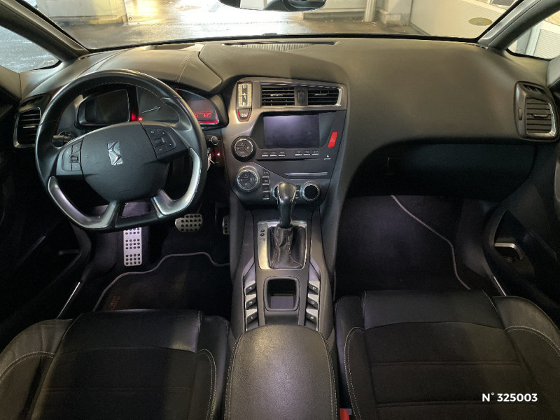 Personnalisation Performance Line intérieure : surpiqûres Performance Line surtapis performance Line / DS Connect Box avec Pack SOS et assistance inclus / Eclaireur de cave à pied / DS Connect Box avec Pack SOS et assistance inclus / Toit cockpit / Sabres chromés à l'AV / Prise 12 V en AR de la console centrale / Prise USB et prise Jack / Double canule d'échappement chromée / Personnalisation Performance Line extérieure : badges latéraux Performance Line, becquet avec adhésifs performance line, coques de rétroviseurs extérieurs avec adhésifs Performance Line, monogramme Performance Line sur le capot. / Mixte Cuir/Tissu Dinamica PERFORMANCE line / Eclairage d'accompagnement automatique / Montre spécifique PERFORMANCE line / Baguettes latérales chromées / Frein de stationnement électrique automatique / Lécheurs de vitres Noir Brillant / Bouclier AV avec insert chrome / DS Connect Nav / Pédalier et le repose-pied aluminium / Détection de sous-gonflage / Régulateur-limiteur de vitesse programmable / Signature lumineuse par guides de lumière AV et AR / Système audio CD bi-tuner RDS MP3 avec prise jack et prise USB / Combiné avec matrice monochrome / Poignées de portes couleur carrosserie / Rétroviseur intérieur électrochrome / Volant Cuir gainé main / ABS, REF, AFU / Montre Performance Line / Siège AV électrique simple conducteur / Mixte Cuir/Tissu Dinamica Performance Line / Contrôle de traction intelligent / DS Connect Nav Comprend le système de navigation TomTom sur tablette tactile 7'', la reconnaissance vocale et durant 3 ans le Pack DS Connect Nav / Pack Urbain / Kit de dépannage provisoire de pneumatiques / Allumage automatique des feux de détresse en cas de forte décélération / Témoin et alerte sonore de non-bouclage des ceintures de sécurité AV/AR / Banquette AR 2/3 - 1/3 permettant un plancher plat / Antenne radio sur pavillon / Projecteurs antibrouillard AV avec éclairage statique d'intersection / Jantes alliage 19" CAIRNS Noir brillant / Rétroviseurs extérieurs électriques dégivrants avec répétiteur de clignotant à LED / Mirror Screen / Seuils de portes en métal / Clignotants impulsionnels 3 coups / Indicateurs de direction défilants à LED