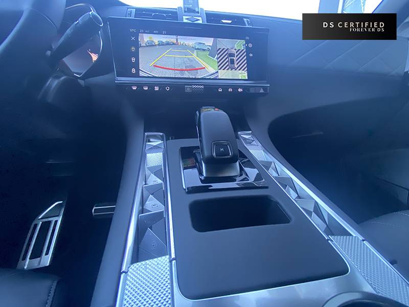 ABS avec répartiteur électronique de freinage (REF) et Aide au Freinage d'Urgence (AFU) + Aide au démarrage en pente / Accès et démarrage mains libres / Accoudoir central en Toile DS avec rangement / Aide au stationnement AV/AR et Caméra de recul / Airbags frontaux (passager déconnectable), latéraux AV, rideaux AV/AR / Alerte Attention Conducteur / Allumage automatique des feux Avec commutation automatique des feux de route / Badge DS chromé sur le capot / Centre de roue Noir brillant / Combiné numérique 12.3" HD / Contrôle dynamique de stabilité (ESP) avec antipatinage des roues (ASR) / Contrôle électronique de stabilité de l'attelage / Détection de sous-gonflage / Double antennes / DS IRIS SYSTEM Système d'infotainment personnalisable de dernière génération / DS PIXEL LED VISION 3.0 / DS Wings chromées / Eclairage d'accueil et d'accompagnement / Eclairage d'ambiance à LED / Eclairage de cave à pieds à LED / Ecran tactile capacitif 12'' HD / Entourage des vitres latérales chromé / Essuie-vitre AV à déclenchement et cadencement automatiques + Buses de lavage / Feux AR 3D (traitement écailles) Avec indicateur de changement de direction défilant / Fixations ISOFIX à la place passager AV et aux places latérales AR Inclut TOP TEATHER / Freinage d'urgence automatique piloté par caméra et radar / Frein de stationnement électrique automatique / Grille de calandre noir brillant avec pampilles chromées / Intérieur Cuir Noir Basalte / Jantes alliage 19'' EDINBURGH, pneus 235/50 R19 V / Jonc supérieur de volet Noir brillant avec lettrage 'DS AUTOMOBILES' chromé / Jonc sur jupe AR chromé / Kit de dépannage / Lève-vitres AV/AR électriques, séquentiels et avec fonction antipincement / Mirror Screen sans fil via Wifi Compatible Apple CarPlay et Android Auto / Monogrammes AR chromé / Montre rotative B.R.M. R180 / Navigation 3D Connectée Information trafic en temps réel, prix des carburants,parkings et Zones de Danger.3 ans inclus / Pare-brise teinté acoustique / Poignées extérieures couleur caisse avec insert chromé / Prédisposition Plancher modulable à 2 positions / Prises 12 V 1 prise dans le rangement AV de la console centrale et 1 prise dans le coffre / Prises USB 1 prise USB type C dans le rangement de la console centrale et 2 prises USB type A pour les passagers AR / Rétroviseur intérieur électrochrome sans cadre / Rétroviseurs extérieurs avec embase couleur caisse et coque noir brillant / Rétroviseurs extérieurs électriques dégivrants, rabattables électriquement Fonction électrochrome côté conducteur, Projection au sol du logo DS, Indexéà la marche AR côté passager / Sabot AV chromé / Seuil de coffre chromé / Seuils de portes Trame DS / Sièges AV électriques Réglage électrique du siège, réglage lombaire pneumatique, réglage mécanique du nez de coussin / SOS & Assistance Service inclus pendant 10 ans / Surtapis AV/AR / Surveillance d'angles morts / Vérins d'ouverture et de maintien du capot moteur