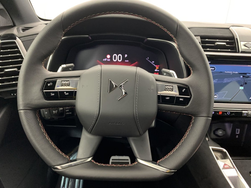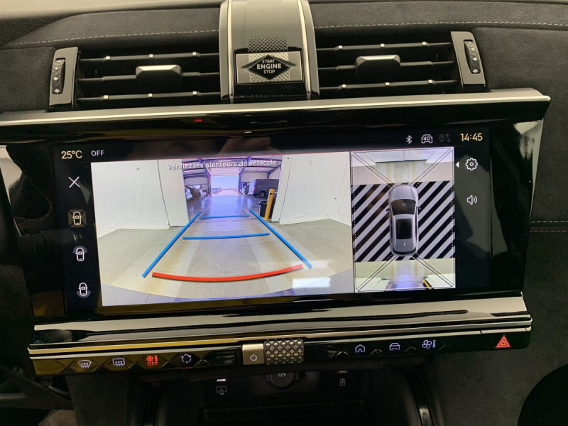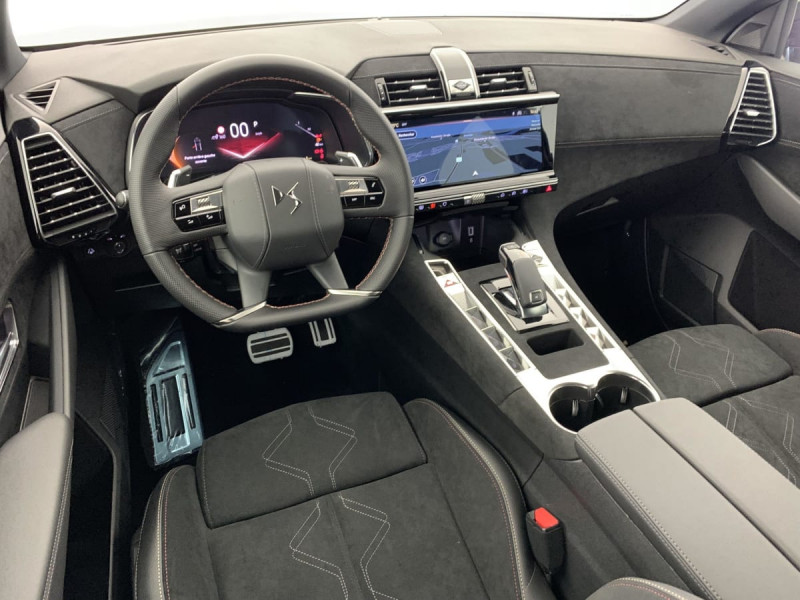 Allumage automatique des feux Avec commutation automatique des feux de route / Pédalier et le repose-pied aluminium / Détection de sous-gonflage / Frein de stationnement électrique automatique / Seuil de coffre chromé / Pare-brise chauffant / DS PIXEL LED VISION 3.0 / Alerte Attention Conducteur / Lève-vitres AV/AR électriques, séquentiels et avec fonction antipincement / Rétroviseur intérieur électrochrome sans cadre / Contrôle dynamique de stabilité (ESP) avec antipatinage des roues (ASR) / Vérins d'ouverture et de maintien du capot moteur / Surveillance d'angles morts / DS Wings noir brillant / Entourage des vitres latérales Noir Brillant / Feux AR 3D (traitement écailles) Avec indicateur de changement de direction défilant / Jonc supérieur de volet Noir brillant avec lettrage 'DS AUTOMOBILES' chromé / Freinage d'urgence automatique piloté par caméra et radar / ABS avec répartiteur électronique de freinage (REF) et Aide au Freinage d'Urgence (AFU) + Aide au démarrage en pente / Airbags frontaux (passager déconnectable), latéraux AV, rideaux AV/AR / Kit de dépannage / Pare-brise teinté acoustique / Rétroviseurs extérieurs électriques dégivrants, rabattables électriquement Fonction électrochrome côté conducteur, Projection au sol du logo DS, Indexéà la marche AR côté passager / Eclairage d'accueil et d'accompagnement / Grille de calandre noir brillant avec pampilles chromées / Jonc sur jupe AR chromé / Monogrammes AR chromé / Rétroviseurs extérieurs avec embase couleur caisse et coque noir brillant / Sabot AV chromé / Accoudoir central en Toile DS avec rangement / Eclairage d'ambiance à LED / Combiné numérique 12.3" HD / Double antennes / DS IRIS SYSTEM Système d'infotainment personnalisable de dernière génération / Mirror Screen sans fil via Wifi Compatible Apple CarPlay et Android Auto / Prises USB 1 prise USB type C dans le rangement de la console centrale et 2 prises USB type A pour les passagers AR / Prises 12 V 1 prise dans le rangement AV de la console centrale et 1 prise dans le coffre / Intérieur Alcantara Noir profond : Console centrale en Alcantara Noir Profond Panneaux de portes en Alcantara Noir Profond et surpiqûres Carmin et Or Planche de bord Alcantara Noir Profond et surpiqûres Carmin et Or Volant Cuir fleur perforé et coutures Carmin et Or Sièges Alcantara Noir Profond avec Toile DS / Essuie-vitre AV à déclenchement et cadencement automatiques + Buses de lavage / Centre de roue Noir brillant / Aide au stationnement AV et AR et Caméra de recul / Navigation 3D Connectée / Barres de toit noir brillant / Prédisposition Plancher modulable à 2 positions / Black Pack / Jantes alliage 19'' EDINBURGH, pneus 235/50 R19 V / Ciel de pavillon Sombre / Contrôle électronique de stabilité de l'attelage / Ecran tactile capacitif 12?? HD / Logo DS de calandre Chromé / Badge DS PALLAS spécifique sur le capot / Poignées extérieures couleur caisse / Sièges AV électriques avec mémorisation du siège conducteur / Accès et démarrage mains libres / Ceintures conducteur et passager à enrouleur pyrotechnique, réglage en hauteur avec limitation d'effort et prétension / Seuil de portes AV / Fixations ISOFIX aux places latérales AR Inclut TOP TEATHER / Boîte de vitesse automatique 8 vitesses / / Véhicules équivalents: X5, Q5