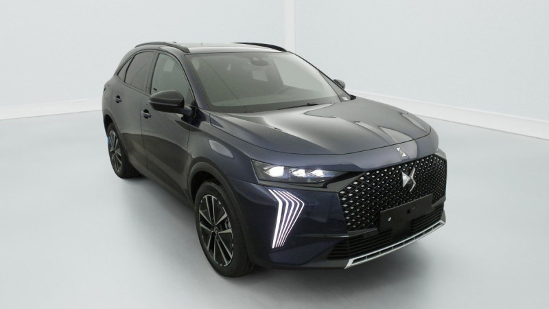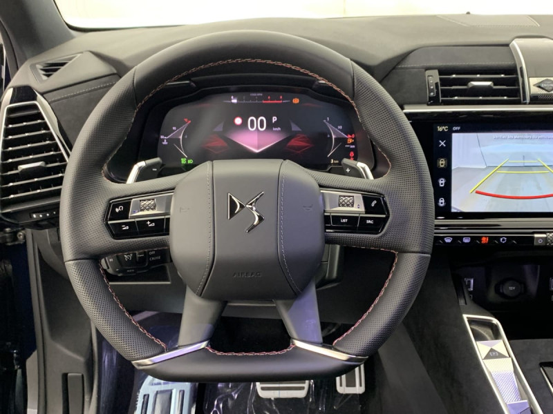 Allumage automatique des feux Avec commutation automatique des feux de route / Pédalier et le repose-pied aluminium / Détection de sous-gonflage / Frein de stationnement électrique automatique / Seuil de coffre chromé / Pare-brise chauffant / DS PIXEL LED VISION 3.0 / Alerte Attention Conducteur / Lève-vitres AV/AR électriques, séquentiels et avec fonction antipincement / Rétroviseur intérieur électrochrome sans cadre / Contrôle dynamique de stabilité (ESP) avec antipatinage des roues (ASR) / Vérins d'ouverture et de maintien du capot moteur / Surveillance d'angles morts / DS Wings noir brillant / Entourage des vitres latérales Noir Brillant / Feux AR 3D (traitement écailles) Avec indicateur de changement de direction défilant / Jonc supérieur de volet Noir brillant avec lettrage 'DS AUTOMOBILES' chromé / Freinage d'urgence automatique piloté par caméra et radar / ABS avec répartiteur électronique de freinage (REF) et Aide au Freinage d'Urgence (AFU) + Aide au démarrage en pente / Airbags frontaux (passager déconnectable), latéraux AV, rideaux AV/AR / Fixations ISOFIX à la place passager AV et aux places latérales AR Inclut TOP TEATHER / Kit de dépannage / Pare-brise teinté acoustique / Rétroviseurs extérieurs électriques dégivrants, rabattables électriquement Fonction électrochrome côté conducteur, Projection au sol du logo DS, Indexéà la marche AR côté passager / Eclairage d'accueil et d'accompagnement / Grille de calandre noir brillant avec pampilles chromées / Jonc sur jupe AR chromé / Monogrammes AR chromé / Rétroviseurs extérieurs avec embase couleur caisse et coque noir brillant / Sabot AV chromé / Accoudoir central en Toile DS avec rangement / Eclairage d'ambiance à LED / Combiné numérique 12.3" HD / Double antennes / DS IRIS SYSTEM Système d'infotainment personnalisable de dernière génération / Mirror Screen sans fil via Wifi Compatible Apple CarPlay et Android Auto / Navigation 3D Connectée Information trafic en temps réel, prix des carburants,parkings et Zones de Danger.3 ans inclus / Prises USB 1 prise USB type C dans le rangement de la console centrale et 2 prises USB type A pour les passagers AR / Prises 12 V 1 prise dans le rangement AV de la console centrale et 1 prise dans le coffre / Intérieur Alcantara Noir profond : Console centrale en Alcantara Noir Profond Panneaux de portes en Alcantara Noir Profond et surpiqûres Carmin et Or Planche de bord Alcantara Noir Profond et surpiqûres Carmin et Or Volant Cuir fleur perforé et coutures Carmin et Or Sièges Alcantara Noir Profond avec Toile DS / Essuie-vitre AV à déclenchement et cadencement automatiques + Buses de lavage / Centre de roue Noir brillant / Aide au stationnement AV et AR et Caméra de recul / Barres de toit noir brillant / Prédisposition Plancher modulable à 2 positions / Black Pack / Jantes alliage 19'' EDINBURGH, pneus 235/50 R19 V / Ciel de pavillon Sombre / Contrôle électronique de stabilité de l'attelage / Ecran tactile capacitif 12?? HD / Logo DS de calandre Chromé / Badge DS PALLAS spécifique sur le capot / Poignées extérieures couleur caisse / Sièges AV électriques avec mémorisation du siège conducteur / Accès et démarrage mains libres / Ceintures conducteur et passager à enrouleur pyrotechnique, réglage en hauteur avec limitation d'effort et prétension / Seuil de portes AV / / Véhicules équivalents: X5, Q5