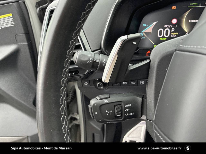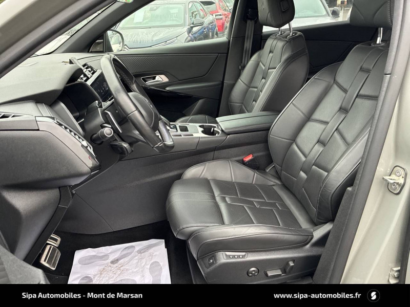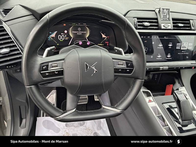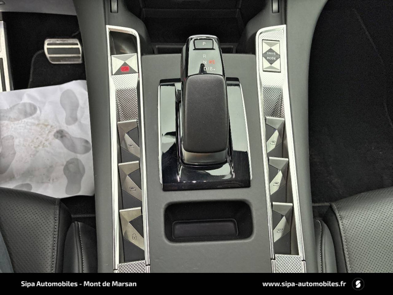 ABS avec répartiteur électronique de freinage (REF) et Aide au Freinage d'Urgence (AFU) + Aide au démarrage en pente / Accès et démarrage mains libres / Accoudoir central en Toile DS avec rangement / Aide au stationnement AV/AR et 360 Vision / Airbags frontaux (passager déconnectable), latéraux AV, rideaux AV/AR / Alarme avec supercondamnation des portes et sécurité enfant électrique / Alerte Attention Conducteur / Allumage automatique des feux Avec commutation automatique des feux de route / Badge DS PERFORMANCE spécifique sur le capot / Banquette AR électrique / Câble de recharge mode 2 standard 1,8 kW (8 A) / Câble de recharge mode 3 monophasé 7,4 kW / Centre de roue Noir brillant / Chargeur embarqué monophasé de 7,4 kW / Chargeur sans fil pour smartphone + 2 prises USB type C / Combiné numérique 12.3" HD / Contrôle dynamique de stabilité (ESP) avec antipatinage des roues (ASR) / Détection de sous-gonflage / Double antennes / Double canule d'échappement chromée / DS Active Scan Suspension / DS Drive Assist / DS driver attention monitoring / DS IRIS SYSTEM Système d'infotainment personnalisable de dernière génération / DS Night Vision / DS PIXEL LED VISION 3.0 / Eclairage d'accueil et d'accompagnement / Eclairage de cave à pieds à LED / Eclairage PolyAmbient / Ecran tactile capacitif 12,3'' HD / Essuie-vitre AV à déclenchement et cadencement automatiques + Buses de lavage / Feux AR 3D (traitement écailles) Avec indicateur de changement de direction défilant / Fixations ISOFIX à la place passager AV et aux places latérales AR Inclut TOP TEATHER / Freinage d'urgence automatique piloté par caméra et radar / Frein de stationnement électrique automatique / Grille de calandre noir brillant avec pampilles chromées / Hayon motorisé avec accès bras chargés / HiFi FOCAL Electra / Intérieur OPERA Gris Perle / Jonc supérieur de volet Noir brillant avec lettrage 'DS AUTOMOBILES' chromé / Jonc sur jupe AR chromé / Kit de dépannage / Lève-vitres AV/AR électriques, séquentiels et avec fonction antipincement / Mirror Screen sans fil via Wifi Compatible Apple CarPlay et Android Auto / Monogrammes AR noir brillant / Montre B.R.M. R180 / Navigation 3D Connectée Information trafic en temps réel, prix des carburants,parkings et Zones de Danger.3 ans inclus / Pack Black / Pack Drive Assist / Pack Sécurité Premium / Pack Vision / Pack Voyage / Pare-brise chauffant / Pare-brise teinté acoustique / Pédalier et le repose-pied aluminium / Poignées extérieures couleur caisse avec insert chromé / Préconditionnement thermique de l'habitacle programmable par smartphone Via MyDS App / Prédisposition Plancher modulable à 2 positions / Prises 12 V 1 prise dans le rangement AV de la console centrale et 1 prise dans le coffre / Prises USB 1 prise USB type C dans le rangement de la console centrale et 2 prises USB type A pour les passagers AR / Rétroviseur intérieur électrochrome sans cadre / Rétroviseurs extérieurs avec embase couleur caisse et coque noir brillant / Rétroviseurs extérieurs électriques dégivrants, rabattables électriquement Fonction électrochrome côté conducteur, Projection au sol du logo DS, Indexéà la marche AR côté passager / Sabot AV noir brillant / Seuil de coffre chromé / Seuils de portes en métal avec Trame DS / Sièges AV chauffants, massants et ventilés / Sièges AV électriques Réglage électrique du siège, réglage lombaire pneumatique, réglage mécanique du nez de coussin / SOS & Assistance Service inclus pendant 10 ans / Surtapis AV/AR / Surveillance d'angles morts / Teinte Caisse métallisée Bleu Saphir / Toit ouvrant panoramique électriquee Entrebaillant, Ouvrant, Occulteur motorisé / Vérins d'ouverture et de maintien du capot moteur / Vitres latérales feuilletées acoustiques