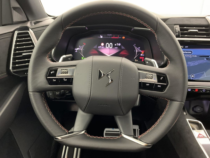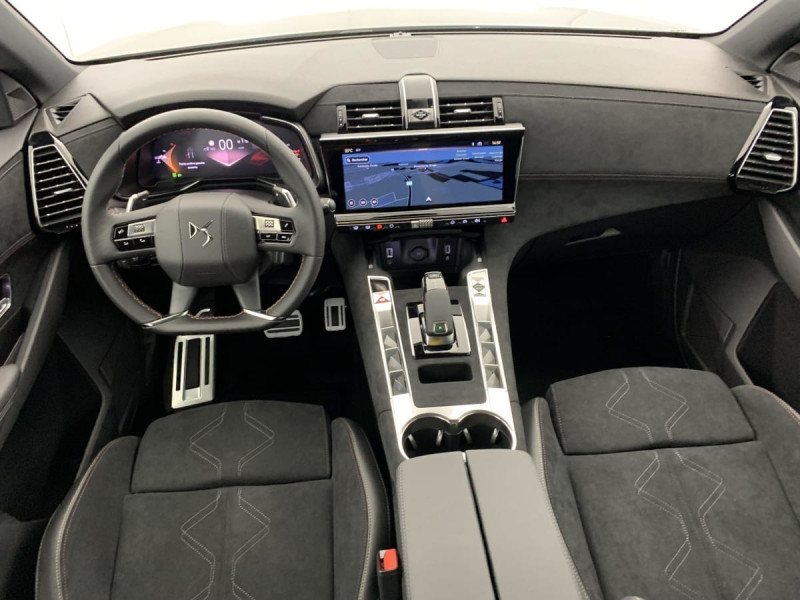 Allumage automatique des feux Avec commutation automatique des feux de route / Pédalier et le repose-pied aluminium / Détection de sous-gonflage / Frein de stationnement électrique automatique / Seuil de coffre chromé / Pare-brise chauffant / DS PIXEL LED VISION 3.0 / Alerte Attention Conducteur / Lève-vitres AV/AR électriques, séquentiels et avec fonction antipincement / Rétroviseur intérieur électrochrome sans cadre / Contrôle dynamique de stabilité (ESP) avec antipatinage des roues (ASR) / Vérins d'ouverture et de maintien du capot moteur / Surveillance d'angles morts / DS Wings noir brillant / Entourage des vitres latérales Noir Brillant / Feux AR 3D (traitement écailles) Avec indicateur de changement de direction défilant / Jonc supérieur de volet Noir brillant avec lettrage 'DS AUTOMOBILES' chromé / Freinage d'urgence automatique piloté par caméra et radar / ABS avec répartiteur électronique de freinage (REF) et Aide au Freinage d'Urgence (AFU) + Aide au démarrage en pente / Airbags frontaux (passager déconnectable), latéraux AV, rideaux AV/AR / Kit de dépannage / Pare-brise teinté acoustique / Rétroviseurs extérieurs électriques dégivrants, rabattables électriquement Fonction électrochrome côté conducteur, Projection au sol du logo DS, Indexéà la marche AR côté passager / Eclairage d'accueil et d'accompagnement / Grille de calandre noir brillant avec pampilles chromées / Jonc sur jupe AR chromé / Monogrammes AR chromé / Rétroviseurs extérieurs avec embase couleur caisse et coque noir brillant / Sabot AV chromé / Accoudoir central en Toile DS avec rangement / Eclairage d'ambiance à LED / Combiné numérique 12.3" HD / Double antennes / DS IRIS SYSTEM Système d'infotainment personnalisable de dernière génération / Mirror Screen sans fil via Wifi Compatible Apple CarPlay et Android Auto / Prises USB 1 prise USB type C dans le rangement de la console centrale et 2 prises USB type A pour les passagers AR / Prises 12 V 1 prise dans le rangement AV de la console centrale et 1 prise dans le coffre / Intérieur Alcantara Noir profond : Console centrale en Alcantara Noir Profond Panneaux de portes en Alcantara Noir Profond et surpiqûres Carmin et Or Planche de bord Alcantara Noir Profond et surpiqûres Carmin et Or Volant Cuir fleur perforé et coutures Carmin et Or Sièges Alcantara Noir Profond avec Toile DS / Essuie-vitre AV à déclenchement et cadencement automatiques + Buses de lavage / Centre de roue Noir brillant / Aide au stationnement AV et AR et Caméra de recul / Navigation 3D Connectée / Barres de toit noir brillant / Prédisposition Plancher modulable à 2 positions / Black Pack / Jantes alliage 19'' EDINBURGH, pneus 235/50 R19 V / Ciel de pavillon Sombre / Contrôle électronique de stabilité de l'attelage / Ecran tactile capacitif 12?? HD / Logo DS de calandre Chromé / Badge DS PALLAS spécifique sur le capot / Poignées extérieures couleur caisse / Sièges AV électriques avec mémorisation du siège conducteur / Accès et démarrage mains libres / Ceintures conducteur et passager à enrouleur pyrotechnique, réglage en hauteur avec limitation d'effort et prétension / Seuil de portes AV / Fixations ISOFIX aux places latérales AR Inclut TOP TEATHER / Boîte de vitesse automatique 8 vitesses / / Véhicules équivalents: X5, Q5