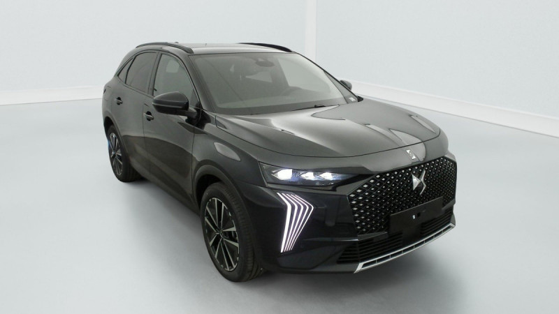 Allumage automatique des feux Avec commutation automatique des feux de route / Pédalier et le repose-pied aluminium / Détection de sous-gonflage / Frein de stationnement électrique automatique / Seuil de coffre chromé / Pare-brise chauffant / DS PIXEL LED VISION 3.0 / Alerte Attention Conducteur / Lève-vitres AV/AR électriques, séquentiels et avec fonction antipincement / Rétroviseur intérieur électrochrome sans cadre / Contrôle dynamique de stabilité (ESP) avec antipatinage des roues (ASR) / Vérins d'ouverture et de maintien du capot moteur / Surveillance d'angles morts / DS Wings noir brillant / Entourage des vitres latérales Noir Brillant / Feux AR 3D (traitement écailles) Avec indicateur de changement de direction défilant / Jonc supérieur de volet Noir brillant avec lettrage 'DS AUTOMOBILES' chromé / Freinage d'urgence automatique piloté par caméra et radar / ABS avec répartiteur électronique de freinage (REF) et Aide au Freinage d'Urgence (AFU) + Aide au démarrage en pente / Airbags frontaux (passager déconnectable), latéraux AV, rideaux AV/AR / Fixations ISOFIX à la place passager AV et aux places latérales AR Inclut TOP TEATHER / Kit de dépannage / Pare-brise teinté acoustique / Rétroviseurs extérieurs électriques dégivrants, rabattables électriquement Fonction électrochrome côté conducteur, Projection au sol du logo DS, Indexéà la marche AR côté passager / Eclairage d'accueil et d'accompagnement / Grille de calandre noir brillant avec pampilles chromées / Jonc sur jupe AR chromé / Monogrammes AR chromé / Rétroviseurs extérieurs avec embase couleur caisse et coque noir brillant / Sabot AV chromé / Accoudoir central en Toile DS avec rangement / Eclairage d'ambiance à LED / Combiné numérique 12.3" HD / Double antennes / DS IRIS SYSTEM Système d'infotainment personnalisable de dernière génération / Mirror Screen sans fil via Wifi Compatible Apple CarPlay et Android Auto / Navigation 3D Connectée Information trafic en temps réel, prix des carburants,parkings et Zones de Danger.3 ans inclus / Prises USB 1 prise USB type C dans le rangement de la console centrale et 2 prises USB type A pour les passagers AR / Prises 12 V 1 prise dans le rangement AV de la console centrale et 1 prise dans le coffre / Intérieur Alcantara Noir profond : Console centrale en Alcantara Noir Profond Panneaux de portes en Alcantara Noir Profond et surpiqûres Carmin et Or Planche de bord Alcantara Noir Profond et surpiqûres Carmin et Or Volant Cuir fleur perforé et coutures Carmin et Or Sièges Alcantara Noir Profond avec Toile DS / Essuie-vitre AV à déclenchement et cadencement automatiques + Buses de lavage / Centre de roue Noir brillant / Aide au stationnement AV et AR et Caméra de recul / Barres de toit noir brillant / Prédisposition Plancher modulable à 2 positions / Black Pack / Jantes alliage 19'' EDINBURGH, pneus 235/50 R19 V / Ciel de pavillon Sombre / Contrôle électronique de stabilité de l'attelage / Ecran tactile capacitif 12?? HD / Logo DS de calandre Chromé / Badge DS PALLAS spécifique sur le capot / Poignées extérieures couleur caisse / Sièges AV électriques avec mémorisation du siège conducteur / Accès et démarrage mains libres / Ceintures conducteur et passager à enrouleur pyrotechnique, réglage en hauteur avec limitation d'effort et prétension / Seuil de portes AV / / Véhicules équivalents: X5, Q5