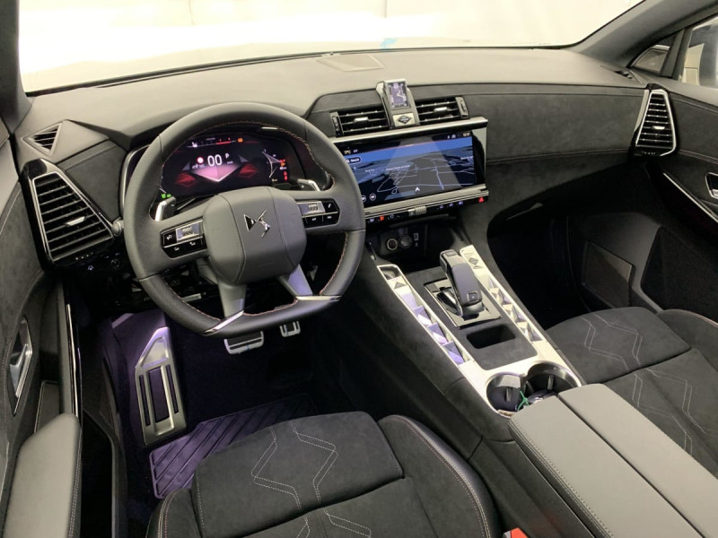 Allumage automatique des feux Avec commutation automatique des feux de route / Pédalier et le repose-pied aluminium / Détection de sous-gonflage / Frein de stationnement électrique automatique / Seuil de coffre chromé / Pare-brise chauffant / DS PIXEL LED VISION 3.0 / Alerte Attention Conducteur / Lève-vitres AV/AR électriques, séquentiels et avec fonction antipincement / Rétroviseur intérieur électrochrome sans cadre / Contrôle dynamique de stabilité (ESP) avec antipatinage des roues (ASR) / Vérins d'ouverture et de maintien du capot moteur / Surveillance d'angles morts / DS Wings noir brillant / Entourage des vitres latérales Noir Brillant / Feux AR 3D (traitement écailles) Avec indicateur de changement de direction défilant / Jonc supérieur de volet Noir brillant avec lettrage 'DS AUTOMOBILES' chromé / Freinage d'urgence automatique piloté par caméra et radar / ABS avec répartiteur électronique de freinage (REF) et Aide au Freinage d'Urgence (AFU) + Aide au démarrage en pente / Airbags frontaux (passager déconnectable), latéraux AV, rideaux AV/AR / Fixations ISOFIX à la place passager AV et aux places latérales AR Inclut TOP TEATHER / Kit de dépannage / Pare-brise teinté acoustique / Rétroviseurs extérieurs électriques dégivrants, rabattables électriquement Fonction électrochrome côté conducteur, Projection au sol du logo DS, Indexéà la marche AR côté passager / Eclairage d'accueil et d'accompagnement / Grille de calandre noir brillant avec pampilles chromées / Jonc sur jupe AR chromé / Monogrammes AR chromé / Rétroviseurs extérieurs avec embase couleur caisse et coque noir brillant / Sabot AV chromé / Accoudoir central en Toile DS avec rangement / Eclairage d'ambiance à LED / Combiné numérique 12.3" HD / Double antennes / DS IRIS SYSTEM Système d'infotainment personnalisable de dernière génération / Mirror Screen sans fil via Wifi Compatible Apple CarPlay et Android Auto / Navigation 3D Connectée Information trafic en temps réel, prix des carburants,parkings et Zones de Danger.3 ans inclus / Prises USB 1 prise USB type C dans le rangement de la console centrale et 2 prises USB type A pour les passagers AR / Prises 12 V 1 prise dans le rangement AV de la console centrale et 1 prise dans le coffre / Intérieur Alcantara Noir profond : Console centrale en Alcantara Noir Profond Panneaux de portes en Alcantara Noir Profond et surpiqûres Carmin et Or Planche de bord Alcantara Noir Profond et surpiqûres Carmin et Or Volant Cuir fleur perforé et coutures Carmin et Or Sièges Alcantara Noir Profond avec Toile DS / Essuie-vitre AV à déclenchement et cadencement automatiques + Buses de lavage / Centre de roue Noir brillant / Aide au stationnement AV et AR et Caméra de recul / Barres de toit noir brillant / Prédisposition Plancher modulable à 2 positions / Black Pack / Jantes alliage 19'' EDINBURGH, pneus 235/50 R19 V / Ciel de pavillon Sombre / Contrôle électronique de stabilité de l'attelage / Ecran tactile capacitif 12?? HD / Logo DS de calandre Chromé / Badge DS PALLAS spécifique sur le capot / Poignées extérieures couleur caisse / Sièges AV électriques avec mémorisation du siège conducteur / Accès et démarrage mains libres / Ceintures conducteur et passager à enrouleur pyrotechnique, réglage en hauteur avec limitation d'effort et prétension / Seuil de portes AV / / Véhicules équivalents: X5, Q5