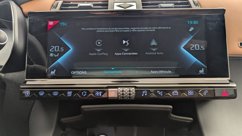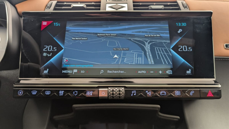 Essuie-vitre AV à déclenchement et cadencement automatiques / Détection de sous-gonflage / Kit de dépannage provisoire de pneumatiques / Eclairage d'accompagnement automatique / Entourage des vitres latérales chromé / Frein de stationnement électrique automatique / Accès et démarrage mains libres / Double canule d'échappement chromée / Mirror Screen / Planche de coffre avec zone de rangement intégrée pour le câble de recharge / Allumage automatique des feux de détresse en cas de forte décélération / Contrôle de traction intelligent / Témoin et alerte sonore de non-bouclage des ceintures de sécurité AV/AR / Clignotants impulsionnels 3 coups / Avertisseur bi-ton / Chargeur sans fil / Reconnaissance vocale / Jonc sur volet et bouclier AR chromé / Sabot AV finition Gris Aluminium / Aumônières de dos sur les sièges AV / Eclairage d'accueil automatique / Prise USB Data à l'AV / Aide au stationnement AV et AR avec Caméra de recul / Combiné numérique 12" / Eclairage d'ambiance intégral à LED / Montre B.R.M. R180 / Pack Modularité : Seuil de coffre chromé Prise 12 V Plancher de coffre modulable à 2 positions Rangements latéraux dans le coffre / Pack Sièges Electriques : Fonction mémoire et réglages lombaire côté conducteur Appuie-tête à réglages intégrés Banquette AR inclinable électriquement avec accoudoir Siège AV électrique conducteur Siège passager AV électrique / Pédalier et le repose-pied aluminium / Alerte Attention Conducteur / Climatisation avec aérateurs aux places AR / Eclairage à LED / Filtre à pollen / Volant Cuir gainé main avec commandes intégrées / Système audio Analogique à 8 HP avec prise USB et Bluetooth / Verrouillage automatique des portes en roulant / Prises USB x2 aux places AR / Airbags frontaux aux places AV avec désactivation par clé de l'airbag passager / Lève-vitres AV/AR électriques, séquentiels et avec fonction antipincement / DS ACTIVE LED VISION Comprend les projecteurs directionnels, les clignotants défilants à LED ainsi que 6 modes d?éclairages / Contrôle dynamique de stabilité (ESP) avec antipatinage des roues (ASR) / Crochet d'arrimage dans le coffre au dessus du plancher de coffre x4 / Pare-soleil rembourrés avec éclairage à LED / Commutation automatique des feux de route / Ecran tactile 12" avec menu spécifique E-TENSE / Airbags latéraux de type "thorax" aux places AV / Banquette AR 2/3 - 1/3 avec 3 appuie-tête / Sièges AV avec réglages lombaires électriques / SOS / Chargeur embarqué de 7,4 kW / ABS avec répartiteur électronique de freinage (REF) et Aide au Freinage d'Urgence (AFU) / Feux AR 3D (traitement écailles) Avec indicateur de changement de direction défilant / Pack Sécurité Etendue avec freinage d?urgence automatique : Alerte Attention Conducteur par caméra Reconnaissance étendue des panneaux de circulation Surveillance Active d'Angle Mort / Câble de recharge mode 2 standard 1,8 kW (8 A) / NAVIGATION avec radio numérique / Vitres AV et AR surteintées et feuilletées / / Véhicules équivalents: X5, Q5