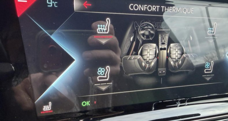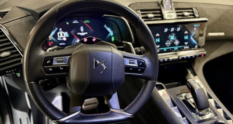 ======= OPTIONS ======= Climatisation automatique bi-zone étendue, avec fonction REST, 3 modes de débit d'air avec commandes DS Active LED vision Eclairage d'ambiance personnalisé Freinage d'urgence automatique jusqu'à 140 km h avec Pack Sécurité Etendue et DS CONNECTED PILOT + DS ACTIVE LED VISION HiFi System FOCAL Electra Montre B.R.M. R180 Pack DS Night Vision Pack DS Urban Pack Easy Access Pack Sécurité Etendue Pack sièges électriques Sièges avant chauffants et pare-brise chauffant Toit ouvrant panoramique électrique avec occulteur motorisé associé ======= EQUIPEMENTS DE SERIE ======= Sièges avant ventilés Câble mode 2 monophasé 1,8kW (8A) pour recharge sur prise standard de série DS Active scan suspension Ecran tactile 12 Intérieur Alcantara Noir Pack Auto Confort Pack Sécurité Panneaux de porte en Alcantara Planche de bord en Alcantara Sabot avant finition Gris Aluminium SOS & ASSISTANCE Système de freinage régénératif Nb. Vitesses : 8 Conso Mixte : l/100