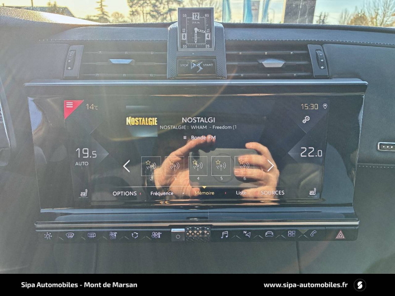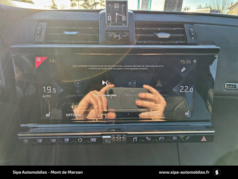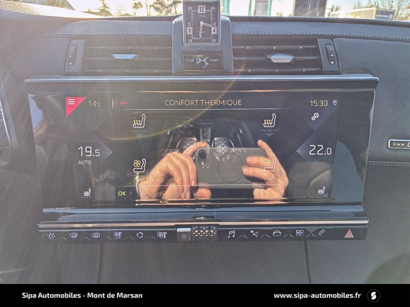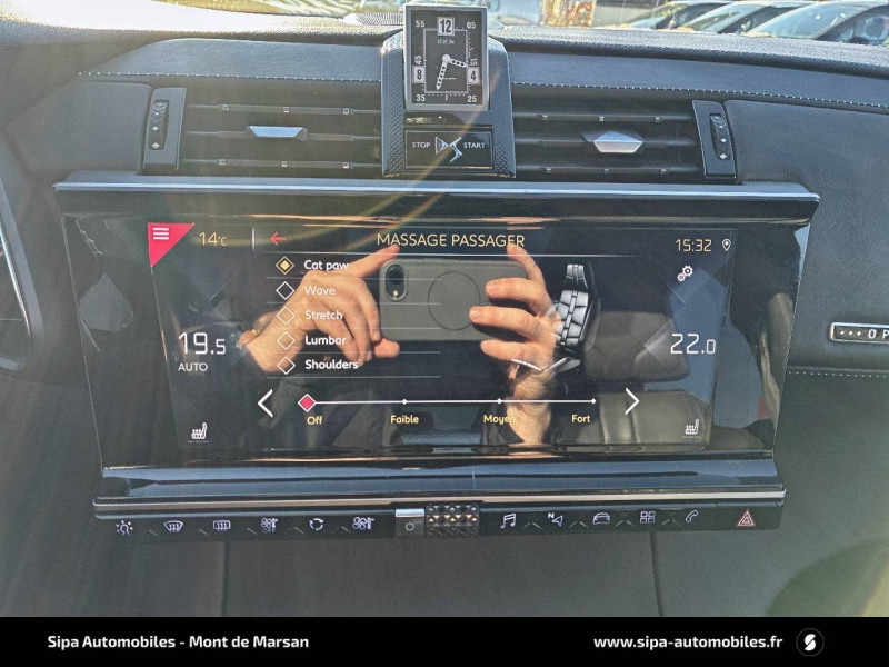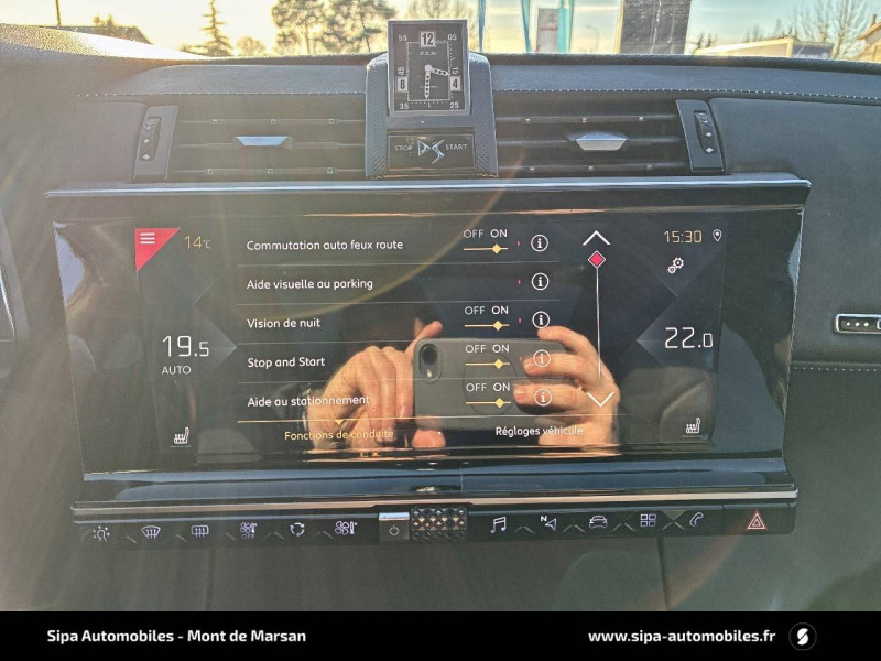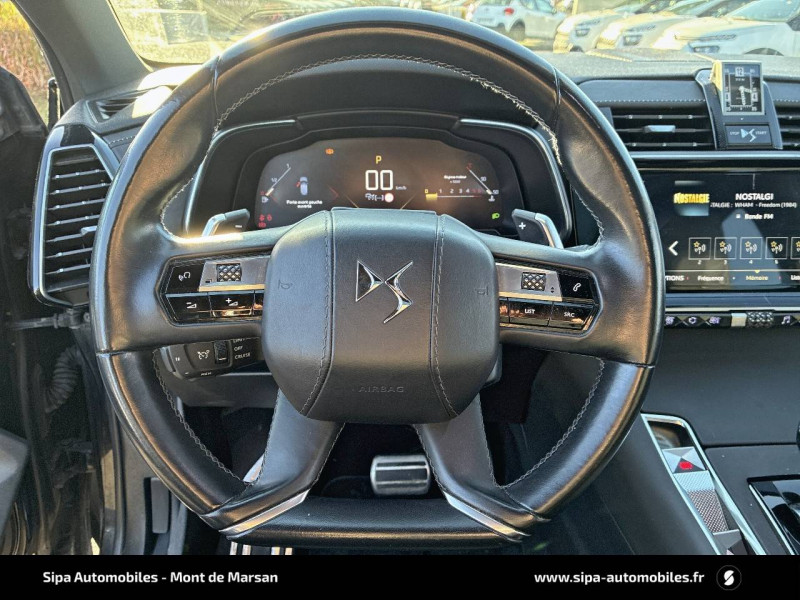ABS, AFU, ESP, REF / Accès et démarrage mains libres / Aide au stationnement AV et AR avec Caméra de recul / Airbags frontaux, latéraux et rideaux aux places AV et rideaux aux places AR / Antenne radio intégrée dans la lunette AR / Aumônières de dos sur les sièges AV / Avertisseur bi-ton / Banquette AR 2/3 - 1/3 permettant un plancher plat / Chargeur sans fil / Combiné numérique 12" / Contrôle de traction intelligent / Contrôle dynamique de stabilité (ESP) avec antipatinage des roues (ASR) / Coques de rétroviseurs extérieurs Noir Perla Nera / Crochet d'arrimage dans le coffre au dessus du plancher de coffre x4 / Détection de sous-gonflage / Double canule d'échappement chromée / DS ACTIVE LED VISION / DS ACTIVE SCAN SUSPENSION Système de suspension pilotée par caméra / DS Connect Box / DS CONNECT NAV / DS Wings chromées / Eclairage à LED / Eclairage d'accueil à l'ouverture du véhicule / Eclairage d'ambiance intégral à LED / Eclairage PolyAmbient / Entourage des vitres latérales chromé / Filtre à odeurs avec charbon actif / Filtre à pollen / Fixations ISOFIX à la place passager AV et aux places latérales AR / Frein de stationnement électrique / Garnissage en Cuir grainé Noir Basalte / Guide utilisateur numérique / Indicateur de changement de rapport / Inspiration DS RIVOLI Noir Basalte / Kit de dépannage provisoire de pneumatiques / Lève-vitres AV et AR électriques avec fonction antipincement / Mirror Screen / Montre B.R.M. R180 / Ouverture et fermeture des vitres à distance / Pack Easy Access / Pack Modularité / Pack Sécurité Etendue avec freinage d'urgence automatique / Pare-brise teinté et acoustique / Pare-soleil rembourrés avec éclairage à LED / Pédalier et le repose-pied aluminium / Pieds de rétroviseurs extérieurs couleur carrosserie / Planche de bord en Cuir Nappa / Plancher modulable à 2 positions avec rangements amovibles / Poignées de portes couleur carrosserie / Prises USB x2 aux places AR / Reconnaissance vocale / Rétroviseur intérieur électrochrome sans cadre / Rétroviseurs extérieurs électriques dégivrants avec sonde de température et répétiteurs de clignotants à LED / Rétroviseurs extérieurs rabattables électriquement et indexés à la marche AR avec projection au sol du logo DS / Sangle de coffre / Seuils de portes en métal avec Trame DS / Siège conducteur électrique avec mémorisation de position de conduite / Surtapis AV/AR / Système audio Analogique à 8 HP avec prise USB et Bluetooth / Système sonore polyphonique / Témoin et alerte sonore de non-bouclage des ceintures de sécurité AV/AR / Vérins d'ouverture et de maintien du capot moteur / Verrouillage automatique des portes en roulant / Vitres latérales AV et AR surteintées et feuilletées / Volant Cuir gainé main avec commandes intégrées