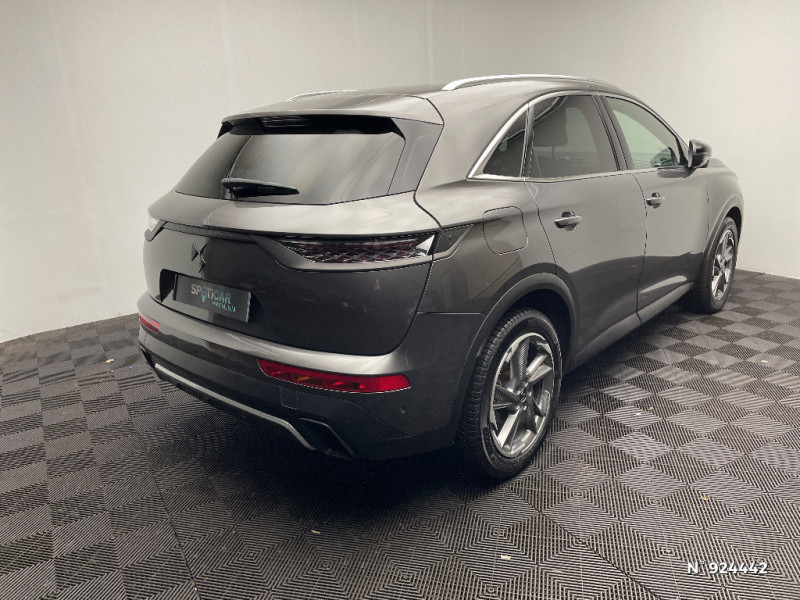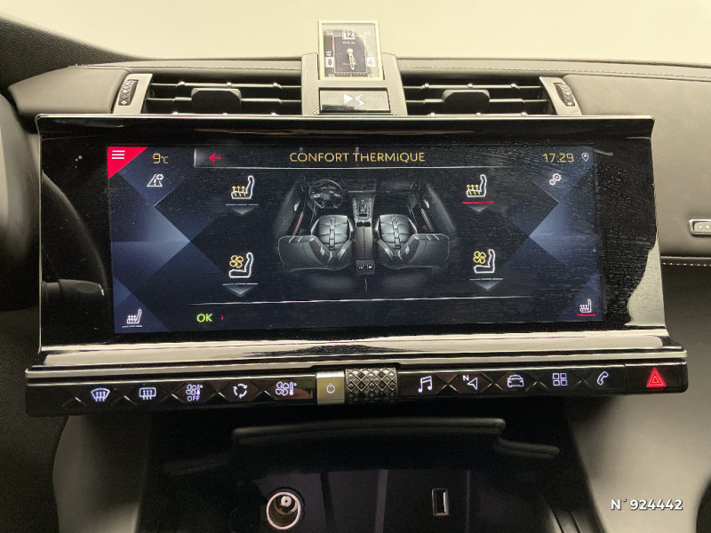 Crochet d'arrimage dans le coffre au dessus du plancher de coffre x4 / Pare-soleil rembourrés avec éclairage à LED / Sangle de coffre / Contrôle dynamique de stabilité (ESP) avec antipatinage des roues (ASR) / Guide utilisateur numérique / Vérins d'ouverture et de maintien du capot moteur / DS Wings Chromé / Contrôle de traction intelligent / Antenne radio intégrée dans la lunette AR / Poignées de portes couleur carrosserie / Avertisseur bi-ton / Reconnaissance vocale / Système sonore polyphonique / Pieds de rétroviseurs extérieurs couleur carrosserie / Témoin et alerte sonore de non-bouclage des ceintures de sécurité AV et AR / Banquette AR 2/3 - 1/3 permettant un plancher plat / Aumônières de dos sur les sièges AV / Ouverture et fermeture des vitres à distance / Siège conducteur électrique avec mémorisation de position de conduite / Rétroviseur intérieur électrochrome sans cadre / Rétroviseurs extérieurs rabattables électriquement et indexés à la marche AR avec projection au sol du logo DS / Eclairage d'ambiance intégral à LED / Eclairage PolyAmbient / Montre B.R.M. R180 / Pack Modularité / Pédalier et le repose-pied aluminium / Surtapis AV et AR / Pack Sécurité Etendue avec freinage d'urgence automatique / DS ACTIVE LED VISION / Vitres latérales AV et AR surteintées et feuilletées / Inspiration DS RIVOLI Noir Basalte / Aide au stationnement AV et AR avec Caméra de recul / Chargeur sans fil / Combiné numérique 12" / DS CONNECT NAV / Pack Easy Access / Coques de rétroviseurs extérieurs Noir Perla Nera / ABS, AFU, ESP, REF / Accès et démarrage mains libres / Double canule d'échappement chromée / Garnissage en Cuir grainé Noir Basalte / Planche de bord en cuir Nappa / Seuils de portes en métal avec Trame DS / Plancher modulable à 2 positions avec rangements amovibles / Rétroviseurs extérieurs indexés à la marche AR et à mémoire de position / DS ACTIVE SCAN SUSPENSION Système de suspension pilotée par caméra / Fixations ISOFIX à la place passager et aux places latérales AR / Frein de stationnement électrique / Indicateur de changement de rapport / Entourage chromé des vitres latérales / Démarrage Mains-Libres avec décor Trame DS sur la clé / Volant Cuir gainé main avec commandes intégrées / Lève-vitres AV et AR électriques avec fonction antipincement / Pare-brise teinté et acoustique / Rétroviseurs extérieurs électriques dégivrants avec sonde de température et répétiteurs de clignotants à LED / Système audio Analogique à 8 HP avec prise USB et Bluetooth / Verrouillage automatique des portes en roulant / Filtre à odeurs avec charbon actif / Prises USB x2 aux places AR / Airbags frontaux, latéraux et rideaux aux places AV et rideaux aux places AR / DS Connect Box / Eclairage à LED / Eclairage d'accueil à l'ouverture du véhicule / Filtre à pollen / Détection de sous-gonflage / Kit de dépannage provisoire de pneumatiques / Mirror Screen