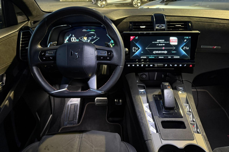 ABS avec répartiteur électronique de freinage (REF) / Alerte Active de Franchissement Involontaire de Ligne (AAFIL) / Alerte attention conducteur / Chargeur embarqué 7,4kW / Combiné numérique 12" / Contrôle de Traction Intelligent / Contrôle dynamique de stabilité (ESP) avec antipatinage des roues (ASR) / Détecteur de sous-gonflage / DS Active scan suspension / Frein de stationnement électrique automatique / Kit de dépannage provisoire de pneumatiques / Lève-vitres électriques avant et arrière, séquentiels et antipincement / Menu spécifique E-TENSE / Ouverture et fermeture à distance des vitres / Pack Sécurité / Préchauffage du véhicule depuis un smartphone ou bien depuis l'écran tactile 12" / Reconnaissance vocale / Rétroviseur intérieur électrochrome sans contour / Siège passager avec réglage lombaire électrique / Système Audio Analogique à 8 HP avec prise USB et Bluetooth / Système sonore polyphonique / Verrouillage automatique des portes en roulant / Vitres latérales avant et arrière surteintées et feuilletées