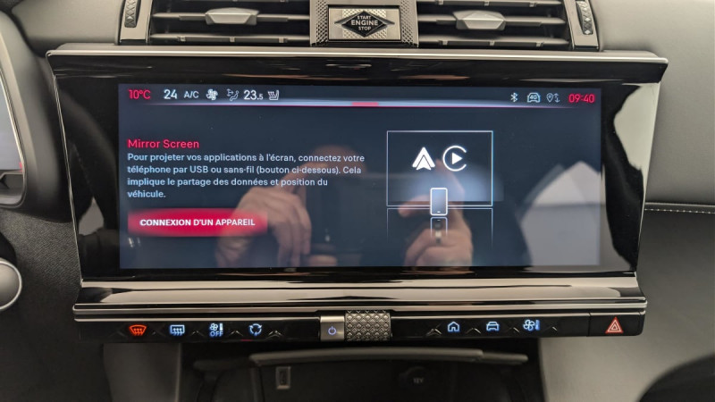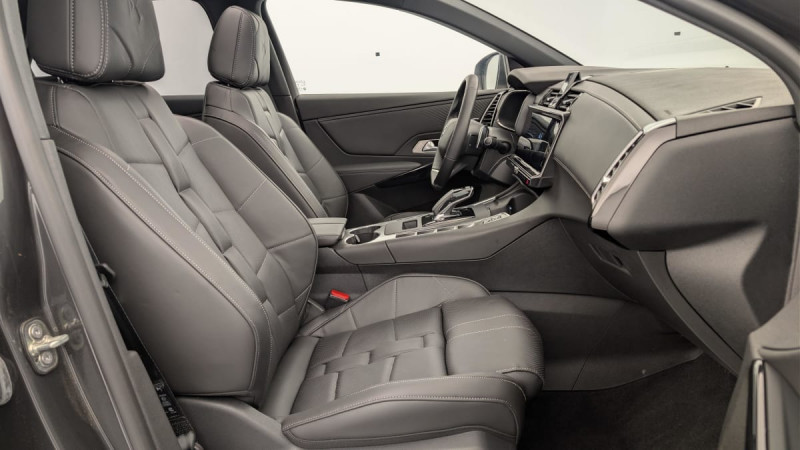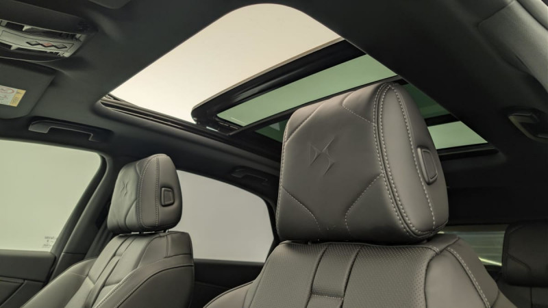 Allumage automatique des feux Avec commutation automatique des feux de route / Pédalier et le repose-pied aluminium / Détection de sous-gonflage / Entourage des vitres latérales chromé / Frein de stationnement électrique automatique / Double canule d'échappement chromée / Accès et démarrage mains libres / Seuil de coffre chromé / DS Active Scan Suspension / DS PIXEL LED VISION 3.0 / Alerte Attention Conducteur / Hayon motorisé avec Accès Bras Chargés / Lève-vitres AV/AR électriques, séquentiels et avec fonction antipincement / Rétroviseur intérieur électrochrome sans cadre / Contrôle dynamique de stabilité (ESP) avec antipatinage des roues (ASR) / Vérins d'ouverture et de maintien du capot moteur / Surveillance d'angles morts / DS Drive Assist / Feux AR 3D (traitement écailles) Avec indicateur de changement de direction défilant / Eclairage PolyAmbient / Câble de recharge mode 2 standard 1,8 kW (8 A) / Freinage d'urgence automatique piloté par caméra et radar / ABS avec répartiteur électronique de freinage (REF) et Aide au Freinage d'Urgence (AFU) + Aide au démarrage en pente / Airbags frontaux (passager déconnectable), latéraux AV, rideaux AV/AR / Fixations ISOFIX à la place passager AV et aux places latérales AR Inclut TOP TEATHER / Kit de dépannage / Pare-brise teinté acoustique / Rétroviseurs extérieurs électriques dégivrants, rabattables électriquement Fonction électrochrome côté conducteur, Projection au sol du logo DS, Indexéà la marche AR côté passager / Aide au stationnement AV/AR et Caméra de recul / Eclairage d'accueil et d'accompagnement / Toit ouvrant panoramique électriquee Entrebaillant, Ouvrant, Occulteur motorisé / Vitres latérales feuilletées acoustiques / Grille de calandre noir brillant avec pampilles chromées / Poignées extérieures couleur caisse avec insert chromé / Rétroviseurs extérieurs avec embase couleur caisse et coque noir brillant / Sabot AV chromé / Accoudoir central en Toile DS avec rangement / Eclairage de cave à pieds à LED / Combiné numérique 12.3" HD / DS IRIS SYSTEM Système d'infotainment personnalisable de dernière génération / Mirror Screen sans fil via Wifi Compatible Apple CarPlay et Android Auto / Navigation 3D Connectée Information trafic / Prises USB 1 prise USB type C dans le rangement de la console centrale et 2 prises USB type A pour les passagers AR / Prises 12 V 1 prise dans le rangement AV de la console centrale et 1 prise dans le coffre / Chargeur embarqué monophasé de 3,7 kW / Essuie-vitre AV à déclenchement et cadencement automatiques + Buses de lavage / Sièges AV électriques Réglage électrique du siège, réglage lombaire pneumatique, réglage mécanique du nez de coussin / Jantes alliage 19'' EDINBURGH, pneus 235/50 R19 V / Montre rotative B.R.M. R180 / Climatisation automatique bizone étendue avec tableau de commandes aux places AR et filtre anti-allergènes / SOS & Assistance / Contrôle électronique de stabilité de l'attelage / / Véhicules équivalents: X5, Q5