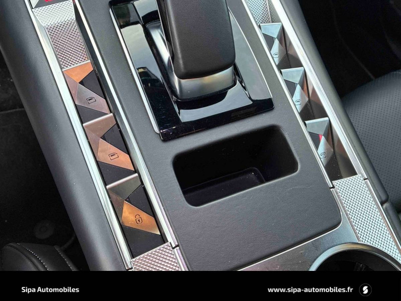 ABS avec répartiteur électronique de freinage (REF) et Aide au Freinage d'Urgence (AFU) + Aide au démarrage en pente / Accès et démarrage mains libres / Accoudoir central en Toile DS avec rangement / Aide au stationnement AV/AR et Caméra de recul / Airbags frontaux (passager déconnectable), latéraux AV, rideaux AV/AR / Alerte Attention Conducteur / Allumage automatique des feux Avec commutation automatique des feux de route / Badge DS chromé sur le capot / Banquette AR électrique / Câble de recharge mode 2 standard 1,8 kW (8 A) / Centre de roue Noir brillant / Chargeur embarqué monophasé de 3,7 kW / Chargeur sans fil pour smartphone + 2 prises USB type C / Climatisation automatique bizone étendue avec tableau de commandes aux places AR et filtre anti-allergènes / Combiné numérique 12.3" HD / Contrôle dynamique de stabilité (ESP) avec antipatinage des roues (ASR) / Détection de sous-gonflage / Double antennes / Double canule d'échappement chromée / DS Active Scan Suspension / DS Drive Assist / DS IRIS SYSTEM Système d'infotainment personnalisable de dernière génération / DS PIXEL LED VISION 3.0 / DS Wings chromées / Eclairage d'accueil et d'accompagnement / Eclairage de cave à pieds à LED / Eclairage PolyAmbient / Ecran tactile capacitif 12,3'' HD / Entourage des vitres latérales chromé / Essuie-vitre AV à déclenchement et cadencement automatiques + Buses de lavage / Feux AR 3D (traitement écailles) Avec indicateur de changement de direction défilant / Fixations ISOFIX à la place passager AV et aux places latérales AR Inclut TOP TEATHER / Freinage d'urgence automatique piloté par caméra et radar / Frein de stationnement électrique automatique / Grille de calandre noir brillant avec pampilles chromées / Hayon motorisé avec accès bras chargés / Jantes alliage 19'' EDINBURGH, pneus 235/50 R19 V / Jonc supérieur de volet Noir brillant avec lettrage 'DS AUTOMOBILES' chromé / Jonc sur jupe AR chromé / Kit de dépannage / Lève-vitres AV/AR électriques, séquentiels et avec fonction antipincement / Mirror Screen sans fil via Wifi Compatible Apple CarPlay et Android Auto / Monogrammes AR chromé / Montre rotative B.R.M. R180 / Navigation 3D Connectée Information trafic en temps réel, prix des carburants,parkings et Zones de Danger.3 ans inclus / Pare-brise chauffant / Pare-brise teinté acoustique / Pédalier et le repose-pied aluminium / Poignées extérieures couleur caisse avec insert chromé / Préconditionnement thermique de l'habitacle programmable par smartphone Via MyDS App / Prédisposition Plancher modulable à 2 positions / Prises 12 V 1 prise dans le rangement AV de la console centrale et 1 prise dans le coffre / Prises USB 2 prises USB type C dans le rangement de la console centrale et 2 prises USB type A pour les passagers AR / Rétroviseur intérieur électrochrome sans cadre / Rétroviseurs extérieurs avec embase couleur caisse et coque noir brillant / Rétroviseurs extérieurs électriques dégivrants, rabattables électriquement Fonction électrochrome côté conducteur, Projection au sol du logo DS, Indexéà la marche AR côté passager / Sabot AV chromé / Services Pack Navigation Plus 3 ANS INCLUS / Seuil de coffre chromé / Seuils de portes Trame DS / Sièges AV chauffants, massants et ventilés / Sièges AV électriques Réglage électrique du siège, réglage lombaire pneumatique, réglage mécanique du nez de coussin / SOS & Assistance Service inclus pendant 10 ans / Surtapis AV/AR / Surveillance d'angles morts / Toit ouvrant panoramique électrique Entrebaillant, Ouvrant, Occulteur motorisé / Vérins d'ouverture et de maintien du capot moteur / Vitres latérales feuilletées acoustiques