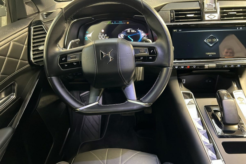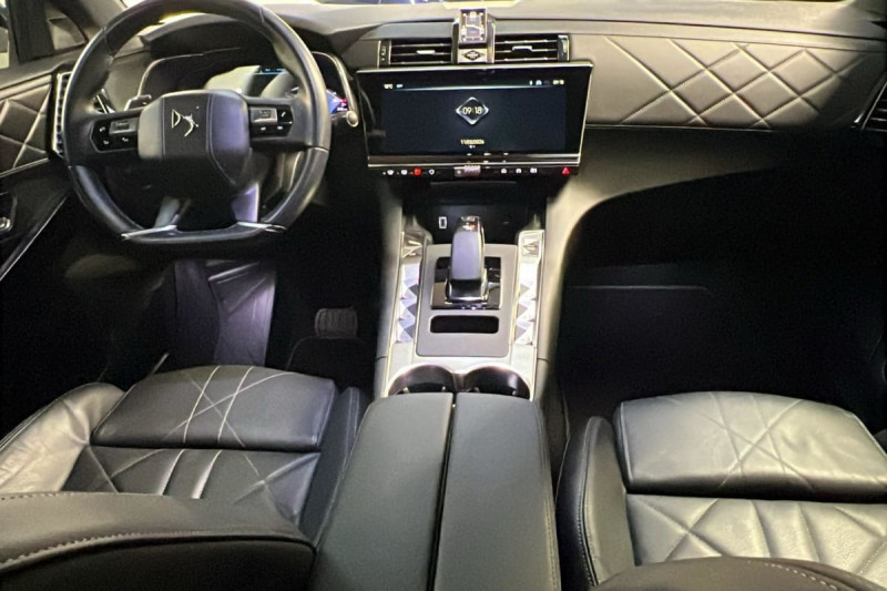 Allumage automatique des feux Avec commutation automatique des feux de route / Détection de sous-gonflage / Frein de stationnement électrique automatique / Double canule d'échappement chromée / Accès et démarrage mains libres / Alerte Attention Conducteur / Lève-vitres AV/AR électriques, séquentiels et avec fonction antipincement / Rétroviseur intérieur électrochrome sans cadre / Contrôle dynamique de stabilité (ESP) avec antipatinage des roues (ASR) / Vérins d'ouverture et de maintien du capot moteur / Surveillance d'angles morts / Feux AR 3D (traitement écailles) Avec indicateur de changement de direction défilant / Intérieur Cuir Noir Basalte : Pédalier et le repose-pied aluminium Vitres AR et lunette AR surteintées Surtapis AV/AR Accoudoir central AR Réglage du nez de coussin Sièges AV électriques Réglage électrique du siège, réglage lombaire pneumatique, réglage mécanique du nez de coussin Sellerie Cuir Claudia et Toile DS Mistral Volant Cuir fleur avec coussin d'airbag en cuir Montre rotative B.R.M. R180 Panneaux de portes en toile DS Noir Basalte Ciel de pavillon Sombre / Freinage d'urgence automatique piloté par caméra et radar / ABS avec répartiteur électronique de freinage (REF) et Aide au Freinage d'Urgence (AFU) + Aide au démarrage en pente / Airbags frontaux (passager déconnectable), latéraux AV, rideaux AV/AR / Fixations ISOFIX à la place passager AV et aux places latérales AR Inclut TOP TEATHER / Kit de dépannage / Rétroviseurs extérieurs électriques dégivrants, rabattables électriquement Fonction électrochrome côté conducteur, Projection au sol du logo DS, Indexéà la marche AR côté passager / Aide au stationnement AV/AR et Caméra de recul / Eclairage d'accueil et d'accompagnement / Poignées extérieures couleur caisse avec insert chromé / Rétroviseurs extérieurs avec embase couleur caisse et coque noir brillant / Sabot AV chromé / Accoudoir central en Toile DS avec rangement / Eclairage de cave à pieds à LED / Eclairage d'ambiance à LED / Combiné numérique 12.3" HD / Double antennes / DS IRIS SYSTEM Système d'infotainment personnalisable de dernière génération / Mirror Screen sans fil via Wifi Compatible Apple CarPlay et Android Auto / Navigation 3D Connectée / Prises USB 1 prise USB type C dans le rangement de la console centrale et 2 prises USB type A pour les passagers AR / Prises 12 V 1 prise dans le rangement AV de la console centrale et 1 prise dans le coffre / DS PIXEL LED VISION 3.0 / Essuie-vitre AV à déclenchement et cadencement automatiques + Buses de lavage / Jantes alliage 19'' EDINBURGH, pneus 235/50 R19 V / SOS & Assistance / Contrôle électronique de stabilité de l'attelage / Ecran tactile capacitif 12" HD / DS ACTIVE SCAN SUSPENSION / / Véhicules équivalents: X5, Q5