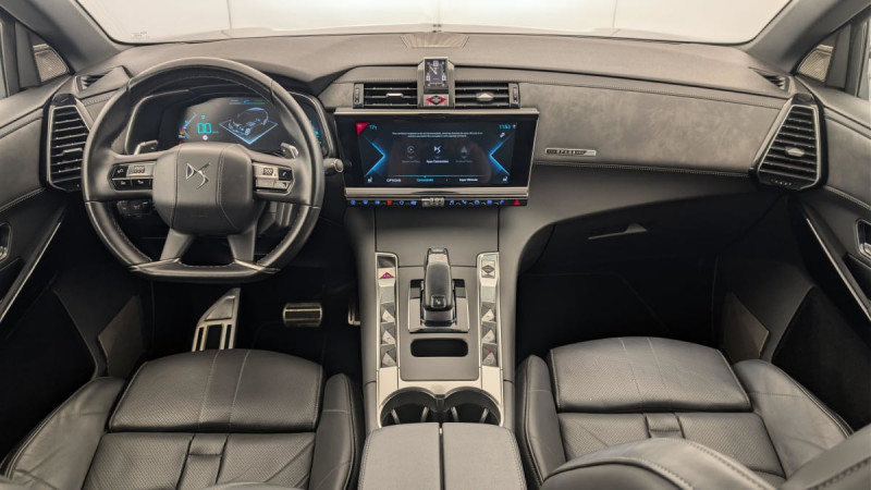 Essuie-vitre AV à déclenchement et cadencement automatiques / Détection de sous-gonflage / Kit de dépannage provisoire de pneumatiques / Eclairage d'accompagnement automatique / Entourage des vitres latérales chromé / Frein de stationnement électrique automatique / Accès et démarrage mains libres / Double canule d'échappement chromée / Mirror Screen / Planche de coffre avec zone de rangement intégrée pour le câble de recharge / Allumage automatique des feux de détresse en cas de forte décélération / Contrôle de traction intelligent / Témoin et alerte sonore de non-bouclage des ceintures de sécurité AV/AR / Clignotants impulsionnels 3 coups / Avertisseur bi-ton / Chargeur sans fil / Reconnaissance vocale / Jonc sur volet et bouclier AR chromé / Sabot AV finition Gris Aluminium / Aumônières de dos sur les sièges AV / Eclairage d'accueil automatique / Prise USB Data à l'AV / Pack Sécurité : Freinage d'urgence automatique Alerte active de franchissement involontaire de ligne / Aide au stationnement AV et AR avec Caméra de recul / Combiné numérique 12" / Eclairage d'ambiance intégral à LED / Montre B.R.M. R180 / Pack Modularité : Seuil de coffre chromé Prise 12 V Plancher de coffre modulable à 2 positions Rangements latéraux dans le coffre / Pack Sièges Electriques : Fonction mémoire et réglages lombaire côté conducteur Appuie-tête à réglages intégrés Banquette AR inclinable électriquement avec accoudoir Siège AV électrique conducteur Siège passager AV électrique / Pédalier et le repose-pied aluminium / Climatisation avec aérateurs aux places AR / Eclairage à LED / Volant Cuir gainé main avec commandes intégrées / Verrouillage automatique des portes en roulant / Prises USB x2 aux places AR / DS ACTIVE SCAN SUSPENSION Système de suspension pilotée par caméra / Airbags frontaux aux places AV avec désactivation par clé de l'airbag passager / Lève-vitres AV/AR électriques, séquentiels et avec fonction antipincement / DS ACTIVE LED VISION Comprend les projecteurs directionnels, les clignotants défilants à LED ainsi que 6 modes d?éclairages / Contrôle dynamique de stabilité (ESP) avec antipatinage des roues (ASR) / Crochet d'arrimage dans le coffre au dessus du plancher de coffre x4 / Pare-soleil rembourrés avec éclairage à LED / Commutation automatique des feux de route / Ecran tactile 12" avec menu spécifique E-TENSE / Trappe de recharge côté gauche / Airbags latéraux de type "thorax" aux places AV / Banquette AR 2/3 - 1/3 avec 3 appuie-tête / SOS / Chargeur embarqué de 7,4 kW / ABS avec répartiteur électronique de freinage (REF) et Aide au Freinage d'Urgence (AFU) / Feux AR 3D (traitement écailles) Avec indicateur de changement de direction défilant / Pack Sécurité Etendue avec freinage d?urgence automatique : Alerte Attention Conducteur par caméra Reconnaissance étendue des panneaux de circulation Surveillance Active d'Angle Mort / Câble de recharge mode 2 standard 1,8 kW (8 A) / NAVIGATION avec radio numérique / Vitres AV et AR surteintées et feuilletées / / Véhicules équivalents: X5, Q5