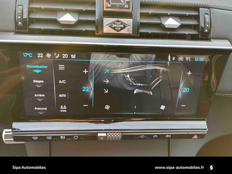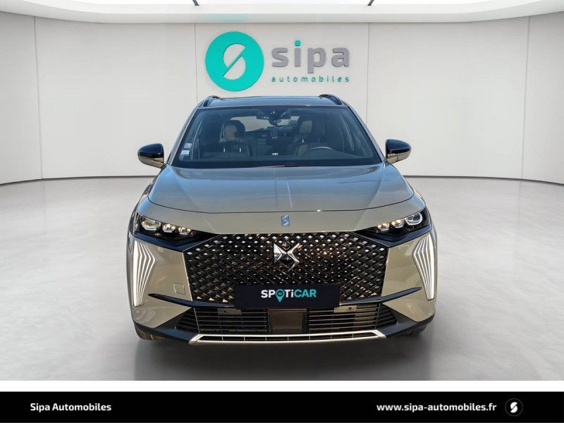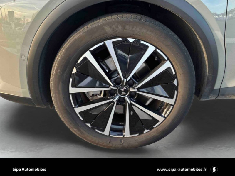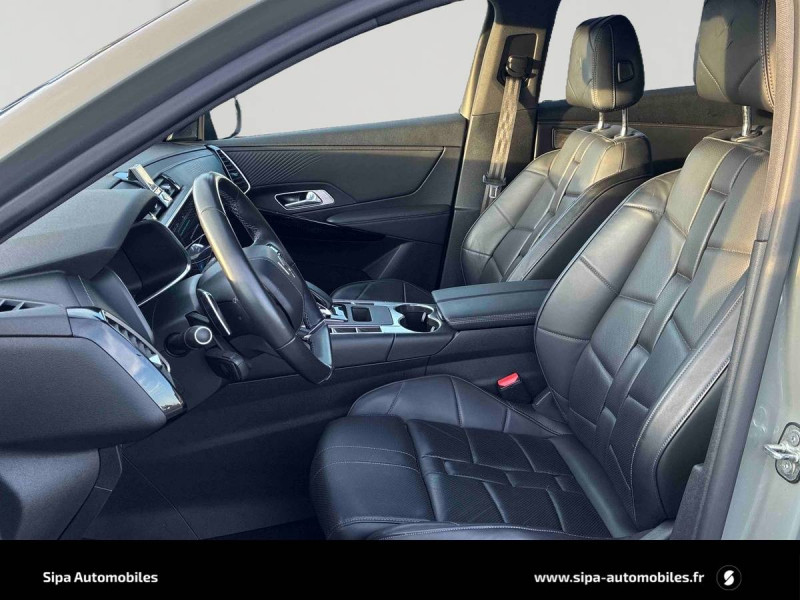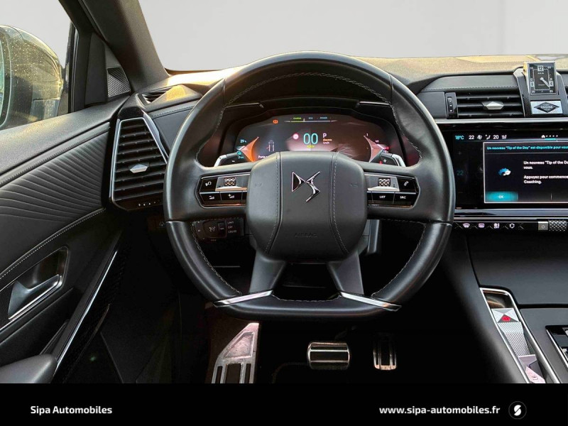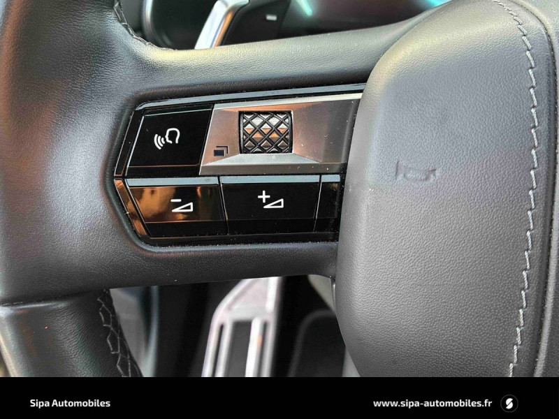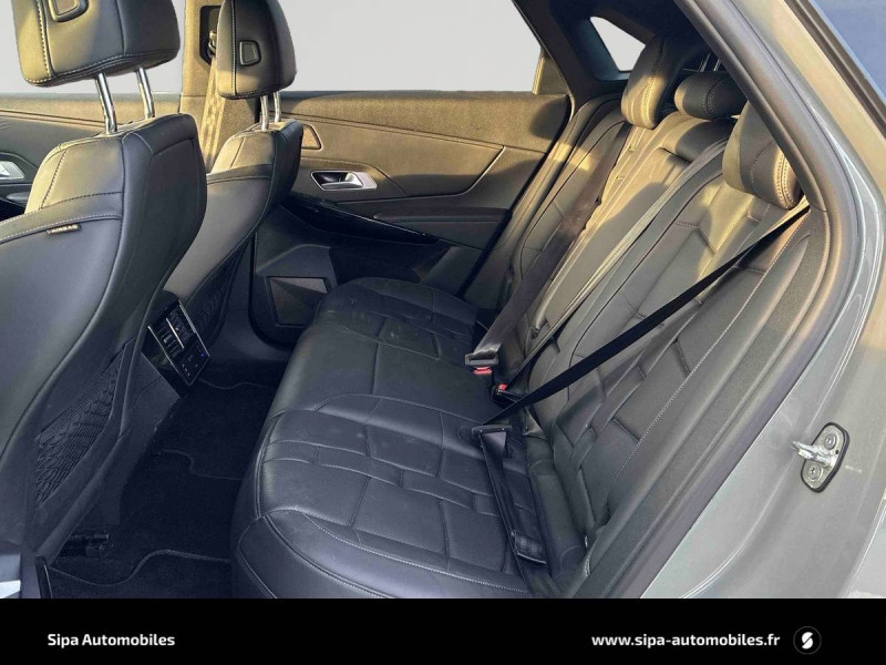 ABS avec répartiteur électronique de freinage (REF) et Aide au Freinage d'Urgence (AFU) + Aide au démarrage en pente / Accès et démarrage mains libres / Accoudoir central en Toile DS avec rangement / Aide au stationnement AV/AR et Caméra de recul / Airbags frontaux (passager déconnectable), latéraux AV, rideaux AV/AR / Alerte Attention Conducteur / Allumage automatique des feux Avec commutation automatique des feux de route / Badge DS chromé sur le capot / Banquette AR électrique / Câble de recharge mode 2 standard 1,8 kW (8 A) / Centre de roue Noir brillant / Chargeur embarqué monophasé de 3,7 kW / Chargeur sans fil pour smartphone + 2 prises USB type C / Climatisation automatique bizone étendue avec tableau de commandes aux places AR et filtre anti-allergènes / Combiné numérique 12.3" HD / Contrôle dynamique de stabilité (ESP) avec antipatinage des roues (ASR) / Détection de sous-gonflage / Double antennes / Double canule d'échappement chromée / DS Active Scan Suspension / DS Drive Assist / DS IRIS SYSTEM Système d'infotainment personnalisable de dernière génération / DS PIXEL LED VISION 3.0 / DS Wings chromées / Eclairage d'accueil et d'accompagnement / Eclairage de cave à pieds à LED / Eclairage PolyAmbient / Ecran tactile capacitif 12,3'' HD / Entourage des vitres latérales chromé / Essuie-vitre AV à déclenchement et cadencement automatiques + Buses de lavage / Feux AR 3D (traitement écailles) Avec indicateur de changement de direction défilant / Fixations ISOFIX à la place passager AV et aux places latérales AR Inclut TOP TEATHER / Freinage d'urgence automatique piloté par caméra et radar / Frein de stationnement électrique automatique / Grille de calandre noir brillant avec pampilles chromées / Hayon motorisé avec accès bras chargés / Jantes alliage 19'' EDINBURGH, pneus 235/50 R19 V / Jonc supérieur de volet Noir brillant avec lettrage 'DS AUTOMOBILES' chromé / Jonc sur jupe AR chromé / Kit de dépannage / Lève-vitres AV/AR électriques, séquentiels et avec fonction antipincement / Mirror Screen sans fil via Wifi Compatible Apple CarPlay et Android Auto / Monogrammes AR chromé / Montre rotative B.R.M. R180 / Navigation 3D Connectée Information trafic en temps réel, prix des carburants,parkings et Zones de Danger.3 ans inclus / Pare-brise chauffant / Pare-brise teinté acoustique / Pédalier et le repose-pied aluminium / Poignées extérieures couleur caisse avec insert chromé / Préconditionnement thermique de l'habitacle programmable par smartphone Via MyDS App / Prédisposition Plancher modulable à 2 positions / Prises 12 V 1 prise dans le rangement AV de la console centrale et 1 prise dans le coffre / Prises USB 2 prises USB type C dans le rangement de la console centrale et 2 prises USB type A pour les passagers AR / Rétroviseur intérieur électrochrome sans cadre / Rétroviseurs extérieurs avec embase couleur caisse et coque noir brillant / Rétroviseurs extérieurs électriques dégivrants, rabattables électriquement Fonction électrochrome côté conducteur, Projection au sol du logo DS, Indexéà la marche AR côté passager / Sabot AV chromé / Services Pack Navigation Plus 3 ANS INCLUS / Seuil de coffre chromé / Seuils de portes Trame DS / Sièges AV chauffants, massants et ventilés / Sièges AV électriques Réglage électrique du siège, réglage lombaire pneumatique, réglage mécanique du nez de coussin / SOS & Assistance Service inclus pendant 10 ans / Surtapis AV/AR / Surveillance d'angles morts / Toit ouvrant panoramique électrique Entrebaillant, Ouvrant, Occulteur motorisé / Vérins d'ouverture et de maintien du capot moteur / Vitres latérales feuilletées acoustiques