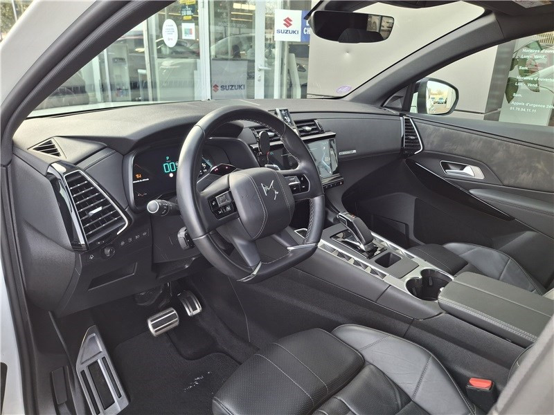 ABS, AFU, ESP, REF / Accès et démarrage mains libres / Aide au stationnement AV et AR avec Caméra de recul / Airbags frontaux, latéraux et rideaux aux places AV et rideaux aux places AR / Antenne radio intégrée dans la lunette AR / Aumônières de dos sur les sièges AV / Avertisseur bi-ton / Banquette AR 2/3 - 1/3 permettant un plancher plat / Calandre surmontée de l'emblème E-TENSE / Chargeur pour une recharge plus rapide de la batterie / Chargeur sans fil / Climatisation avec aérateurs aux places AR / Combiné numérique 12" / Contrôle de traction intelligent / Contrôle dynamique de stabilité (ESP) avec antipatinage des roues (ASR) / Coques de rétroviseurs extérieurs Noir Perla Nera / Crochet d'arrimage dans le coffre au dessus du plancher de coffre x4 / Détection de sous-gonflage / Double canule d'échappement chromée / DS ACTIVE LED VISION / DS ACTIVE SCAN SUSPENSION / DS Connect Box / DS CONNECT NAV / DS CONNECT NAV avec radio numérique / DS Wings chromées / Eclairage à LED / Eclairage d'accueil à l?ouverture du véhicule / Eclairage d'ambiance intégral à LED / Eclairage PolyAmbient / Ecran tactile 12" avec menu spécifique E-TENSE / Entourage des vitres latérales chromé / Filtre à odeurs avec charbon actif / Filtre à pollen / Fixations ISOFIX à la place passager AV et aux places latérales AR / Frein de stationnement électrique / Garnissage en Cuir grainé Noir Basalte / Guide utilisateur numérique / Hayon motorisé avec Accès Bras Chargés / Indicateur de changement de rapport / Inspiration DS RIVOLI Noir Basalte / Kit de dépannage provisoire de pneumatiques / Lève-vitres AV et AR électriques avec fonction antipincement / Mirror Screen / Montre B.R.M. R180 / Ouverture et fermeture des vitres à distance / Pack Easy Access / Pack Modularité / Pack Sécurité Etendue avec freinage d?urgence automatique / Pare-brise teinté et acoustique / Pare-soleil rembourrés avec éclairage à LED / Pédalier et le repose-pied aluminium / Pieds de rétroviseurs extérieurs couleur carrosserie / Planche de bord en Cuir Nappa / Planche de coffre avec zone de rangement intégrée pour le câble de recharge / Plancher modulable à 2 positions avec rangements amovibles / Poignées de portes couleur carrosserie / Pommeau de levier de vitesse avec embossage intégrant l'emblème E-TENSE / Prises USB x2 aux places AR / Reconnaissance vocale / Rétroviseur intérieur électrochrome sans cadre / Rétroviseurs extérieurs électriques dégivrants avec sonde de température et répétiteurs de / Sangle de coffre / Seuils de portes en métal avec Trame DS / Siège conducteur électrique avec mémorisation de position de conduite / Signature E-TENSE 4x4 sur le hayon / Surtapis AV/AR / Système audio Analogique à 8 HP avec prise USB et Bluetooth / Système sonore polyphonique / Témoin et alerte sonore de non-bouclage des ceintures de sécurité AV/AR / Trappe de recharge côté gauche / Vérins d'ouverture et de maintien du capot moteur / Verrouillage automatique des portes en roulant / Vitres latérales AV et AR surteintées et feuilletées / Volant Cuir gainé main avec commandes intégrées / Zone De Danger