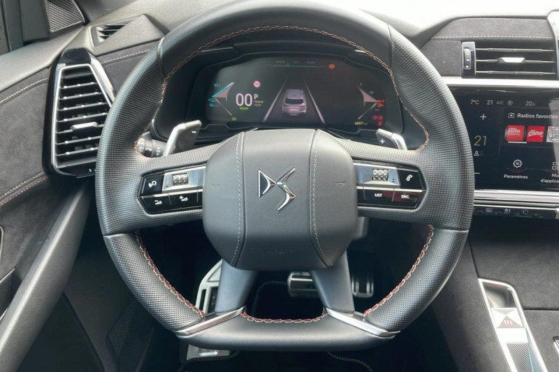 Allumage automatique des feux Avec commutation automatique des feux de route / Pédalier et le repose-pied aluminium / Détection de sous-gonflage / Frein de stationnement électrique automatique / Double canule d'échappement chromée / Accès et démarrage mains libres / DS Active Scan Suspension / DS PIXEL LED VISION 3.0 / Alerte Attention Conducteur / Lève-vitres AV/AR électriques, séquentiels et avec fonction antipincement / Rétroviseur intérieur électrochrome sans cadre / Contrôle dynamique de stabilité (ESP) avec antipatinage des roues (ASR) / Vérins d'ouverture et de maintien du capot moteur / Surveillance d'angles morts / Barres de toit noires brillantes / Banquette AR avec trappe à skis / Entourage des vitres latérales Noir Brillant / Feux AR 3D (traitement écailles) Avec indicateur de changement de direction défilant / Freinage d'urgence automatique piloté par caméra et radar / ABS avec répartiteur électronique de freinage (REF) et Aide au Freinage d'Urgence (AFU) + Aide au démarrage en pente / Airbags frontaux (passager déconnectable), latéraux AV, rideaux AV/AR / Fixations ISOFIX à la place passager AV et aux places latérales AR Inclut TOP TEATHER / Kit de dépannage / Pare-brise teinté acoustique / Rétroviseurs extérieurs électriques dégivrants, rabattables électriquement Fonction électrochrome côté conducteur, Projection au sol du logo DS, Indexéà la marche AR côté passager / Eclairage d'accueil et d'accompagnement / Jonc sur jupe AR chromé / Poignées extérieures couleur caisse avec insert chromé / Rétroviseurs extérieurs avec embase couleur caisse et coque noir brillant / Accoudoir central en Toile DS avec rangement / Eclairage de cave à pieds à LED / Eclairage d'ambiance à LED / Combiné numérique 12.3" HD / DS IRIS SYSTEM Système d'infotainment personnalisable de dernière génération / Mirror Screen sans fil via Wifi Compatible Apple CarPlay et Android Auto / Navigation 3D Connectée Information trafic / Prises USB 1 prise USB type C dans le rangement de la console centrale et 2 prises USB type A pour les passagers AR / Prises 12 V 1 prise dans le rangement AV de la console centrale et 1 prise dans le coffre / Intérieur Alcantara Noir profond : Sellerie Alcantara Noir profond avec Toile DS Console centrale en Alcantara Noir Profond Panneaux de portes en Alcantara Noir Profond et surpiqûres Carmin et Or Planche de bord Alcantara Noir Profond et surpiqûres Carmin et Or Volant Cuir fleur perforé et coutures Carmin et Or Ciel de pavillon Sombre / Essuie-vitre AV à déclenchement et cadencement automatiques + Buses de lavage / Sièges AV électriques Réglage électrique du siège, réglage lombaire pneumatique, réglage mécanique du nez de coussin / Jantes alliage 19'' SILVERSTONE, pneus 235/50 R19 V / SOS / Ecran tactile capacitif 12?? HD / / Véhicules équivalents: X5, Q5