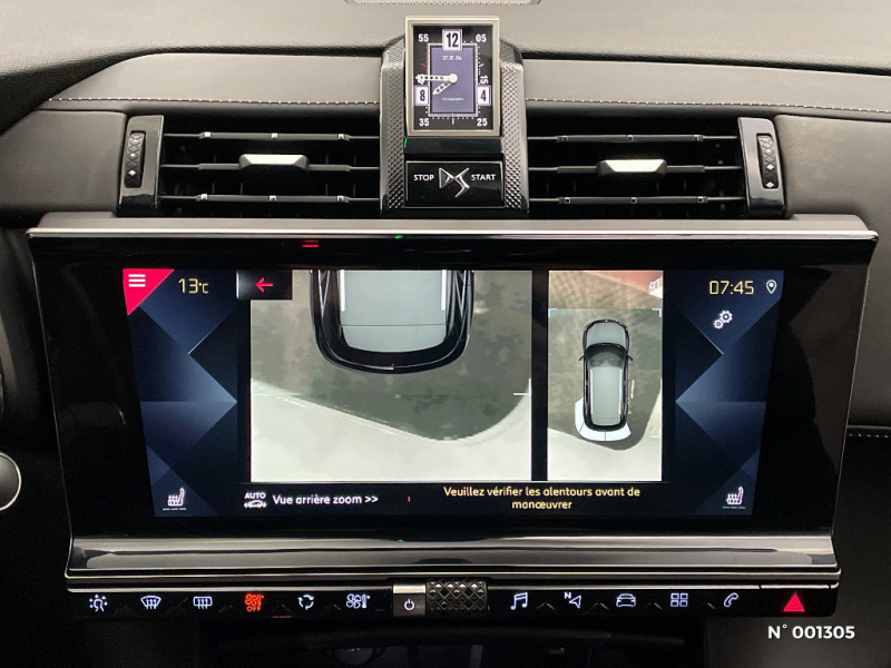 Lève-vitres AV et AR électriques avec fonction antipincement / Pare-brise teinté et acoustique / Rétroviseurs extérieurs électriques dégivrants avec sonde de température et répétiteurs de clignotants à LED / Système audio Analogique à 8HP avec prise USB et Bluetooth / Verrouillage automatique des portes en roulant / Filtre à odeurs avec charbon actif / Prises USB x2 aux places AR / Garnissage en Cuir grainé Noir Basalte / Planche de bord en cuir Nappa / Seuils de portes en métal avec Trame DS / Plancher modulable à 2 positions avec rangements amovibles / Rétroviseurs extérieurs indexés à la marche AR et à mémoire de position / DS ACTIVE SCAN SUSPENSION Système de suspension pilotée par caméra / DS Wings Chromé / Contrôle dynamique de stabilité (ESP) avec antipatinage des roues (ASR) / Guide utilisateur numérique / Vérins d'ouverture et de maintien du capot moteur / Crochet d'arrimage dans le coffre au dessus du plancher de coffre x4 / Pare-soleil rembourrés avec éclairage à LED / Sangle de coffre / ABS, AFU, ESP, REF / Détection de sous-gonflage / Kit de dépannage provisoire de pneumatiques / Entourage chromé des vitres latérales / Accès et démarrage mains libres / Double canule d'échappement chromée / Mirror Screen / Coques de rétroviseurs extérieurs Noir Perla Nera / Témoin et alerte sonore de non-bouclage des ceintures de sécurité AV et AR / Banquette AR 2/3 - 1/3 permettant un plancher plat / Poignées de portes couleur carrosserie / Avertisseur bi-ton / Reconnaissance vocale / Système sonore polyphonique / Pieds de rétroviseurs extérieurs couleur carrosserie / Aumônières de dos sur les sièges AV / Ouverture et fermeture des vitres à distance / Siège conducteur électrique avec mémorisation de position de conduite / Antenne radio intégrée dans la lunette AR / Aide au stationnement AV et AR avec Caméra de recul / Chargeur sans fil / Combiné numérique 12" / DS CONNECT NAV / Pack Easy Access / Rétroviseur intérieur électrochrome sans cadre / Rétroviseurs extérieurs rabattables électriquement et indexés à la marche AR avec projection au sol du logo DS / Eclairage d'ambiance intégral à LED / Eclairage PolyAmbient / Montre B.R.M. R180 / Pack Modularité / Contrôle de traction intelligent / Airbags frontaux, latéraux et rideaux aux places AV et rideaux aux places AR / DS Connect Box / Eclairage à LED / Eclairage d'accueil à l?ouverture du véhicule / Filtre à pollen / Fixations ISOFIX à la place passager et aux places latérales AR / Frein de stationnement électrique / Indicateur de changement de rapport / Démarrage Mains-Libres avec décor Trame DS sur la clé / Volant Cuir gainé main avec commandes intégrées / Pédalier et le repose-pied aluminium / Surtapis AV et AR / Pack Sécurité Etendue avec freinage d?urgence automatique / DS ACTIVE LED VISION / Vitres latérales AV et AR surteintées et feuilletées / Inspiration DS RIVOLI Noir Basalte