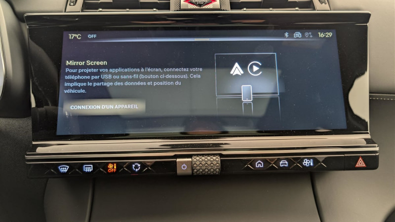 Allumage automatique des feux Avec commutation automatique des feux de route / Pédalier et le repose-pied aluminium / Détection de sous-gonflage / Régulateur/Limiteur de vitesse ACC3 DECEL0 + ACCEL0 [RG37] / Frein de stationnement électrique automatique / Double canule d'échappement chromée / Accès et démarrage mains libres / DS PIXEL LED VISION 3.0 / Alerte Attention Conducteur / Hayon motorisé avec Accès Bras Chargés / Lève-vitres AV/AR électriques, séquentiels et avec fonction antipincement / Rétroviseur intérieur électrochrome sans cadre / Contrôle dynamique de stabilité (ESP) avec antipatinage des roues (ASR) / Vérins d'ouverture et de maintien du capot moteur / Surveillance d'angles morts / DS Drive Assist / Entourage des vitres latérales Noir Brillant / Feux AR 3D (traitement écailles) Avec indicateur de changement de direction défilant / Eclairage PolyAmbient / Jonc supérieur de volet Noir brillant avec lettrage 'DS AUTOMOBILES' chromé / Freinage d'urgence automatique piloté par caméra et radar / ABS avec répartiteur électronique de freinage (REF) et Aide au Freinage d'Urgence (AFU) + Aide au démarrage en pente / Airbags frontaux (passager déconnectable), latéraux AV, rideaux AV/AR / Fixations ISOFIX à la place passager AV et aux places latérales AR Inclut TOP TEATHER / Kit de dépannage / Pare-brise teinté acoustique / Rétroviseurs extérieurs électriques dégivrants, rabattables électriquement Fonction électrochrome côté conducteur, Projection au sol du logo DS, Indexéà la marche AR côté passager / Eclairage d'accueil et d'accompagnement / Toit ouvrant panoramique électriquee Entrebaillant, Ouvrant, Occulteur motorisé / Vitres latérales feuilletées acoustiques / Grille de calandre noir brillant avec pampilles chromées / Jonc sur jupe AR chromé / Rétroviseurs extérieurs avec embase couleur caisse et coque noir brillant / Accoudoir central en Toile DS avec rangement / Combiné numérique 12.3" HD / Double antennes / DS IRIS SYSTEM Système d'infotainment personnalisable de dernière génération / Mirror Screen sans fil via Wifi Compatible Apple CarPlay et Android Auto / Navigation 3D Connectée / Prises USB 1 prise USB type C dans le rangement de la console centrale et 2 prises USB type A pour les passagers AR / Prises 12 V 1 prise dans le rangement AV de la console centrale et 1 prise dans le coffre / Essuie-vitre AV à déclenchement et cadencement automatiques + Buses de lavage / Barres de toit noir brillant / Prédisposition Plancher modulable à 2 positions / Jantes alliage 21'' BROOKLYN, pneus 245/35 R21 Y avec étriers de frein DS Performance / Montre rotative B.R.M. R180 / SOS & Assistance / Contrôle électronique de stabilité de l'attelage / Ecran tactile capacitif 12" HD / Poignées extérieures couleur caisse / Sièges AV électriques avec mémorisation / Ceintures conducteur et passager à enrouleur pyrotechnique, réglage en hauteur avec limitation d'effort et prétension / / Véhicules équivalents: X5, Q5