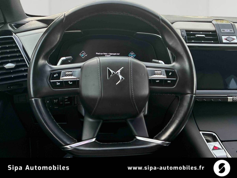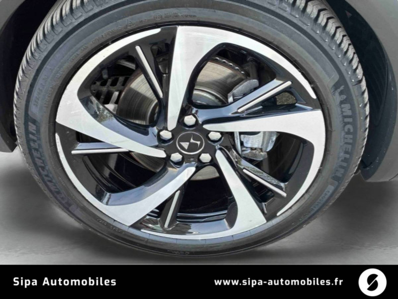 ABS avec répartiteur électronique de freinage (REF) et Aide au Freinage d'Urgence (AFU) / Aide au stationnement AV et AR avec Caméra de recul / Airbags frontaux aux places AV avec désactivation par clé de l'airbag passager / Airbags latéraux de type "thorax" aux places AV / Alerte Attention Conducteur / Allumage automatique des feux de détresse en cas de forte décélération / Antenne radio intégrée dans la lunette AR / Aumônières de dos sur les sièges AV / Avertisseur bi-ton / Badge de planche de bord RIVOLI / Banquette AR 2/3 - 1/3 avec 3 appuie-tête / Banquette AR inclinable électriquement / Barres de toit noires brillantes / Câble de recharge mode 2 standard 1,8 kW (8 A) / Calandre surmontée de l'emblème E-TENSE / Chargeur embarqué de 7,4 kW / Clignotants impulsionnels 3 coups / Climatisation avec aérateurs aux places AR / Combiné numérique 12" / Commutation automatique des feux de route / Contrôle de traction intelligent / Contrôle dynamique de stabilité (ESP) avec antipatinage des roues (ASR) / Coques de rétroviseurs extérieurs Noir Perla Nera / Crochet d'arrimage dans le coffre au dessus du plancher de coffre x4 / Détection de sous-gonflage / Double canule d'échappement chromée / DS ACTIVE LED VISION / DS ACTIVE SCAN SUSPENSION Système de suspension pilotée par caméra / DS Wings noir brillant / Eclairage à LED / Eclairage d'accompagnement automatique / Eclairage d'accueil automatique / Entourage des vitres latérales Noir Brillant / Essuie-vitre AV à déclenchement et cadencement automatiques / Filtre à pollen / Fixations ISOFIX à la place passager AV et aux places latérales AR / Frein de stationnement électrique automatique / Grille de calandre noir brillant / Guide utilisateur numérique / Indicateur de rapports engagés / Intérieur Cuir Gris Perle / Intérieur Cuir Noir Basalte / Jonc sur volet Noir brillant et bouclier arrière chromé / Kit de dépannage provisoire de pneumatiques / Lève-vitres AV et AR électriques avec fonction antipincement / Mirror Screen / Montre B.R.M. R180 / NAVIGATION avec radio numérique / Ouverture et fermeture des vitres à distance / Pack Sécurité / Pack Style Noir brillant / Panneaux de portes en cuir Nappa Gris Perle / Pare-soleil rembourrés avec éclairage à LED / Pédalier et le repose-pied aluminium / Pieds de rétroviseurs extérieurs couleur carrosserie / Planche de bord en Cuir Nappa Gris Perle / Planche de bord en cuir Nappa Noir Basalte / Poignées de portes couleur carrosserie / Préchauffage du véhicule depuis un smartphone ou bien depuis l'écran tactile 12" / Prises USB x2 aux places AR / Prise USB Data à l'AV / Reconnaissance vocale / Rétroviseur intérieur électrochrome sans cadre / Rétroviseurs extérieurs rabattables électriquement et indexés à la marche AR avec projection au sol du logo DS / Sabot AV finition Gris Aluminium / Sangle de coffre / Seuil de coffre chromé / Seuils de portes en métal avec Trame DS / Siège conducteur électrique avec mémorisation de position de conduite / Sièges AV avec réglages lombaires électriques / SOS & Assistance / Surtapis AV/AR / Système audio Analogique à 8 HP avec prise USB et Bluetooth / Système sonore polyphonique / Teinte Caisse métallisée Gris Artense / Témoin et alerte sonore de non-bouclage des ceintures de sécurité AV/AR / Vérins d'ouverture et de maintien du capot moteur / Verrouillage automatique des portes en roulant / Vitres AV et AR surteintées et feuilletées / Volant Cuir gainé main avec commandes intégrées / Zone De Danger