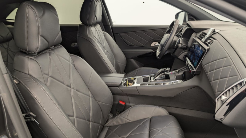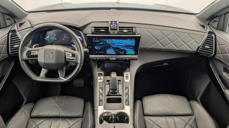 Allumage automatique des feux Avec commutation automatique des feux de route / Détection de sous-gonflage / Frein de stationnement électrique automatique / Double canule d'échappement chromée / Accès et démarrage mains libres / Alerte Attention Conducteur / Lève-vitres AV/AR électriques, séquentiels et avec fonction antipincement / Rétroviseur intérieur électrochrome sans cadre / Contrôle dynamique de stabilité (ESP) avec antipatinage des roues (ASR) / Vérins d'ouverture et de maintien du capot moteur / Surveillance d'angles morts / Feux AR 3D (traitement écailles) Avec indicateur de changement de direction défilant / Intérieur Cuir Noir Basalte : Pédalier et le repose-pied aluminium Vitres AR et lunette AR surteintées Surtapis AV/AR Accoudoir central AR Réglage du nez de coussin Sièges AV électriques Réglage électrique du siège, réglage lombaire pneumatique, réglage mécanique du nez de coussin Sellerie Cuir Claudia et Toile DS Mistral Volant Cuir fleur avec coussin d'airbag en cuir Montre rotative B.R.M. R180 Panneaux de portes en toile DS Noir Basalte Ciel de pavillon Sombre / Freinage d'urgence automatique piloté par caméra et radar / ABS avec répartiteur électronique de freinage (REF) et Aide au Freinage d'Urgence (AFU) + Aide au démarrage en pente / Airbags frontaux (passager déconnectable), latéraux AV, rideaux AV/AR / Fixations ISOFIX à la place passager AV et aux places latérales AR Inclut TOP TEATHER / Kit de dépannage / Rétroviseurs extérieurs électriques dégivrants, rabattables électriquement Fonction électrochrome côté conducteur, Projection au sol du logo DS, Indexéà la marche AR côté passager / Aide au stationnement AV/AR et Caméra de recul / Eclairage d'accueil et d'accompagnement / Poignées extérieures couleur caisse avec insert chromé / Rétroviseurs extérieurs avec embase couleur caisse et coque noir brillant / Sabot AV chromé / Accoudoir central en Toile DS avec rangement / Eclairage de cave à pieds à LED / Eclairage d'ambiance à LED / Combiné numérique 12.3" HD / Double antennes / DS IRIS SYSTEM Système d'infotainment personnalisable de dernière génération / Mirror Screen sans fil via Wifi Compatible Apple CarPlay et Android Auto / Navigation 3D Connectée / Prises USB 1 prise USB type C dans le rangement de la console centrale et 2 prises USB type A pour les passagers AR / Prises 12 V 1 prise dans le rangement AV de la console centrale et 1 prise dans le coffre / DS PIXEL LED VISION 3.0 / Essuie-vitre AV à déclenchement et cadencement automatiques + Buses de lavage / Jantes alliage 19'' EDINBURGH, pneus 235/50 R19 V / SOS & Assistance / Contrôle électronique de stabilité de l'attelage / Ecran tactile capacitif 12" HD / DS ACTIVE SCAN SUSPENSION / / Véhicules équivalents: X5, Q5