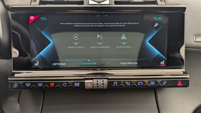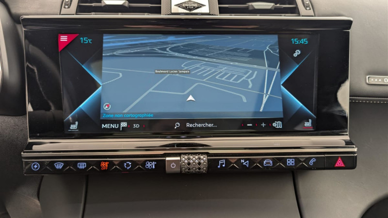 Essuie-vitre AV à déclenchement et cadencement automatiques / Détection de sous-gonflage / Kit de dépannage provisoire de pneumatiques / Eclairage d'accompagnement automatique / Entourage des vitres latérales chromé / Frein de stationnement électrique automatique / Accès et démarrage mains libres / Double canule d'échappement chromée / Mirror Screen / Planche de coffre avec zone de rangement intégrée pour le câble de recharge / Allumage automatique des feux de détresse en cas de forte décélération / Contrôle de traction intelligent / Témoin et alerte sonore de non-bouclage des ceintures de sécurité AV/AR / Clignotants impulsionnels 3 coups / Avertisseur bi-ton / Chargeur sans fil / Reconnaissance vocale / Jonc sur volet et bouclier AR chromé / Sabot AV finition Gris Aluminium / Aumônières de dos sur les sièges AV / Eclairage d'accueil automatique / Prise USB Data à l'AV / Aide au stationnement AV et AR avec Caméra de recul / Combiné numérique 12" / Rétroviseur intérieur électrochrome sans cadre / Eclairage d'ambiance intégral à LED / Montre B.R.M. R180 / Pack Modularité : Seuil de coffre chromé Prise 12 V Plancher de coffre modulable à 2 positions Rangements latéraux dans le coffre / Pack Sièges Electriques : Fonction mémoire et réglages lombaire côté conducteur Appuie-tête à réglages intégrés Banquette AR inclinable électriquement avec accoudoir Siège AV électrique conducteur Siège passager AV électrique / Pédalier et le repose-pied aluminium / Alerte Attention Conducteur / Climatisation avec aérateurs aux places AR / Eclairage à LED / Filtre à pollen / Volant Cuir gainé main avec commandes intégrées / Système audio Analogique à 8 HP avec prise USB et Bluetooth / Verrouillage automatique des portes en roulant / Prises USB x2 aux places AR / Airbags frontaux aux places AV avec désactivation par clé de l'airbag passager / Lève-vitres AV/AR électriques, séquentiels et avec fonction antipincement / DS ACTIVE LED VISION Comprend les projecteurs directionnels, les clignotants défilants à LED ainsi que 6 modes d?éclairages / Contrôle dynamique de stabilité (ESP) avec antipatinage des roues (ASR) / Crochet d'arrimage dans le coffre au dessus du plancher de coffre x4 / Pare-soleil rembourrés avec éclairage à LED / Commutation automatique des feux de route / Ecran tactile 12" avec menu spécifique E-TENSE / Airbags latéraux de type "thorax" aux places AV / Banquette AR 2/3 - 1/3 avec 3 appuie-tête / SOS / Chargeur embarqué de 7,4 kW / ABS avec répartiteur électronique de freinage (REF) et Aide au Freinage d'Urgence (AFU) / Feux AR 3D (traitement écailles) Avec indicateur de changement de direction défilant / Pack Sécurité Etendue avec freinage d?urgence automatique : Alerte Attention Conducteur par caméra Reconnaissance étendue des panneaux de circulation Surveillance Active d'Angle Mort / Câble de recharge mode 2 standard 1,8 kW (8 A) / NAVIGATION avec radio numérique / Vitres AV et AR surteintées et feuilletées / / Véhicules équivalents: X5, Q5