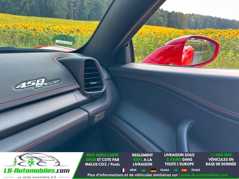 Référence : 1167763 Vos Avantages chez LB-AUTOMOBILES.com / Prix affiché TTC Livré hors carte grise / Livraison sous 10 jours dans toute la France hors 31 / Pas d?avance de frais paiement du véhicule 100% à la livraison par virement. Ferrari 458 Spider Neuf remisée, Ferrari 458 Spider Occasion Toulouse Beaupuy 31850, Ferrari 458 Spider Véhicule sorti de réseau collaborateur, Ferrari 458 Spider import, Ferrari 458 Spider importateur, Ferrari 458 Spider Livraison possible dans toute la France sous 5 jours, Ferrari 458 Spider, Ferrari 458 Spider Location Option Achat, Ferrari 458 Spider LLD, Ferrari 458 Spider Longue Durée, Ferrari 458 Spider TVA récupérable. Possibilité d'extension de garantie 12, 24,36 mois, Pour tout autres voitures import neufs ou occasions collaborateur fortement remisée, Mandataire Audi, Mandataire BMW, Mandataire Volkswagen, Mandataire Mercedes, Mandataire Peugeot Espagne, Mandataire Renault Espagne, Porsche import, Mandataire Citroën Espagne, Mandataire Seat Espagne, n'hésitez pas à nous contacter. « Sous réserve de vente préalable et erreur de saisie » Principaux équipements : - ABS - Antidémarrage - Assistance de démarrage en côte - Bluetooth - Boîte de vitesses robotisée - Capteur de lumière - Capteur de pluie - Carnet d'entretien - Chargeur CD - Contrôle de la pression des pneus - Direction assistée - Éclairage adaptatif de virage - ESP - Fermeture centralisée - Feux de jour LED - Garantie - GPS - Jantes alliage - Kit de préparation pour système de navigation - Kit de réparation d'urgence des pneus - Kit mains libres - Lecteur CD - Ordinateur de bord - Pack sport - Phares bi-xénon - Pneus été - Port USB - Propulsion - Réglage électrique des sièges - Réglage électrique des sièges avec fonction mémoire - Régulateur de vitesse - Rétroviseur extérieur électrique - Rétroviseur intérieur anti-éblouissement automatique - Rétroviseurs extérieurs rabattables électriquement - Siège passager rabattable - Sièges chauffants - Sièges sport - Support lombaire - Suspension adaptative - Suspension sport - Système antipatinage - Système d'alarme - Système de limitation de la vitesse - Système de nettoyage des phares - Système de sonorisation - Tuner/radio - Véhicule non-fumeur - Vitres électriques - Volant en cuir - Volant multifonction