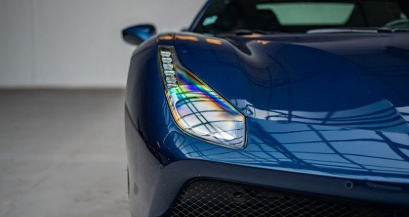 Ferrari 488 GTB *Blu Swaters & Cioccolato*, (Coupé), BLEU SWATERS, 61cv, 2 portes, mise en circulation le 07-03-2018. 2 places, longueur : 4,57 mètres, boîte de vitesse : automatique OPTIONS ET EQUIPEMENTS : Kilométrage garanti. Notre Ferrari 488 GTB est d'origine allemande et fut livrée par le centre Eberlein Ferrari Kassel le 7 mars 2018. Cette voiture arbore une combinaison de couleurs sublime, mais aussi très recherchée, grâce à sa teinte historique Blu Swaters, une teinte extra-range sur demande chez Ferrari. Cette dernière s’accorde avec un intérieur en cuir couleur Cioccolato du plus bel effet. Le sens du détail a été poussé lors de la configuration : nous nous retrouvons face à un exemplaire très bien équipé, avec une panoplie d’éléments en carbone à l’extérieur comme à l’intérieur. Les aérations latérales, les entourages de feux, les centres de roues et les seuils de portes sont en carbone. Mais aussi le volant LED en carbone, les buses d’aération et la console centrale en carbone, ainsi que les sièges Racing Goldrake avec leurs dossiers en carbone. Cette 488 GTB est aussi équipée des écussons Scuderia Ferrari sur les ailes, des étriers de freins couleur aluminium, du système Lift, du système son JBL, ainsi que de la caméra de recul et des radars de stationnement avant et arrière. La liste complète des options est disponible ci-dessous. Notre Ferrari est dans une condition exceptionnelle avec seulement 28 500 km parcourus et n’a connu qu’un seul propriétaire tout au long de sa vie. Le plan d’entretien de 7 ans a été suivi à la lettre avec une révision par an. La dernière révision a été réalisée en mars 2025. Nous disposons de son carnet d’entretien à jour ainsi que de son double de clés. La voiture vient également avec sa housse Ferrari et son maintien de charge d’origine. Cette génération de Berlinette marque l’arrivée de la suralimentation bi-turbo, avec une polyvalence et des performances accrues. Cet exemplaire en particulier, avec sa configuration peu conventionnelle, vous attend pour prendre la route. Equipement optionnel : Options : AFS1 Système de phares adaptatifs CALA Étriers de frein en aluminium CEAD Aérations arrière en fibre de carbone CEIS Diviseur latéral en fibre de carbone CISK Bas de caisse extérieur en carbone CRPK Bouchons de moyeu en fibre de carbone ELEV Lift suspension EMPH Cavallino brodé sur l'appui-tête - Nero 4000 HAW1 Pare-brise isolant thermique HELE Haute émotion, faible émission LOGO Écussons 'Scuderia Ferrari' MIR2 Miroirs électrochromiques intérieur/extérieur PAC1 Caméra de stationnement PAR2 Capteurs de stationnement avant et arrière PEXS Cache-bas de caisse sport PNTH Couleurs historiques Ferrari - Blu Swaters 513/C RIFS Jantes forgées peintes en foncé 20 RSCG Sièges Racing Goldrake - Sièges taille L SNDH Système Hi-Fi Premium JBL SPEC Équipement spécial STC1 Couture standard colorée O.R. - Nero 4000 UALZ Partie supérieure en Alcantara - Alcantara Nero 9440 Equipement spécial: Racing Seats With Contrasting Black Leather Central Stripe Liste des entretiens : 03/2019 - Entretien - 5092km - Eberlein Ferrari Kassel 03/2020 - Entretien - 13278km - Eberlein Ferrari Kassel 03/2021 - Entretien - 16380km - Eberlein Ferrari Kassel 03/2022 - Entretien - 19772km - Eberlein Ferrari Kassel 03/2023 - Entretien - 21751km - Ferrari Eberlein Automobile GMBH 03/2024 - Entretien - 21760km - Ferrari Eberlein Automobile GMBH 03/2025 - Entretien - 25172km - Charles Pozzi Paris Le véhicule est couvert par un contrat de garantie Triomphe Essentielle 12 mois avec plafond de 10 000€. Extension de durée (24 mois) et/ou de plafond (20 000€) possible. L'auto est visible à Paris ou sur le site de Mecanicus pour plus de photos. Nos prix s'entendent TVA et malus inclus, le coût de la carte grise reste à la charge de l'acheteur. Reprise et financement possibles. L'équipe MECANICUS Référence annonce : 251