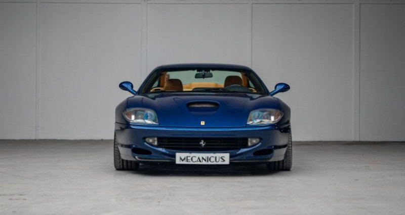 Ferrari 550 MARANELLO *Bleu Tour de France*, (Coupé), BLEU, 0cv, mise en circulation le 17-06-1998. couleur intérieur : BEIGE, boîte de vitesse : automatique OPTIONS ET EQUIPEMENTS : Kilométrage non garanti. La Ferrari 550 Maranello que nous vous présentons est un exemplaire d'origine autrichienne, livré le 17 juin 1998 par la concession Ferrari de Vienne. Vous êtes ici devant l'une des plus rares configurations de Ferrari 550 Maranello. Cette dernière détonne du reste de la production : une sublime peinture Bleu Tour de France associée à un intérieur tout en cuir Tan, avec la partie haute de l'habitacle en cuir noir. Cette 550 Maranello est exceptionnelle dans tout son ensemble : sa condition esthétique, l'état de son intérieur, son historique d'entretien et l'état de la mécanique. Nous disposons de toute la documentation originale de la voiture ainsi que de trois clés et trois télécommandes. La trousse à outils Ferrari est complète, tous les outils sont présents. On y retrouve même une courroie d'accessoires (au cas où). La voiture affiche 64 000 kilomètres au compteur, parcourus avec seulement 4 propriétaires. Elle n'avait jamais quitté l'Autriche avant ce jour. Un des autres points forts de cette auto, c'est son historique d'entretien. Tous ont été réalisés en concession Ferrari et chez des spécialistes de la marque. Un entretien avec le remplacement des courroies de distribution sera réalisé à l'occasion de la vente. Retrouvez la liste complète des entretiens ci-dessus. 27 ans après sa livraison, cette 550 est quasiment intégralement en première peinture, qui se présente dans un état exceptionnel. L'inspection de la voiture sur un pont élévateur a permis de s'assurer du parfait état des soubassements. Le châssis est exempt de traces de rouille et aucune fuite n'a été relevée. Une réfection partielle de l'intérieur a été réalisée ; ce dernier se trouve dans un état proche du neuf. Le tableau de bord, maladie des Ferrari 550, a été entièrement refait à cette occasion. Le cuir des sièges a également été refait et les plastiques collants traités. Liste des entretiens : 03/1999 - Entretien - 6200km - Ferrari Vienne 05/1999 - Entretien - 10380km - Ferrari Vienne 06/2001 - Entretien, Remplacement des courroies de distribution - 29530km - Ferrari Vienne 05/2002 - Entretien - 33743km - Ferrari Vienne 09/2003 - Entretien, Remplacement des courroies de distribution - 38565km - Ferrari Wels 07/2005 - Entretien, Remplacement des courroies de distribution - 42800km - Modena Motorsport Parndorf 10/2009 - Entretien, Remplacement des courroies de distribution - 52197km - Modena Motorsport Parndorf 08/2014 - Entretien - 56178km - Kfz-Engelmann GmbH 07/2018 - Entretien - 58852km - Scuderia Gohm GmbH 06/2021 - Entretien, Remplacement des courroies de distribution - 60692km - Keusch GmbH Maserati Vienne 06/2022 - Entretien - 61081km - Ferrari Vienne 08/2023 - Entretien - 61189km - Ferrari Vienne Le véhicule est couvert par un contrat de garantie Triomphe Héritage 6 mois avec plafond de 5000€ et 10 000km. Extension de durée (12, 24 ou 36 mois) et/ou de plafond (10 000€) possible. L'auto est visible à Paris ou sur le site de Mecanicus pour plus de photos. Nos prix s'entendent TVA et malus inclus, le coût de la carte grise reste à la charge de l'acheteur. Reprise et financement possibles. L'équipe MECANICUS Référence annonce : 153