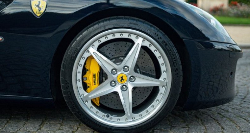 Ferrari 599 HGTE USINE *Bleu Pozzi*, (Coupé), BLEU POZZI, 58cv, 3 portes, mise en circulation le 31-05-2012. 2 places, couleur intérieur : BORDEAUX, longueur : 4,67 mètres, boîte de vitesse : automatique OPTIONS ET EQUIPEMENTS : Kilométrage non garanti. La Ferrari 599 HGTE que nous vous proposons à la vente à été livrée neuve le 31 mai 2012 par le Ferrari dealer de Cracovie en Pologne. Notre exemplaire arbore une configuration exceptionnelle, Bleu Pozzi à l'extérieur, associé à un intérieur en cuir bordeaux et alcantara nero. Au delà du kit HGTE, cet exemplaire à été particulièrement bien équipé, et dispose du pack intérieur carbone complet avec le volant carbone, la console centrale en carbone, les seuils de portes en carbone, le rare système son Bose, le tableau de bord en cuir bordeaux ainsi que les ceintures de la même couleur. Les étriers de freins sont finis en Giallo et s’accordent avec le compte tours. La liste d'options complète est disponible ci-dessous. La voiture contient sa trousse à outils, la housse de carrosserie ainsi que celles du siège conducteur et du volant. La bagagerie Ferrari présente est dans un état neuf. La voiture est une deuxième main, affiche 18 000 km certifiés et a toujours été entretenue en centre Ferrari ou chez des spécialistes de la marque. L'usure de l'embrayage est de 42 %, les freins carbone céramique sont usés de 8 % à l'avant comme à l'arrière. Entre 200 et 300 exemplaires ont été équipés du kit HGTE à l'usine lors de la fabrication de la voiture. Le nombre exact reste inconnu à ce jour. Si les Ferrari 599 sont de plus en plus recherchées, notamment pour leur singularité, leur architecture iconique et leur V12 hérité de l'Enzo, les HGTE usine sont des collectors en devenir. Véritable rareté, notre auto est une opportunité unique d'acquérir l'un des plus beaux exemplaires, en parfait état de conservation, avec une sublime configuration et un faible kilométrage. Toutes les cases sont cochées ! Equipement optionnel : Couleur extérieur : Blu Pozzi Couleur intérieur : Bordeaux & Nero Pack HGTE usine Ceintures de sécurité colorées : Bordeaux Couleur sur demande pour le tableau de bord : Bordeaux Volant coloré : Bordeaux et Nero Tableau de bord supérieur coloré Fond de compteur jaune Échappement sport Pack carbone intérieur Seuils de portes en carbone Bagagerie Préparation pour iPod Tapis de sol extracampionorio non standard Étriers de frein jaunes Écussons Scuderia Ferrari Capteurs de stationnement avant et arrière Vitre arrière teintée Système Hi-Fi Bose Film anti-gravillons avant Liste des entretiens : O5/2012 - Livraison - Ferrari Krakow O8/2013 - 8.873 km - Ferrari Budapest O9/2014 - 10.818 km - Ferrari Budapest O6/2017 - 12.152 km - Modena Motorsport Autriche (Spécialiste Ferrari) O7/2018 - 13.291 km - Modena Motorsport Autriche (Spécialiste Ferrari) O7/2023 - 15.288 km - Modena Motorsport Autriche (Spécialiste Ferrari) O9/2024 - 16.125 km - Modena Motorsport Autriche (Spécialiste Ferrari) Le véhicule est couvert par un contrat de garantie Triomphe Essentielle 12 mois avec plafond de 10 000€. Extension de durée (24 mois) et/ou de plafond (20 000€) possible. L'auto est visible à Paris ou sur le site de Mecanicus pour plus de photos. Nos prix s'entendent TVA et malus inclus, le coût de la carte grise reste à la charge de l'acheteur. Reprise et financement possibles. L'équipe MECANICUS Référence annonce : 125