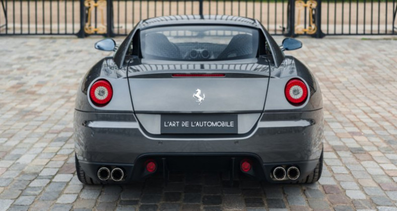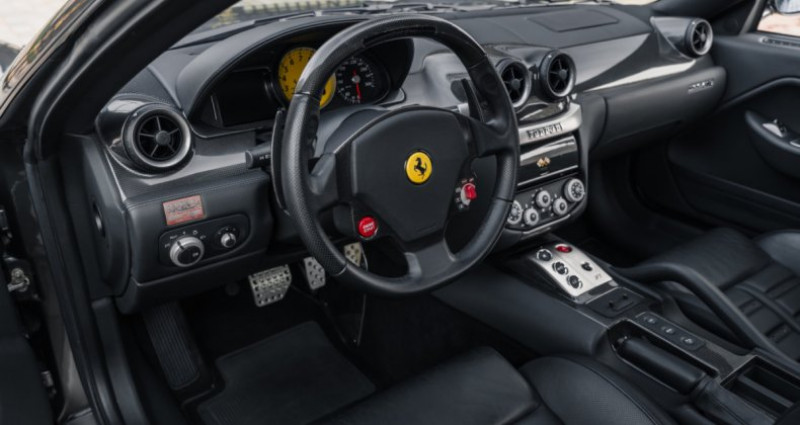 OPTIONS ============== Système audio BOSE Sellerie style Daytona Jantes 599 GTO originales Climatisation automatique Palettes en fibre de carbone Fond de compte-tours jaune Sorties d'échappement HGTE Grille de calandre avant HGTE Assiette rabaissée HGTE (-10 mm) Volant en fibre de carbone + LEDS Cavallino gaufré sur les appuis-tête Ecusson Scuderia sur les ailes avant Capteurs de parking avant et arrière Inserts en carbone sur le tableau de bord Plage arrière et parties basses des portes en cuir Sièges baquets Recaro full électriques et chauffants en fibre de carbone INFORMATIONS ============== Superbe état Faible kilométrage Révisée pour la vente Origine Ferrari Charles Pozzi Levallois Configuration désirable avec le pack HGTE et les jantes de la GTO Carnet, notices, double de clés, certificat de conformité, maintien de chargeUsure du disque d'embrayage : 28 % Usure des disques avant : 48 % Usure des disques arrière : 48 %Suivi et entretien :Le 18/04/2008 - inspection avant livraison Le 22/04/2008 - livraison par Ferrari Charles Pozzi à Levallois Le 05/08/2010 à 5 471 kms par Ferrari Auto Palace à Mandelieu Le 07/05/2015 à 13 400 kms par Ferrari F.M.A nv à Wijnegem Le 22/09/2020 à 27 628 kms par Ferrari Charles Pozzi à LevalloisNous proposons à la vente un superbe exemplaire de la Ferrari 599 GTB Fiorano. Cette auto peinte dans l'élégante teinte Grigio Silverstone avec l'intérieur en cuir noir a été équipée après sa sortie d'usine du désirable pack HGTE. Sa configuration a par la suite été complétée par des jantes proposées d'origine sur l'incroyable 599 GTO. La voiture se trouve aujourd'hui dans un superbe état, d'autant plus qu'elle n'affiche que 30 000 kms au compteur. Elle bénéficie de nombreuses options en fibre de carbone à l'intérieur, de l'audio BOSE, de l'aide au stationnement avant/arrière, des sièges baquets Recaro ou encore des écussons Scuderia. Elle sera révisée pour la vente et vient avec tous ses documents d'origine dont le carnet, ainsi que son COC et un maintien de charge.Présentée en février 2006 au Salon de l'Automobile de Genève, la 599 GTB succède à la 575M Maranello et reste aujourd'hui un modèle phare chez Ferrari, qui a la particularité d'hériter de l'incroyable moteur de la Ferrari Enzo. Au vu de ses caractéristiques, il s'agit d'une auto encore accessible. Dotée de l'impressionnant V12 de 6 litres, qui développe 620 ch, l'auto passe de 0 à 100 km/h en 3,7 secondes et est catapultée jusqu'à 330 km/h. C'est aussi la première fois que Ferrari utilise un châssis en aluminium pour une voiture de grand tourisme.Pour améliorer le comportement et l'efficacité de la 599 GTB, la firme de Maranello a conçu le pack Handling Gran Turismo Evoluzione (HGTE). On observe des changements significatif au niveau de la boite F1 : commande plus rapide, possibilité de descendre plusieurs rapports d’affilée avec pression prolongée de la palette, rapports inférieurs privilégiés en mode sport. La commande d’accélérateur a également été revue pour être plus réactive. Esthétiquement, le pack HGTE abaisse l'auto de 10 mm et lui octroie une grille de calandre avant spécifique. Les échappements ont également été revus, permettant de sublimer la mélodie du V12.INFORMATIONS IN ENGLISHLow mileage Superb condition Serviced prior to the sale Delivered by Ferrari Charles Pozzi Levallois Desirable spec with HGTE package and GTO wheels Service book, manuals, spare key, certificate of conformity, battery charge holderClutch disc wear: 28% Front disc wear: 48% Rear disc wear: 48%Service history:04/18/2008 - pre-delivery inspection 04/22/2008 - delivery by Ferrari Charles Pozzi in Levallois 08/05/2010 at 5,471 km by Ferrari Auto Palace in Mandelieu 05/07/2015 at 13,400 km by Ferrari F.M.A nv in Wijnegem 09/22/2020 at 27,628 km by Ferrari Charles Pozzi in LevalloisWe are offering for sale a superb example of the Ferrari 599 GTB Fiorano. This car, painted in the elegant Grigio Silverstone with a black leather interior, was fitted with the desirable HGTE package after leaving the factory. Its configuration was subsequently enhanced with wheels originally offered on the incredible 599 GTO. The car is currently in superb condition, and it shows only 30,000 km on the odometer. It boasts numerous carbon fiber interior options, a BOSE sound system, front and rear parking sensors, Recaro bucket seats, and Scuderia shields. It will be serviced prior to the sale and comes with all its original documentation, including the service book, COC, and its battery charge holder.Debuted in February 2006 at the Geneva Motor Show, the 599 GTB succeeds the 575M Maranello and remains today a flagship model for Ferrari, which has the distinction of inheriting of the incredible engine of the Ferrari Enzo. Given its characteristics, it is a car that is still good value for what you get. Equipped with the impressive 6-liter V12, which develops 620 hp, the car goes from 0 to 60 mph in 3.7 seconds and is catapulted over 205 mph. It is also the first time that Ferrari has used an aluminum chassis for a grand touring car.To improve the handling and efficiency of the 599 GTB, the Maranello-based firm designed the Handling Gran Turismo Evoluzione (HGTE) package. Significant changes are evident in the F1 gearbox: faster shifting, the ability to downshift multiple gears consecutively with a long press of the paddle, and lower gears being prioritized in Sport mode. The throttle control has also been revised for greater responsiveness. Aesthetically, the HGTE package lowers the car by 10 mm and gives it a specific front grille. The exhaust system has also been redesigned, enhancing the V12's sound.
