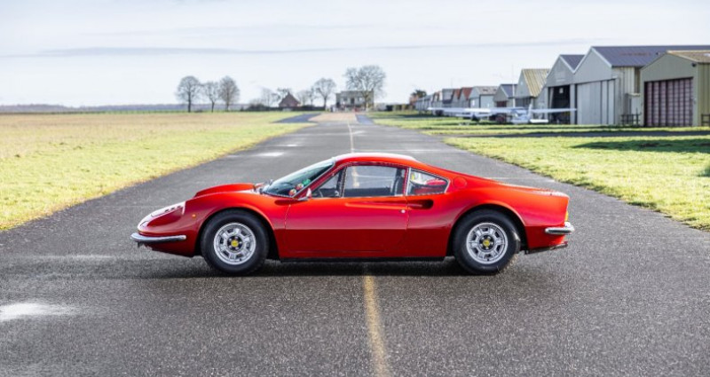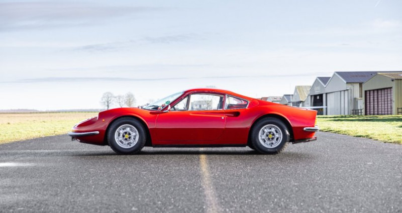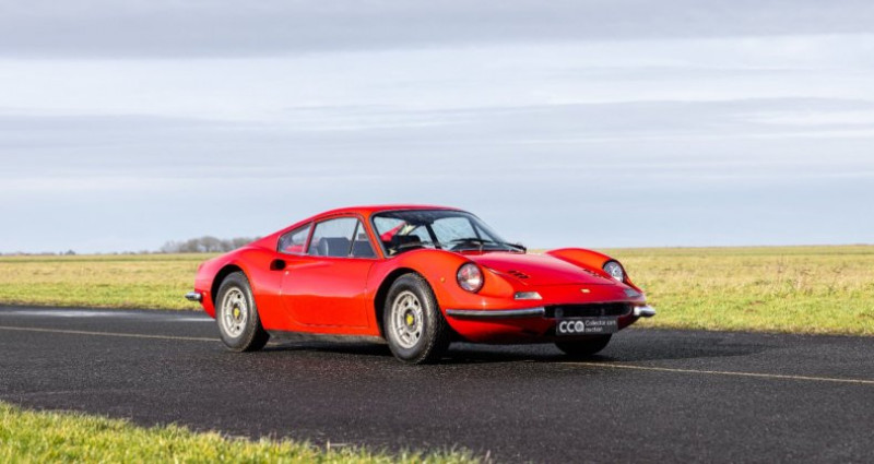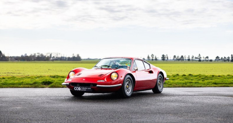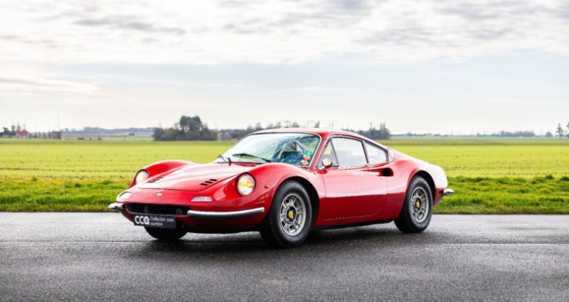 1971 - Ferrari Dino 246 GT Une icône de Ferrari, née au nom du fils et la dernière classique à moteur V6 Titre de circulation français Châssis n°01202 Un des seulement 506 exemplaires de Dino 246 GT Tipo M produits Livrée neuve au Brésil via le pilote Piero V. Gancia et importée en France en 1991 Soigneusement conservée par le même collectionneur averti depuis 35 ans ! Régulièrement entretenue par le concessionnaire Pozzi durant toutes ces années Superbe état, 6 500 kms au compteur avec réfection mécanique complète en 2008 Important dossier incluant le rapport de livraison du spécialiste Matthias Bartz Estimation : 320 000 / 350 000 € Retrouvez le catalogue complet de la vente aux enchères « online ONLY », dans lequel est inclus ce lot, sur le site internet de la maison de ventes Collector Cars Auction (CCA). Attention : clôture des enchères le 9 février à 20h La Dino que nous présentons est une magnifique 246 GT, de la seconde série du modèle, c’est-à-dire une des 506 voitures produites dites tipo M. C’est aussi l’une des très rares Dino 246 livrées neuves au Brésil, puisque seulement 29 exemplaires y ont été délivrés d’après le spécialiste du modèle Matthias Bartz. D’après ses informations notre Dino y a été délivrée par le pilote Piero Vallarino Gancia, qui était une figure importante du sport automobile brésilien, devenu importateur Ferrari avec son groupe Jolly Automóveis qui a également distribué Alfa Romeo et Lamborghini. Toujours selon les informations fournies par Matthias Bartz, originellement cette Dino était de teinte Rosso Bordeaux avec intérieur beige. Néanmoins elle fut rapidement repeinte dans son emblématique teinte Rosso Corsa et son habitacle refait en cuir noir, puisque lors de son importation en France en 1991 à environ 81 000 km, elle revêtait déjà sa configuration de couleurs actuelle. Acquise par son actuel propriétaire la même année dans une vente aux enchères, il l’a toujours utilisée et faite régulièrement entretenir, principalement par les Etablissements Pozzi. Parmi les nombreux travaux effectués on relève notamment la réfection des sièges en 1991, du moteur en 2008, la remise en état du circuit électrique en 2014 et des freins en 2016, entre autres interventions. Elle dispose enfin de 4 pneus Michelin XWX récents (20