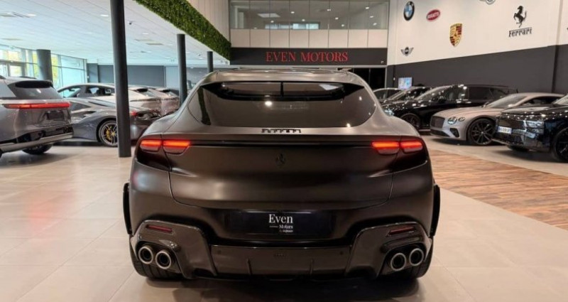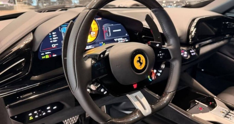 Intérieur - Ecran passage 10.2? Ecran 16? entièrement numérique Fermeture automatique portes AR 4 portes à fermeture souple 4 sièges entièrement électriques ISOFIX pour les sièges AR Housse de protection Système Infotelematic avec nouveau HMI, port USB dans le tunnel central, Bluetooth audio streaming Miroirs extérieurs chauffants et repliables électriquement Clé avec transpondeur, système antivol, télécommande pour portes et coffre, système de démarrage Système air conditionné 4 zones Détection des angles morts Direction assistée électrique dynamique Empattement virtuel (PCV 3.0) avec roues AR directionnelles Extérieur et Châssis - Jantes en alliage 22?/23? Kit de réparation pneumatiques Système suspensions actives Ferrari Transmission Dual Clutch 8 vitesses Différentiel à contrôle électronique avec intégration SSC 4RM - S Evo Sécurité - Caméra de parking AR Capteurs de parking AV et AR Capteurs de luminosité et de pluie Système de contrôle de pression et température des pneumatiques Airbags AV et latéraux à double enclenchèment Phares entièrement LED Aide au maintien de la voie Avertissement de sortie de voie Frein d’urgence automatique Régulateur de vitesses adaptatif ABS EVO Système de freinage carbo-céramique (CCM4) Contrôles dynamiques véhicule (Manettino avec 5 réglages : Glace, Mouillé, Confort, Sport, ESC OFF) Contrôle de traction F1 avec intégration SSC Autres - Kit maintien de charge Pack Personnalisation PTU Système Side Slip Control (SSC) 8.0